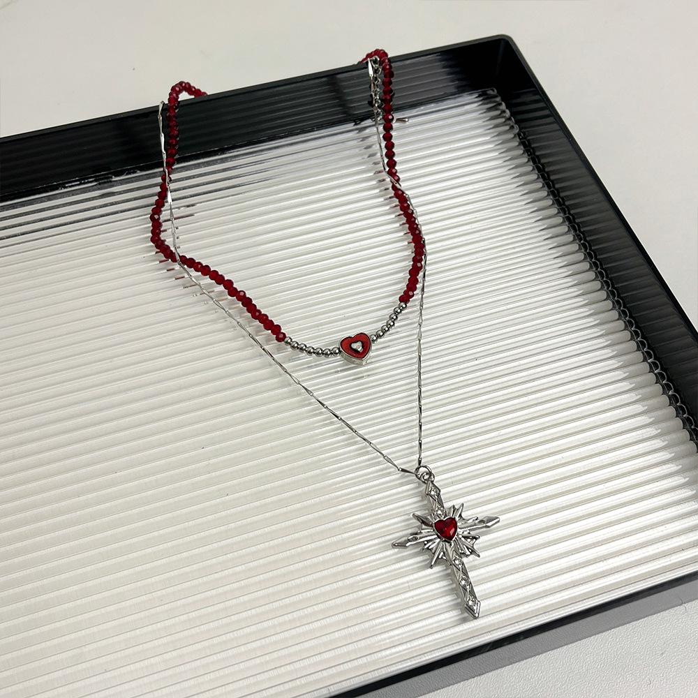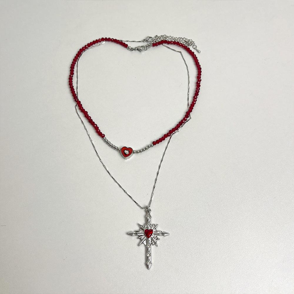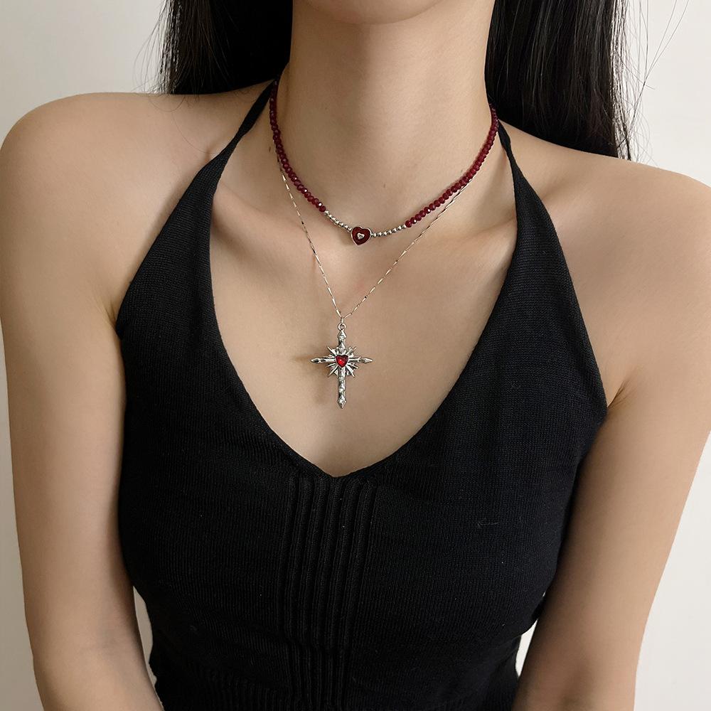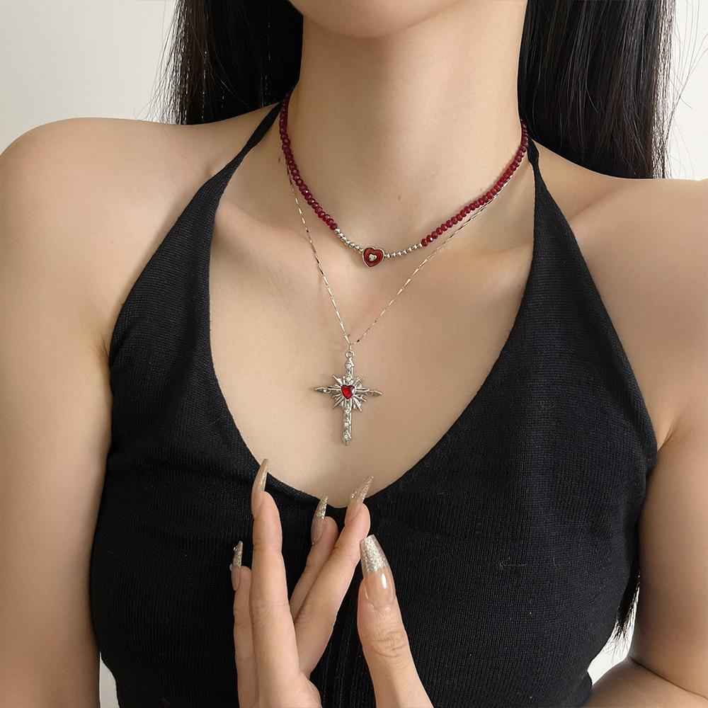 Collar de cuentas cruzadas con dos capas de amor, estilo Spice Girl, estilo retro, de alta calidad.