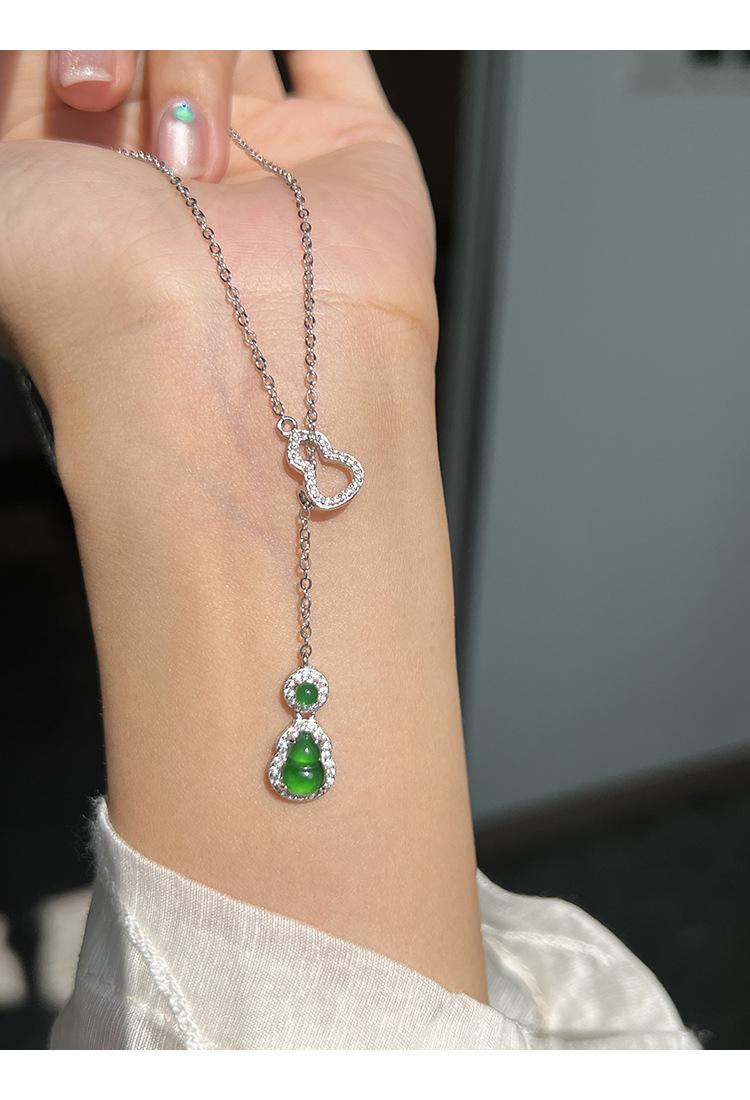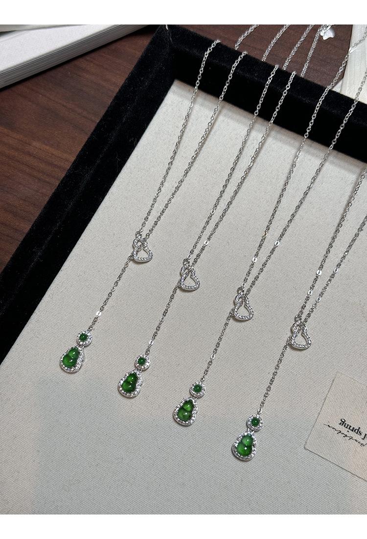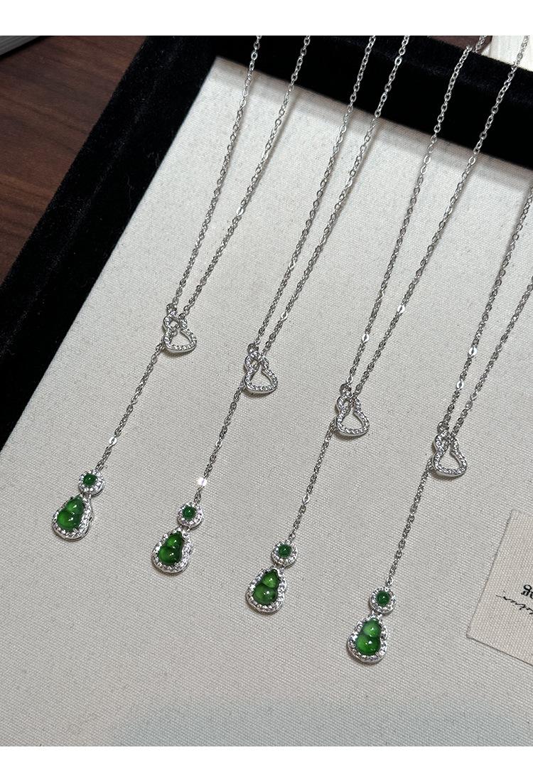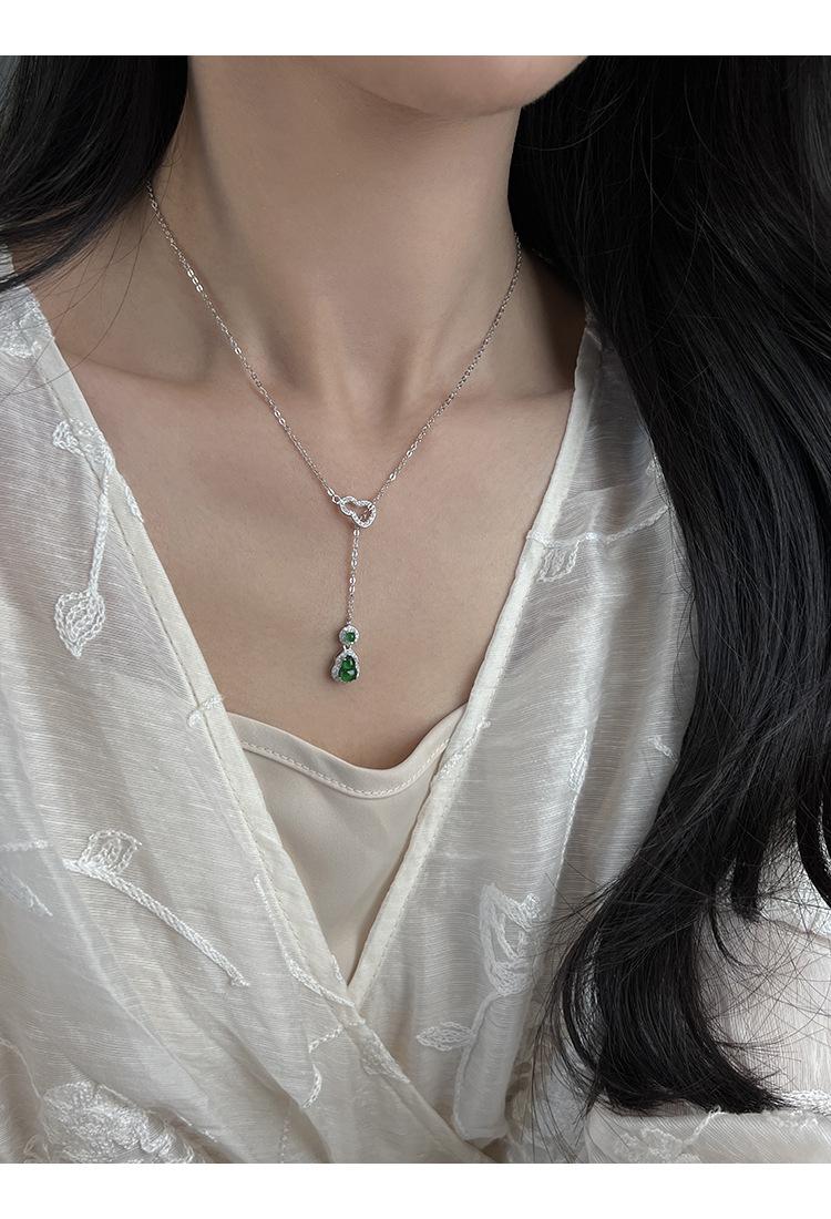 Collar Fangtangjia de estilo chino con forma de calabaza de jade, de plata esterlina, con un material natural peligroso, ligero y lujoso, con temperamento de nicho, estilo nacional, cadena de clavícula.