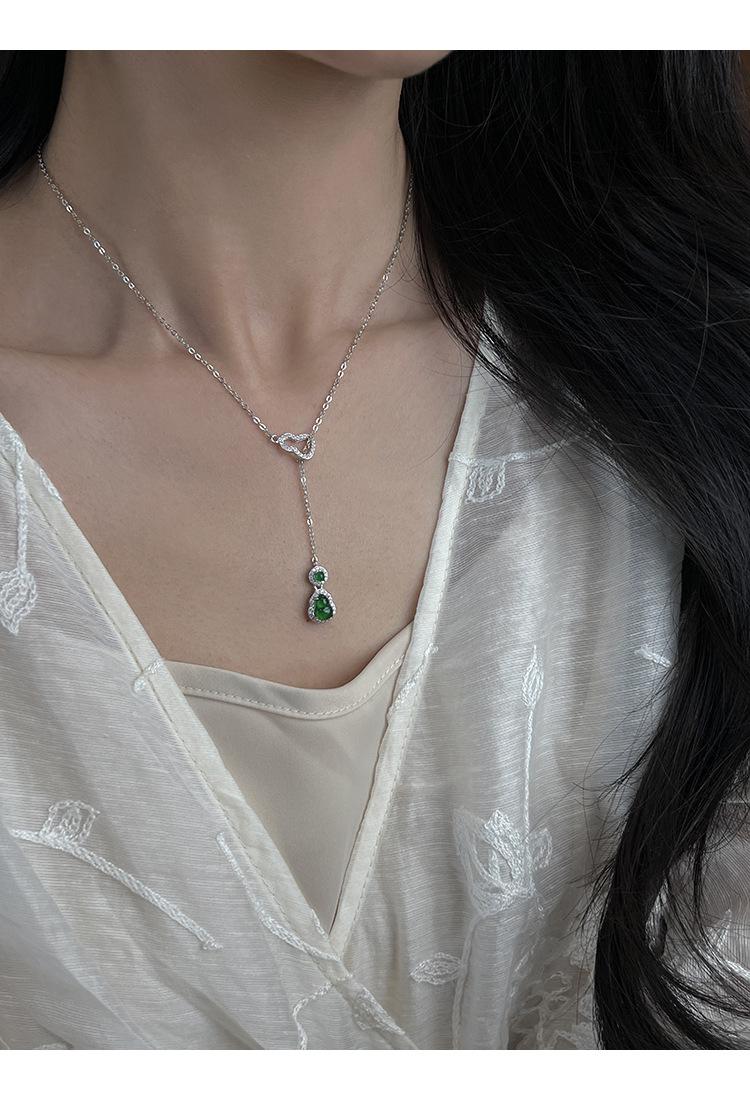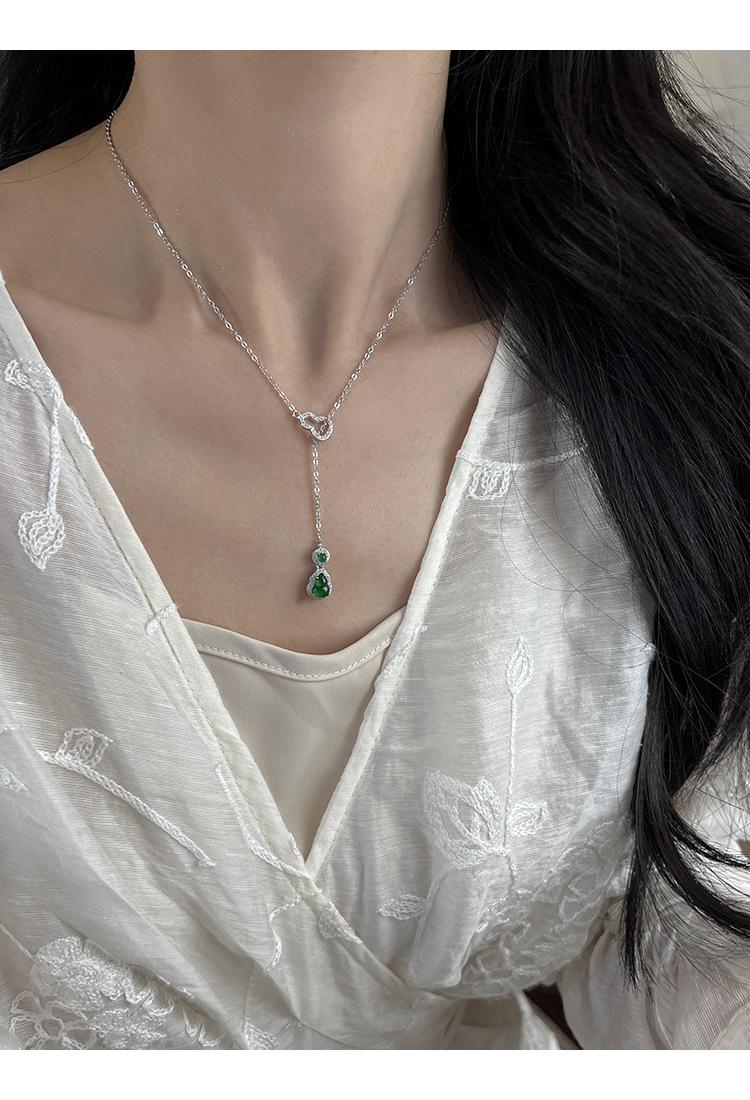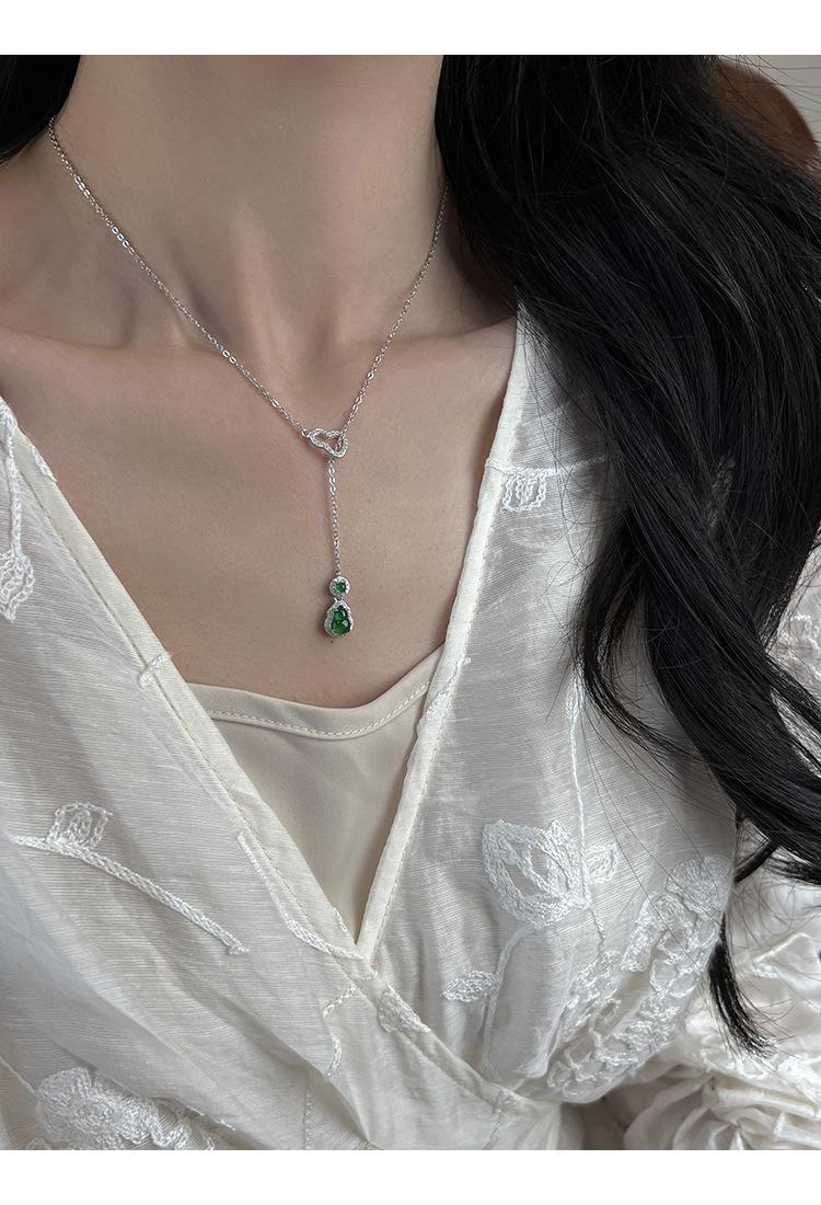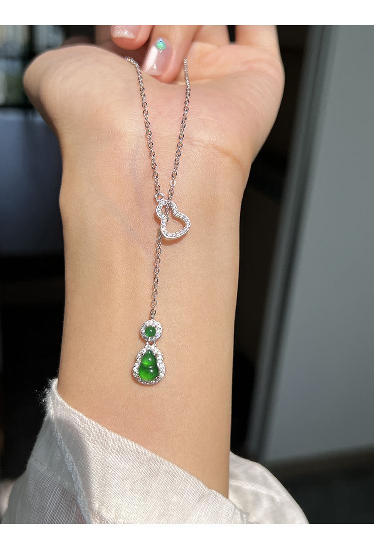 Collar Fangtangjia de estilo chino con forma de calabaza de jade, de plata esterlina, con un material natural peligroso, ligero y lujoso, con temperamento de nicho, estilo nacional, cadena de clavícula.
