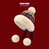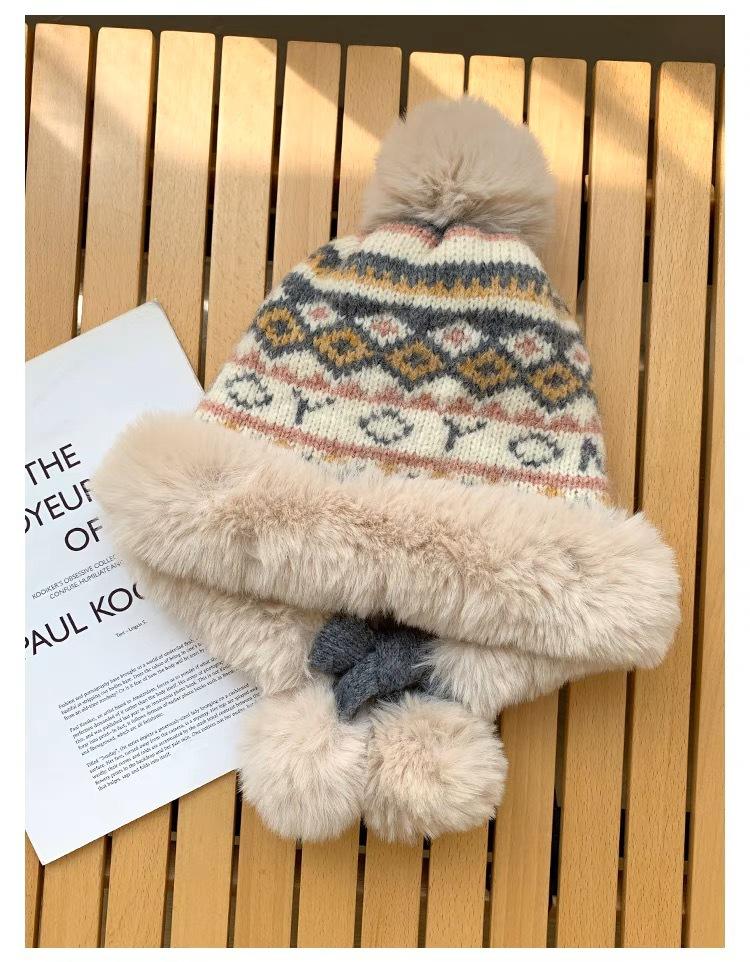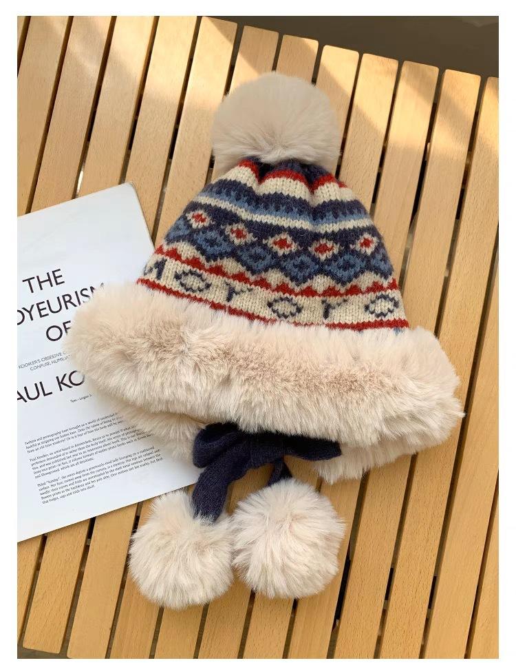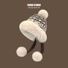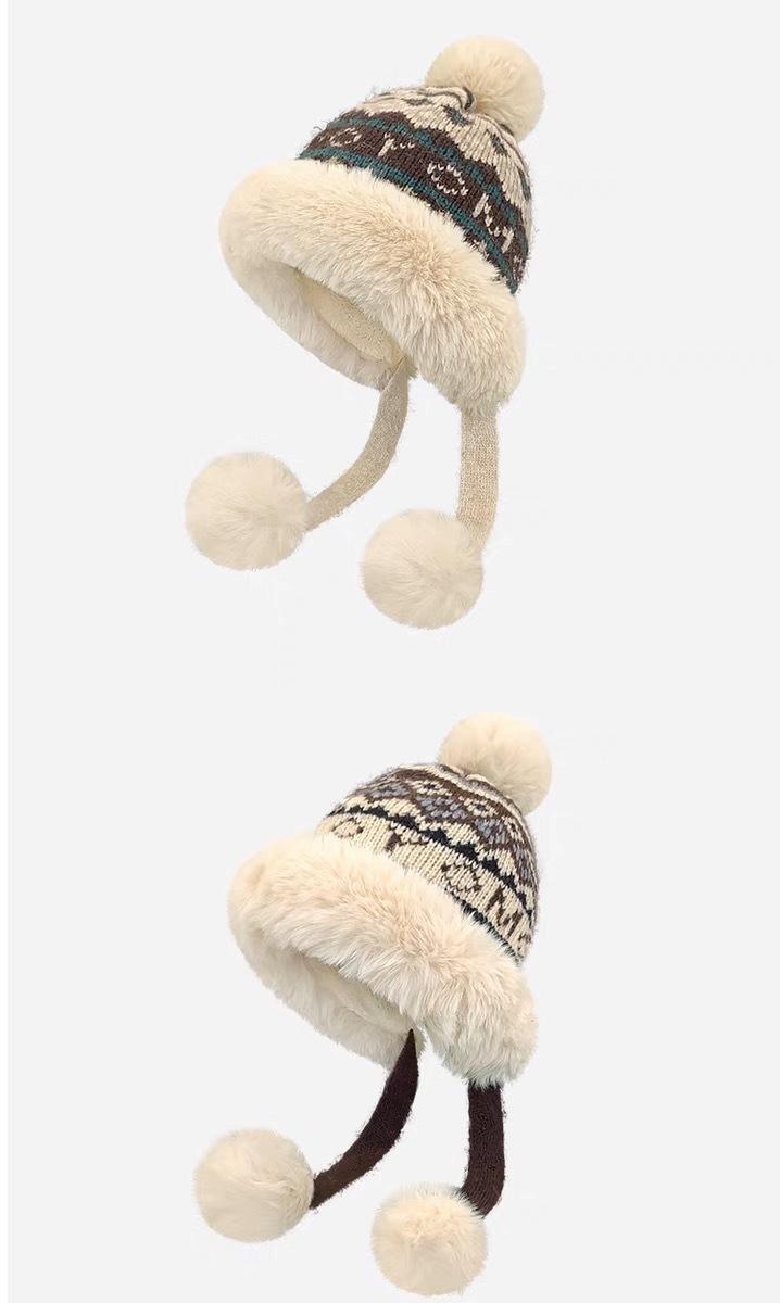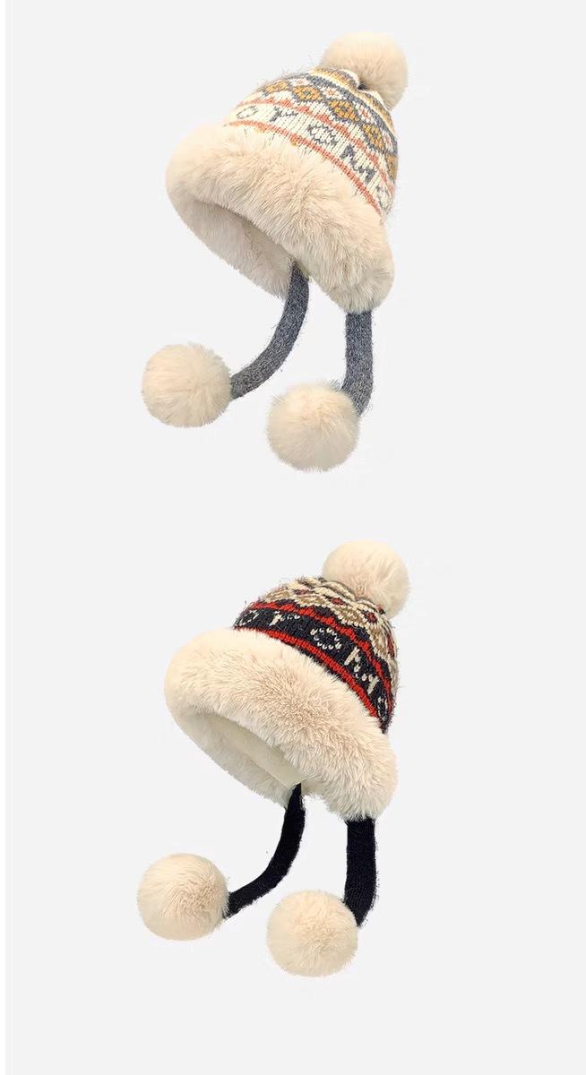 Xg jacquard double ball ear protection hat-black, Xg jacquard double ball ear protection hat-beige gray, Xg ja...