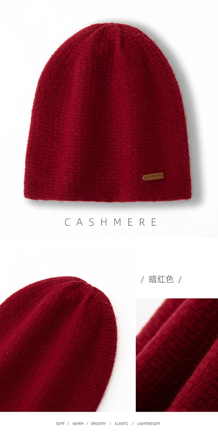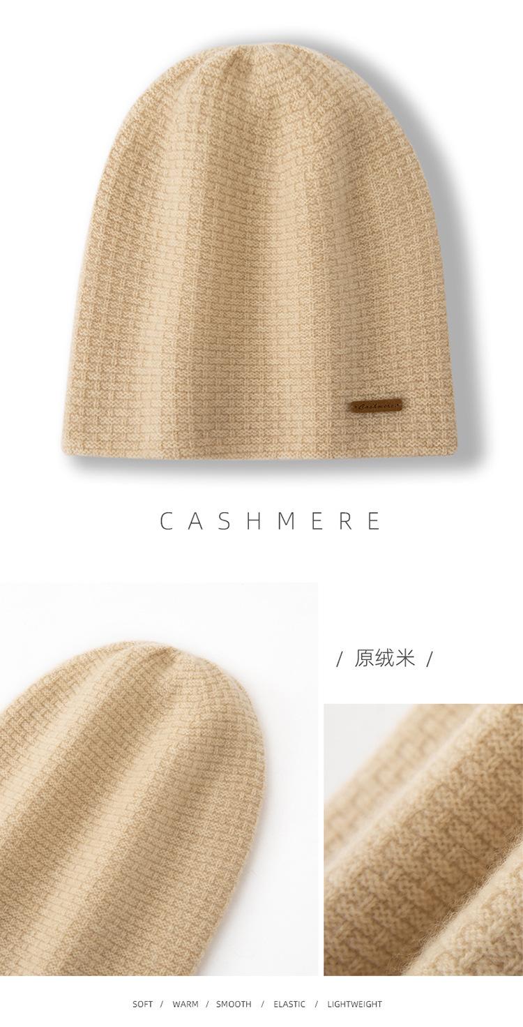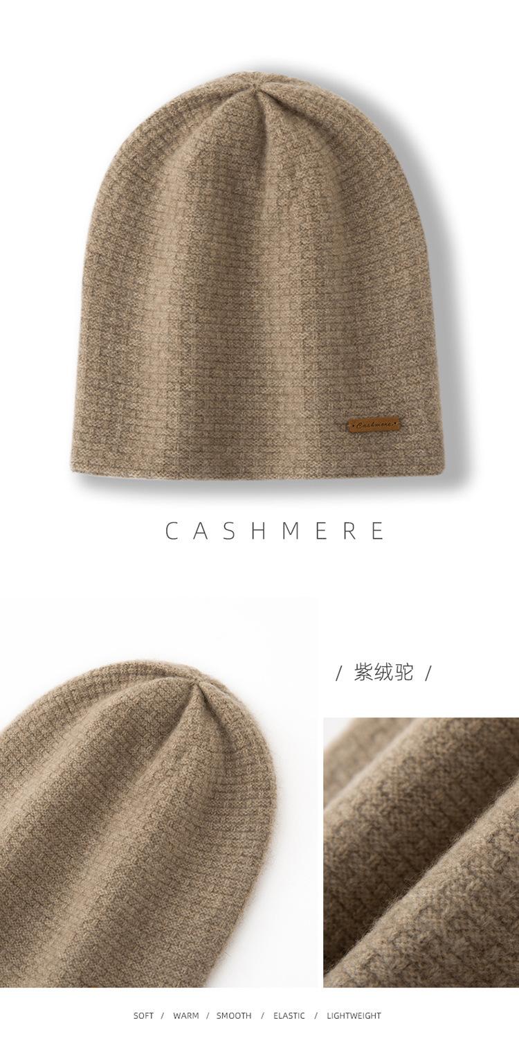 Cachemira 2025 Otoño e Invierno Nuevo Sombrero Casual Pesado de Punto para Mujer con Clase de Color Puro, Jacquard para Exterior, Cálido y a la Moda