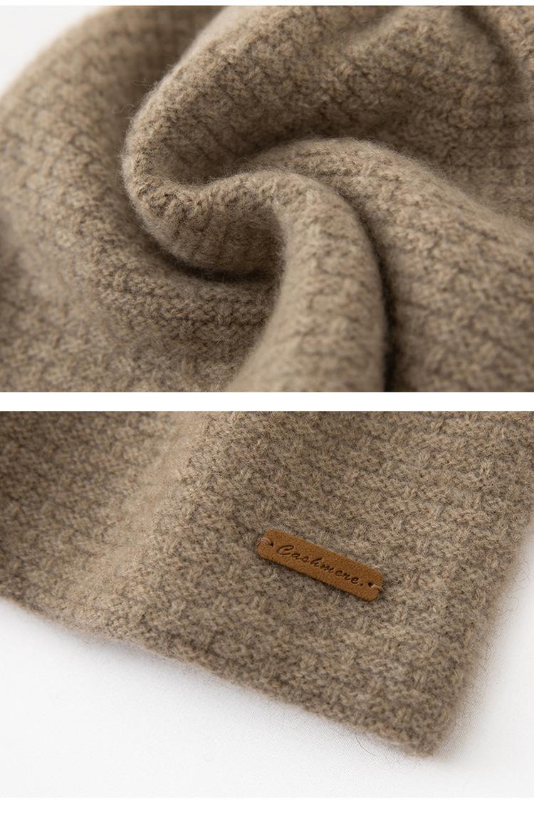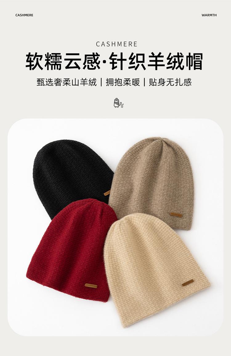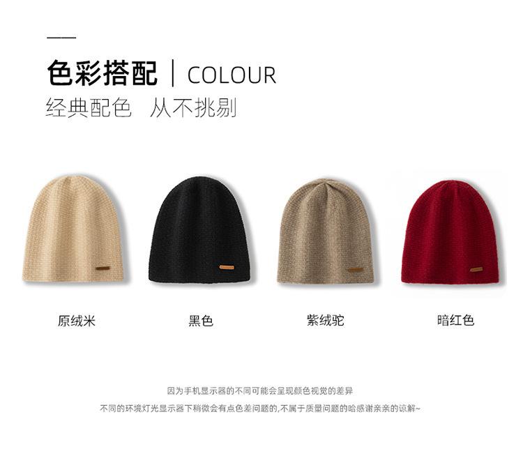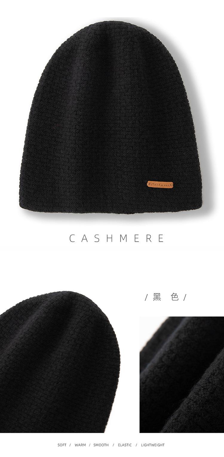 Cachemira 2025 Otoño e Invierno Nuevo Sombrero Casual Pesado de Punto para Mujer con Clase de Color Puro, Jacquard para Exterior, Cálido y a la Moda