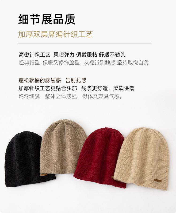 Cachemira 2024 otoño e invierno nuevo para mujer de alta gama color sólido tejido para exteriores jacquard cálido moda pesado casual gorro