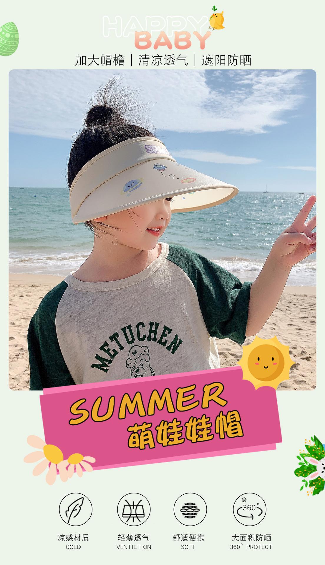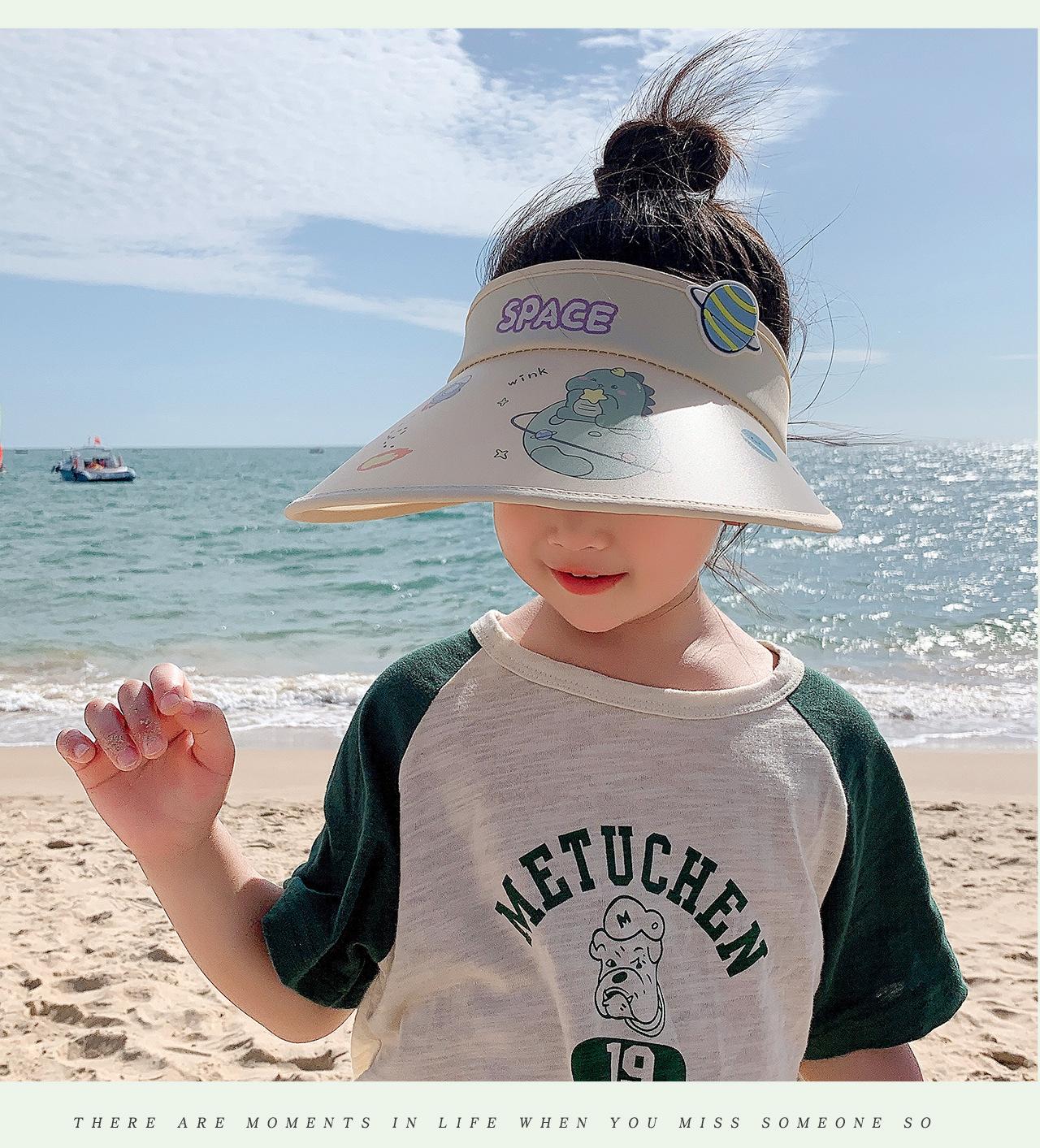 2023 verano nuevo sombrero de copa vacía para niños y niñas, sombrero de sol de dibujos animados, sombrero para el sol para viajes al aire libre