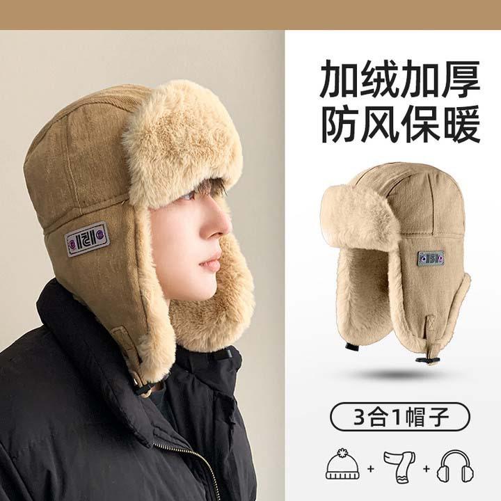 Sombrero para Hombre Invierno Cortavientos y Cálido Artefacto Protección para las Orejas Gorro de Algodón Pulóver Ciclismo Vehículo Eléctrico Forrado de Lana Engrosado A Prueba de Frío Sombrero Lei Feng