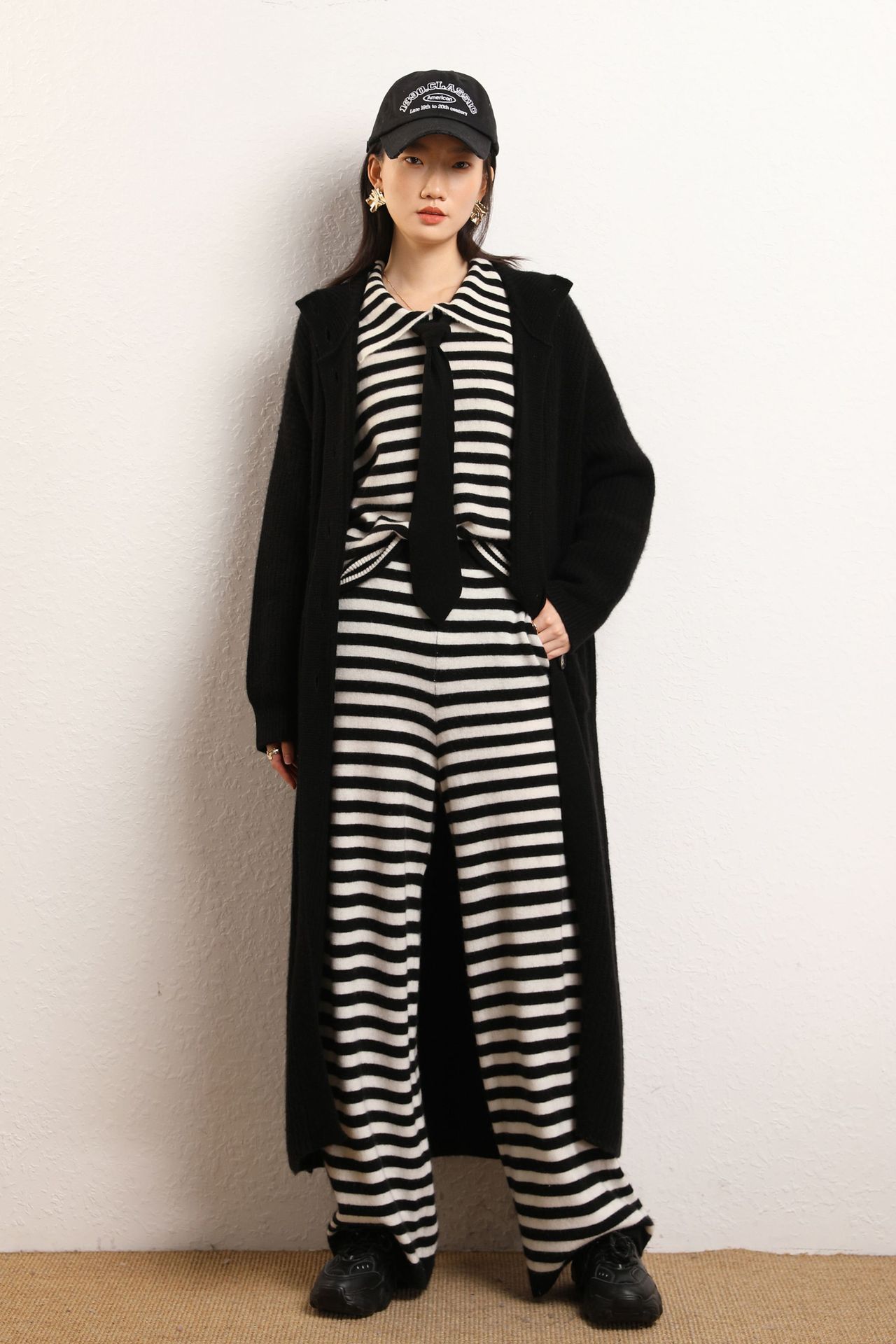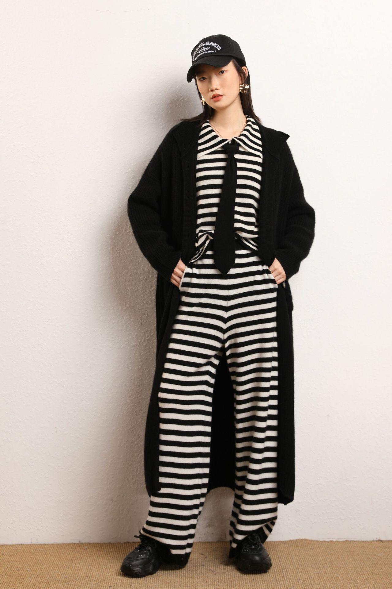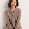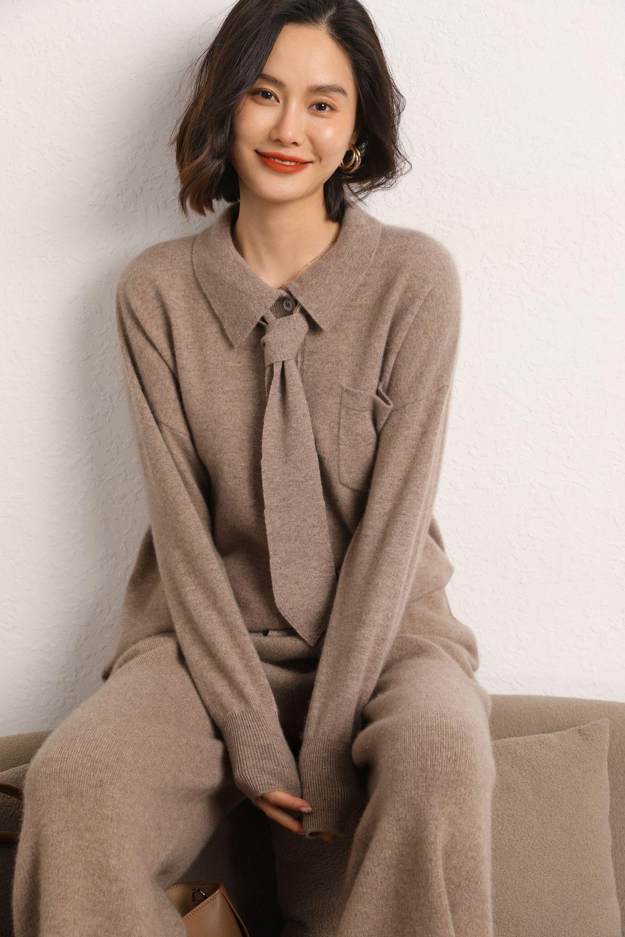 Cachemira 2025 Otoño e Invierno Nuevo Tejido de Mujer con Cuello Polo Color Puro Versátil Lazo Decorativo
