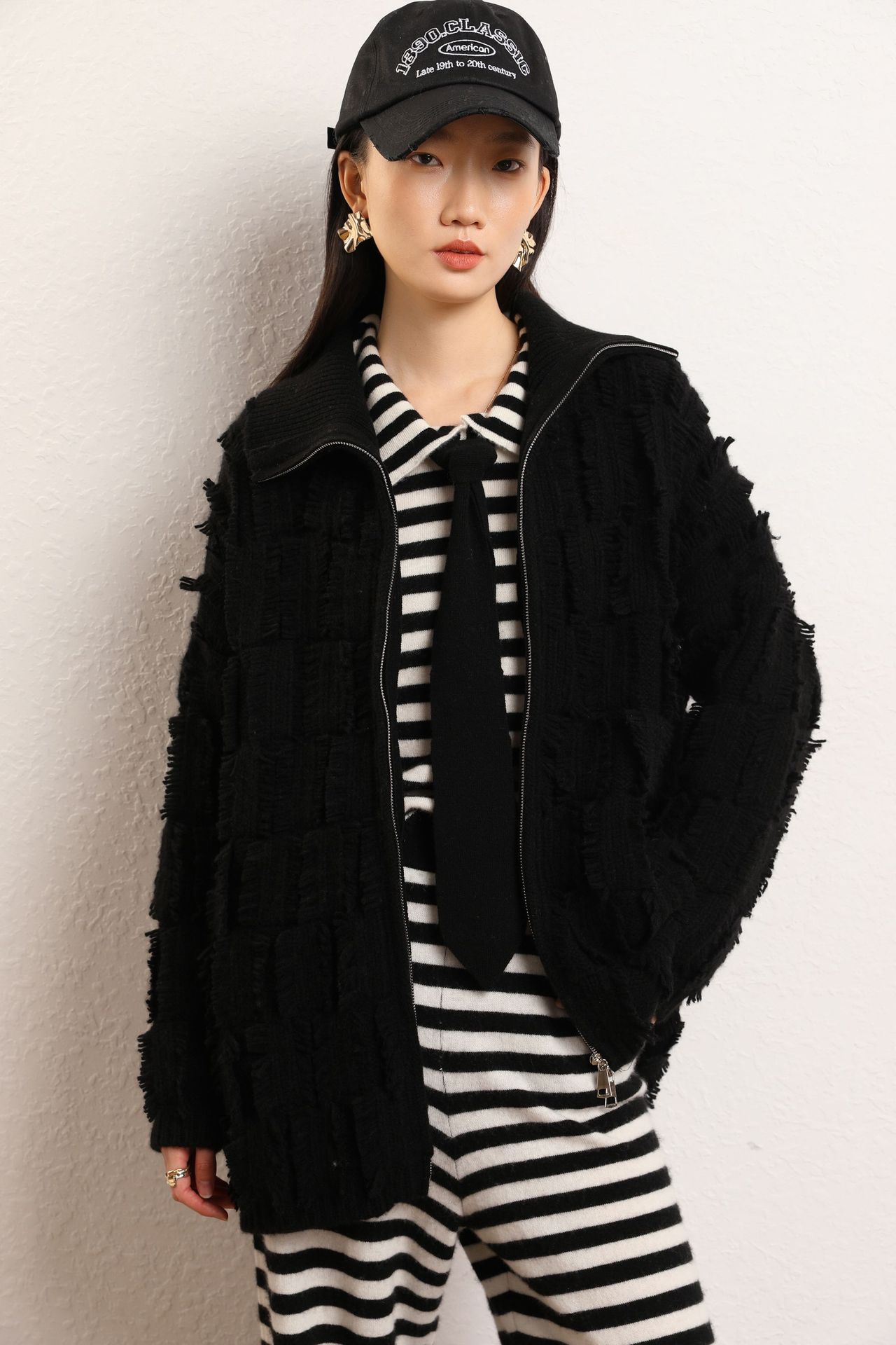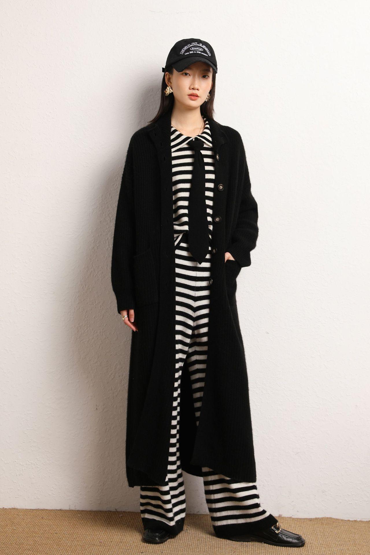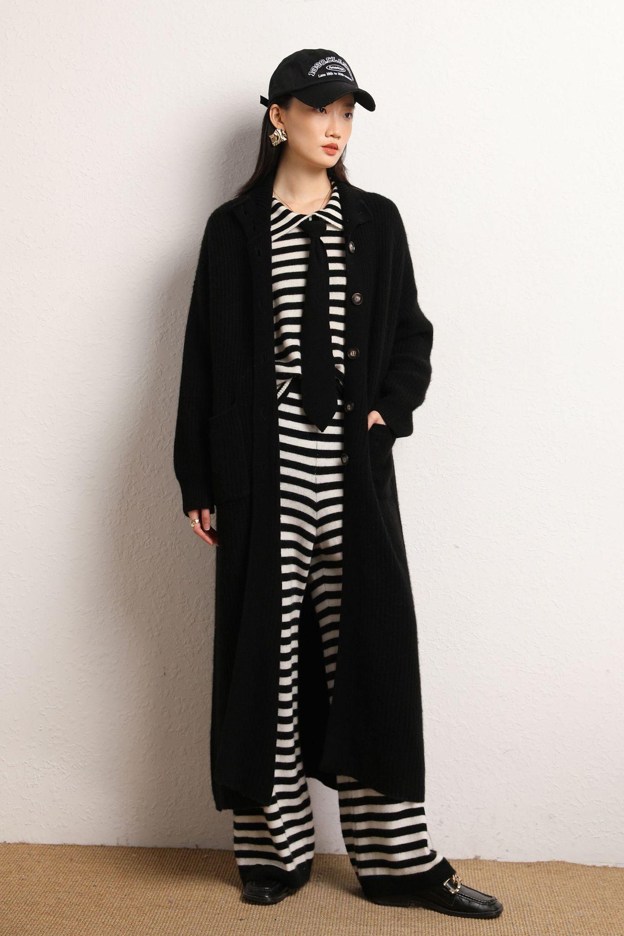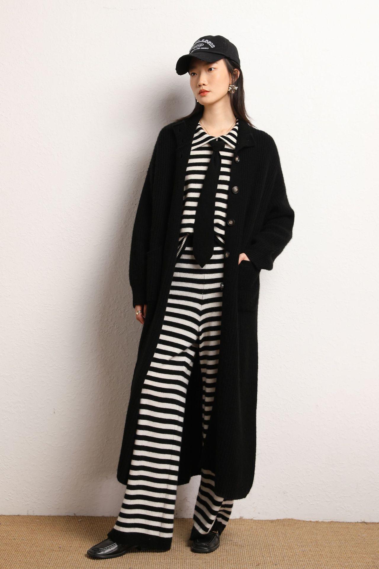 Cachemira 2025 Otoño e Invierno Nuevo Tejido de Mujer con Cuello Polo Color Puro Versátil Lazo Decorativo