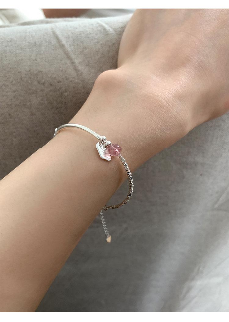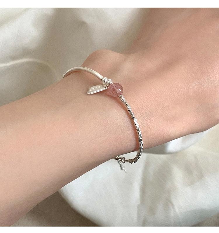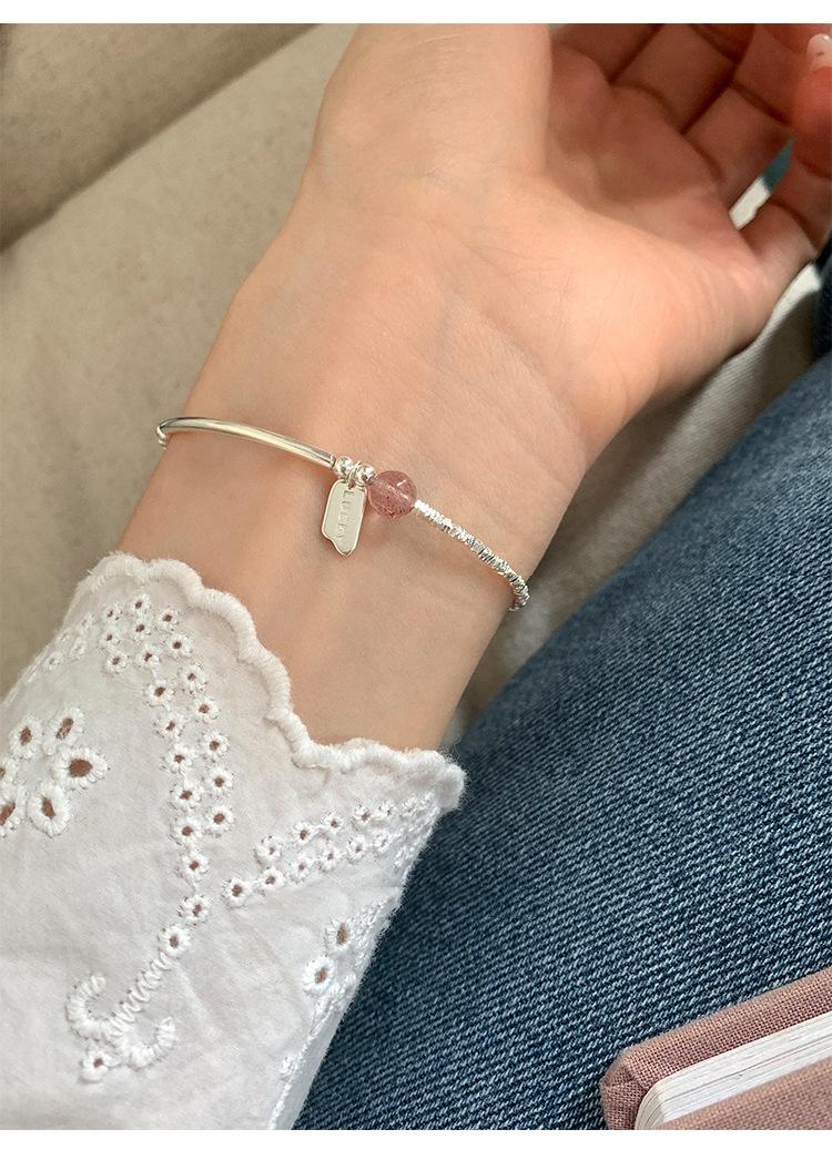 Nueva Pulsera de Cristal de Fresa Plata Rota Marca Inglesa Diseño Nicho de Lujo Ligero Pulsera Combinable para Regalo de Novias