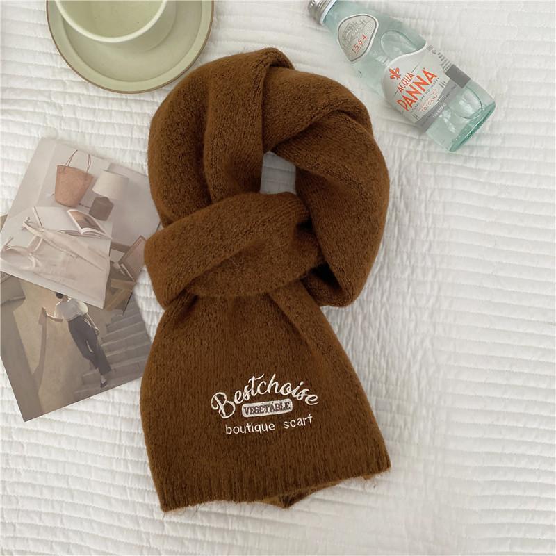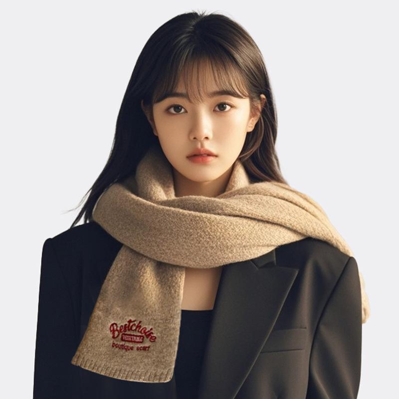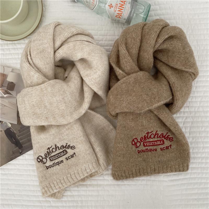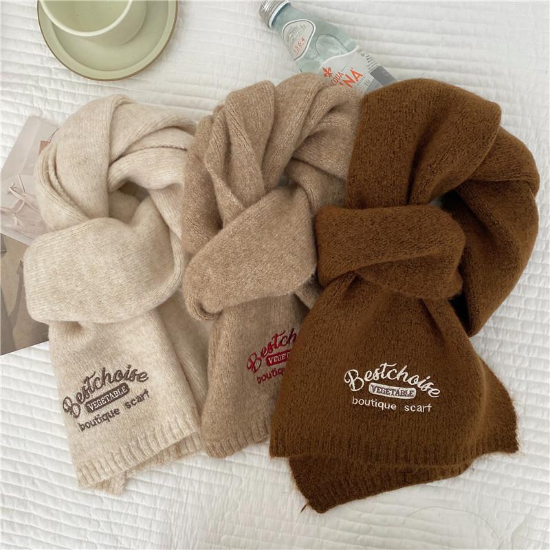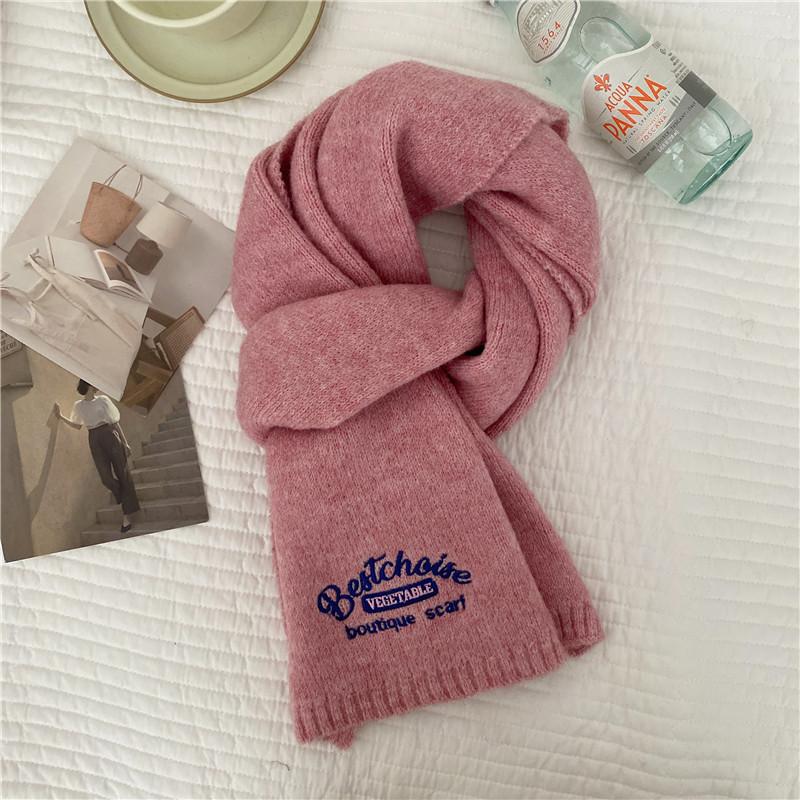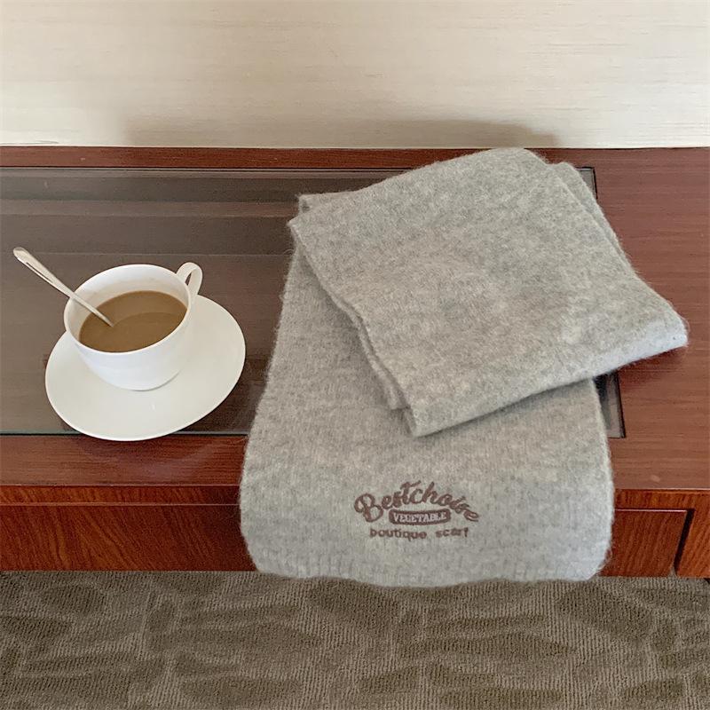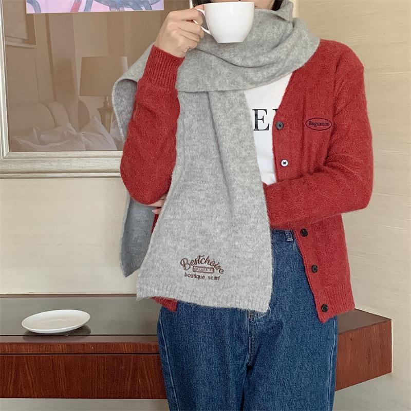Bufanda Estilo Universitario Imitación Cachemira para Mujer Invierno Año Nuevo Reunión Anual Nuevo Color Coreano Color Sólido Moda Letra Bordada Pareja