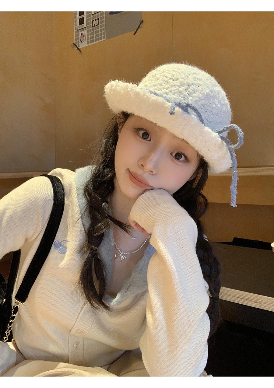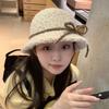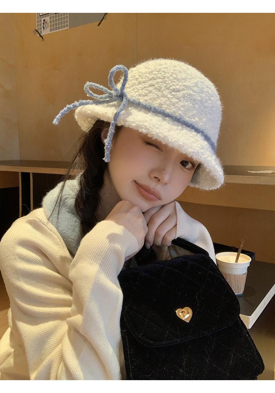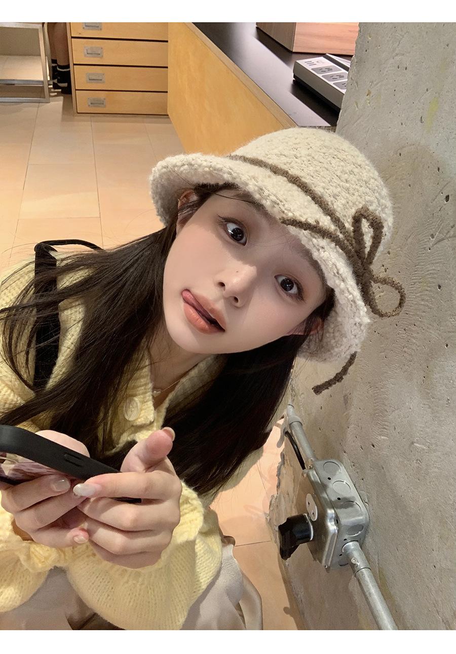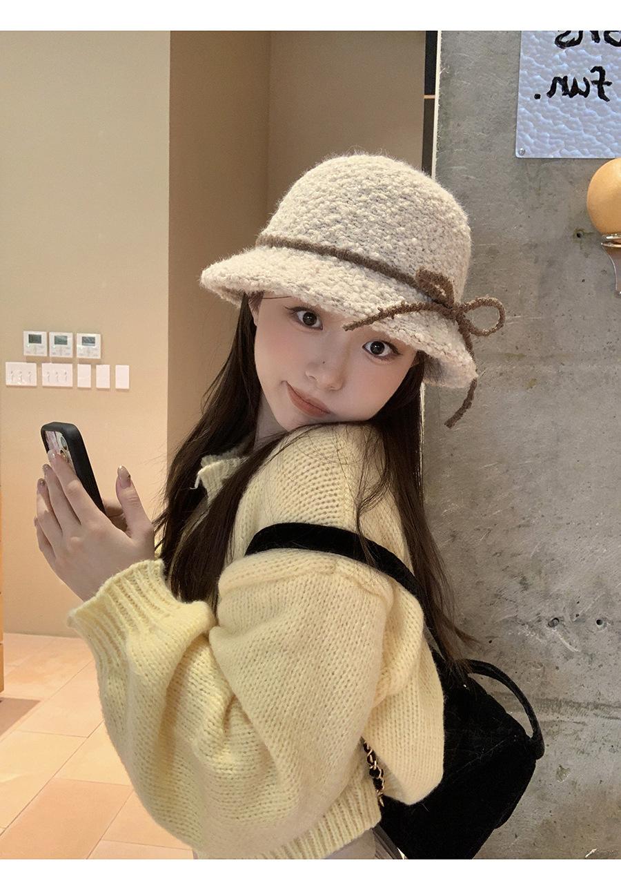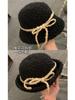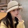 Nueva colección 2024: sombrero de copa de terciopelo de cordero para mujer, otoño e invierno, cálido, pequeño, de pescador, con lazo, para lavabo