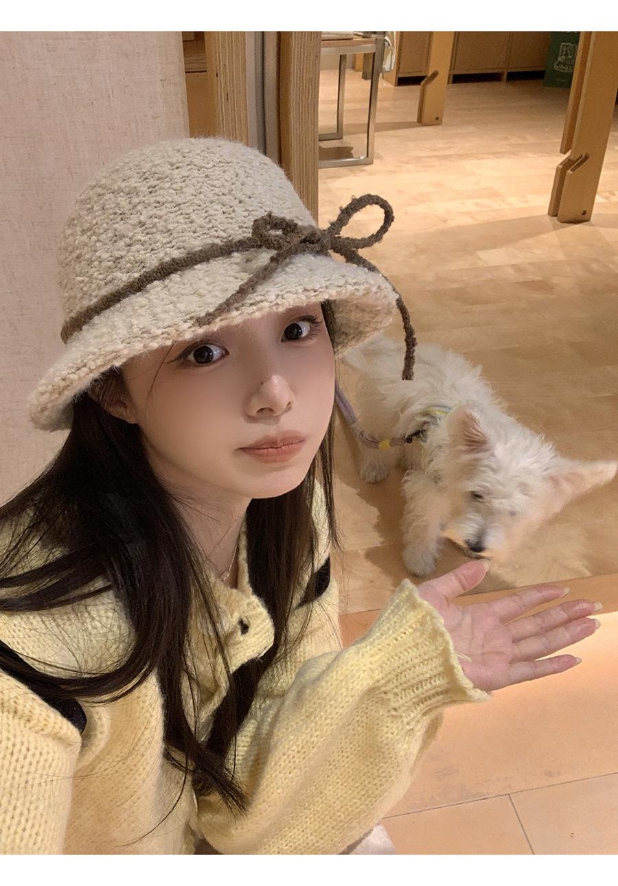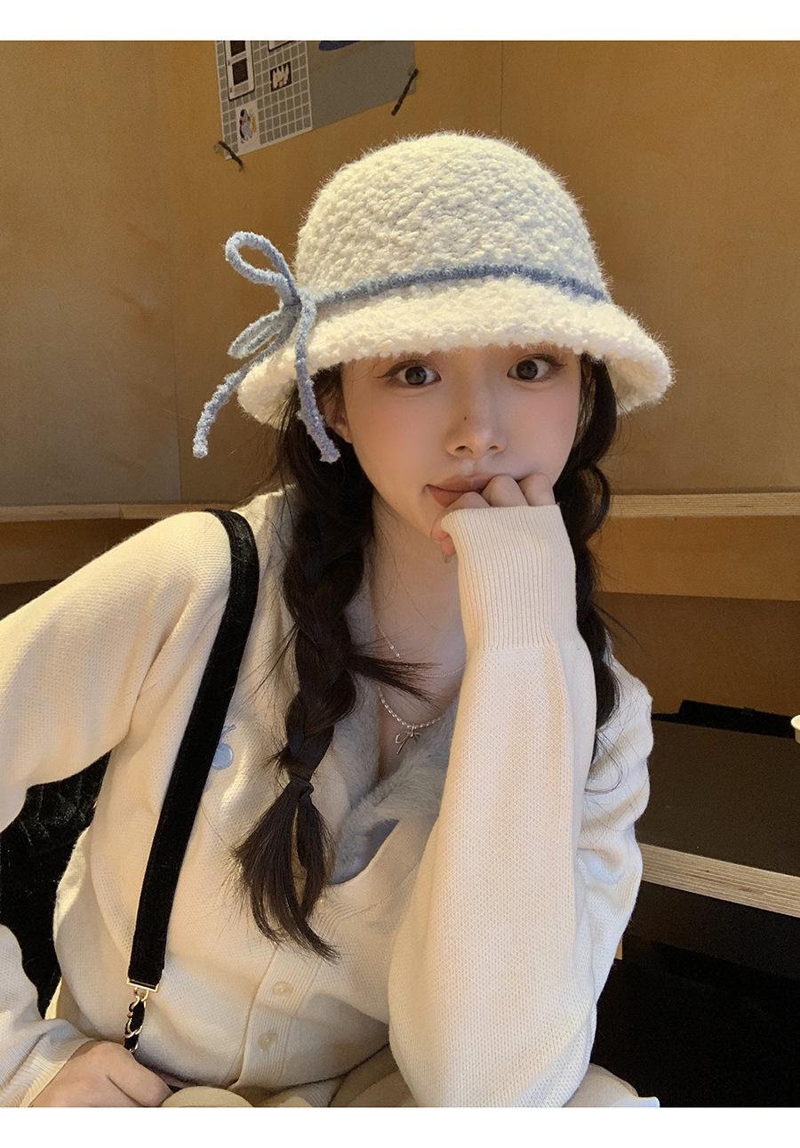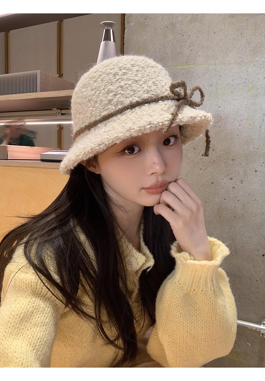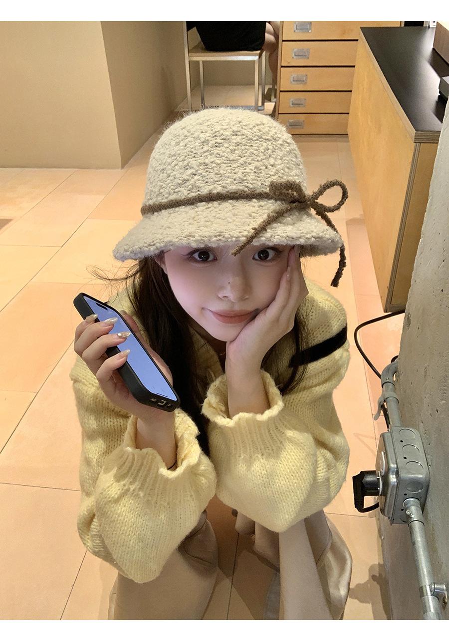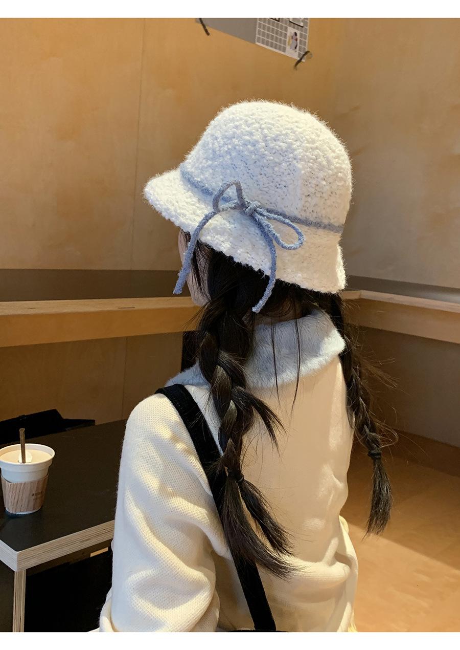 Nueva colección 2024: sombrero de copa de terciopelo de cordero para mujer, otoño e invierno, cálido, pequeño, de pescador, con lazo, para lavabo