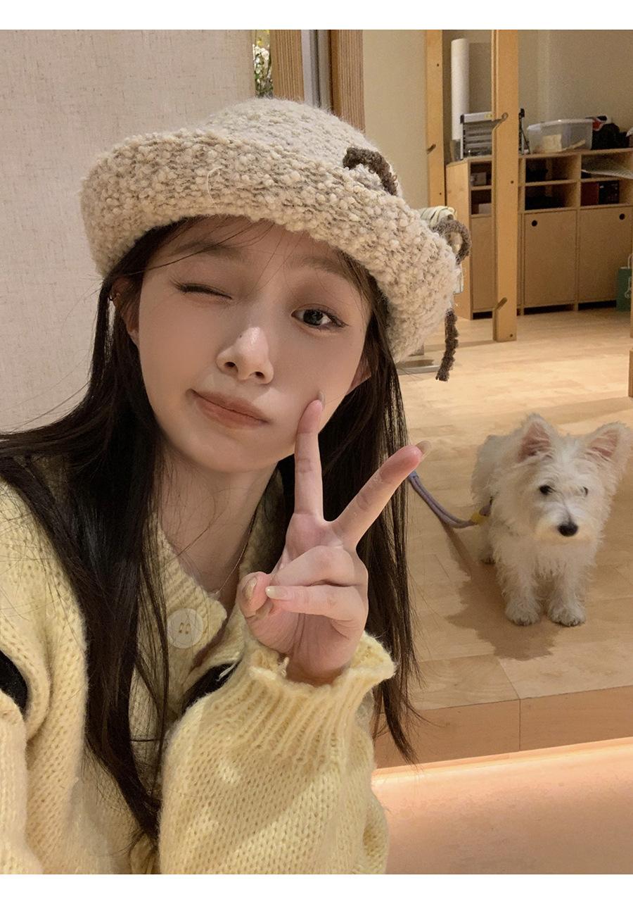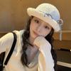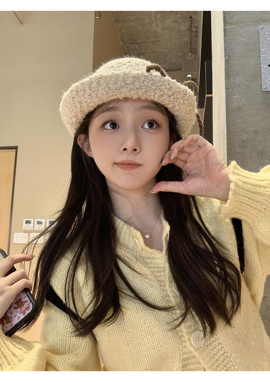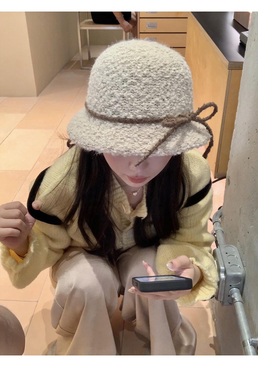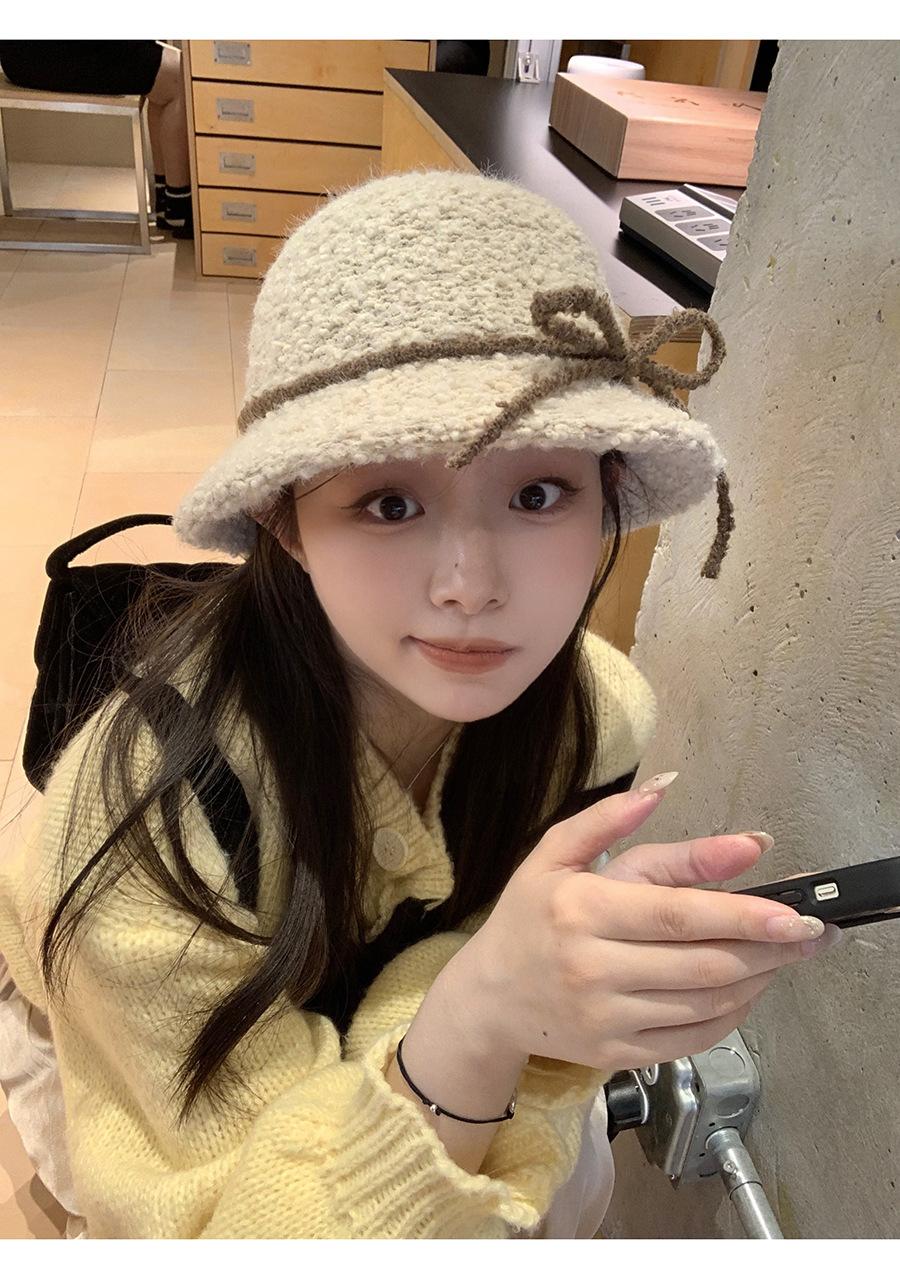 Nueva colección 2024: sombrero de copa de terciopelo de cordero para mujer, otoño e invierno, cálido, pequeño, de pescador, con lazo, para lavabo