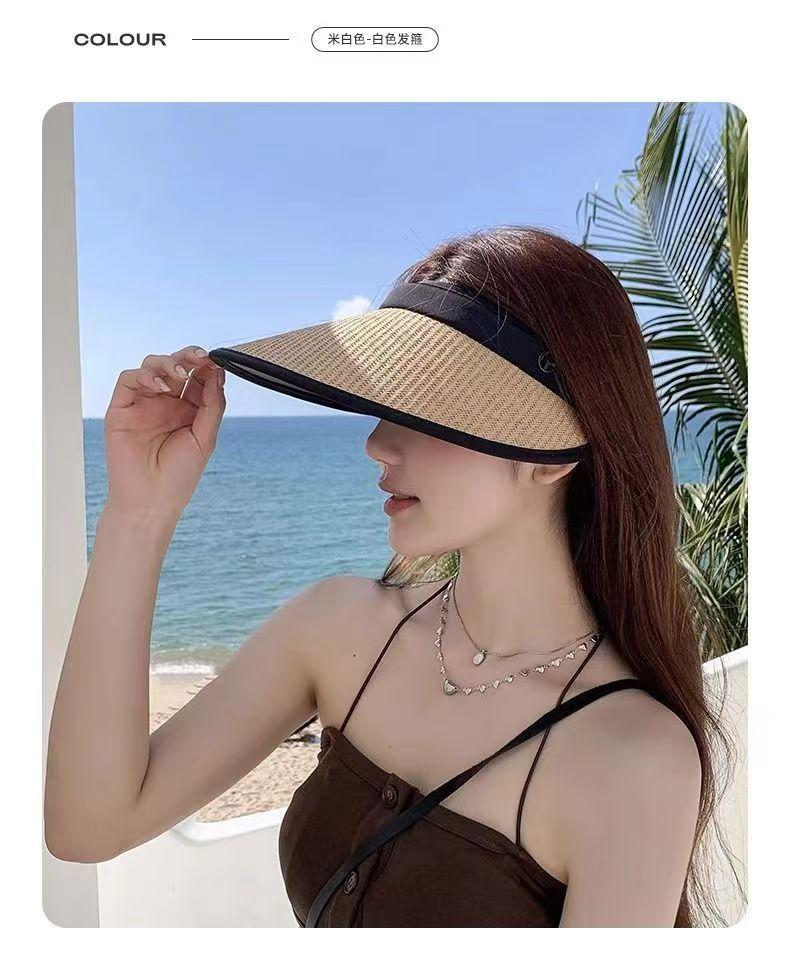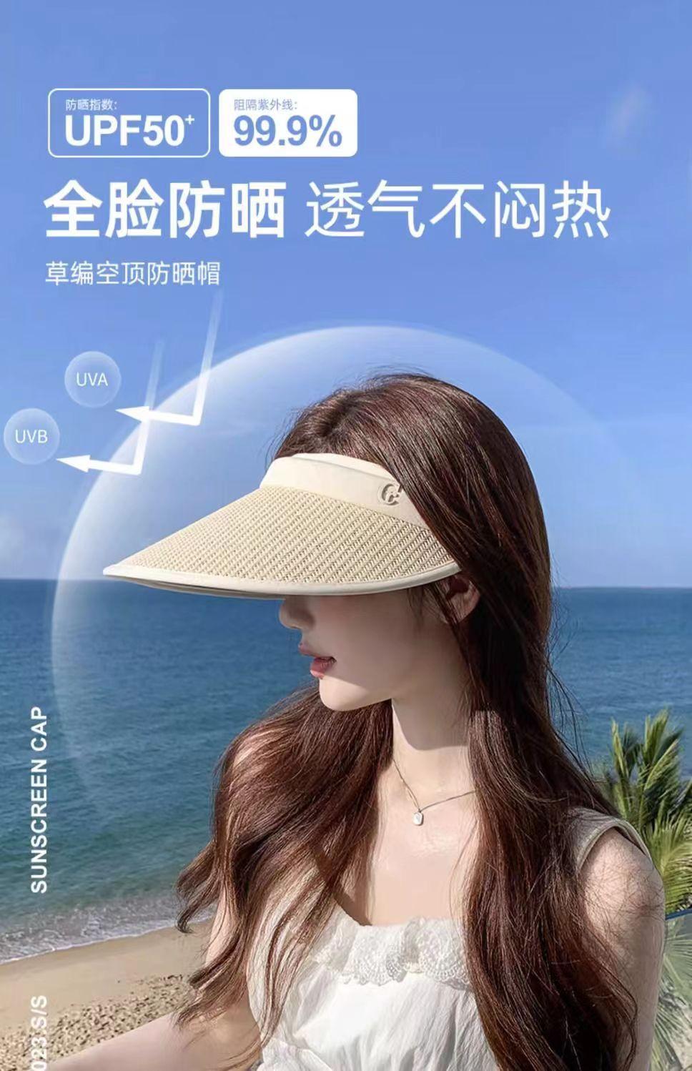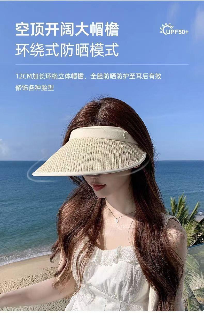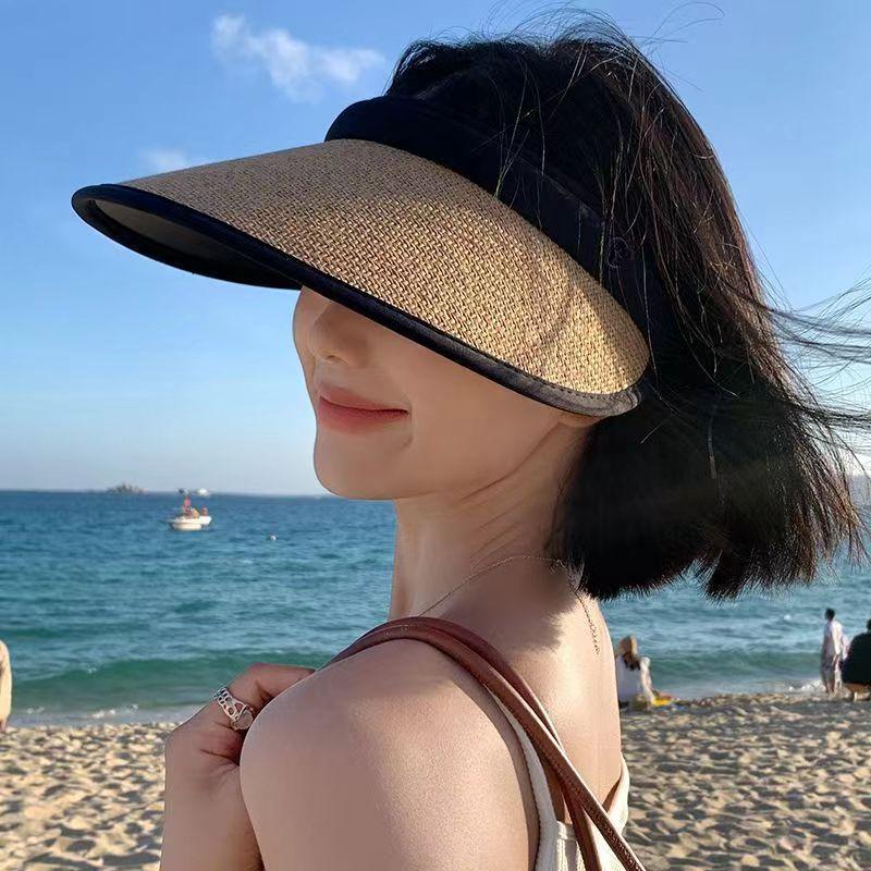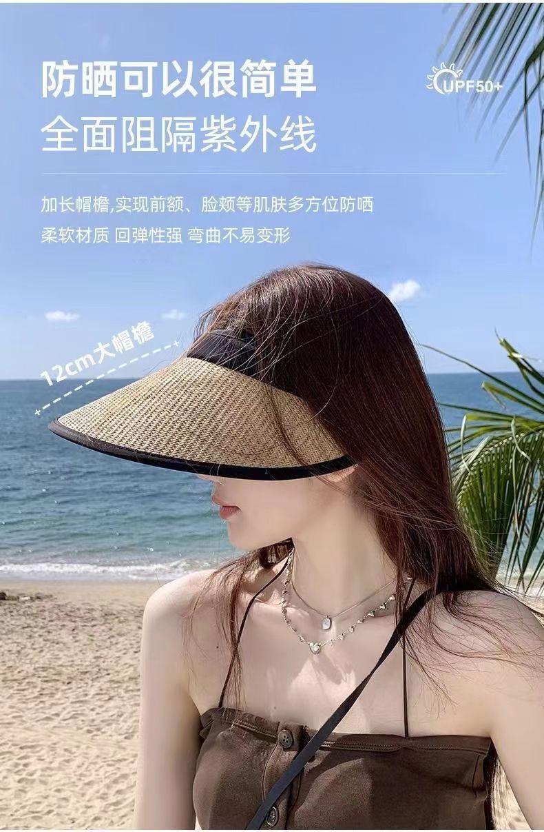 Sombrero de paja de verano UPF50, de vinilo, con protección UV, sombrero de copa vacío, ala grande, sombrero para el sol al aire libre, moda femenina