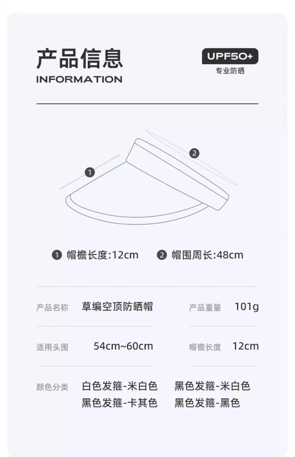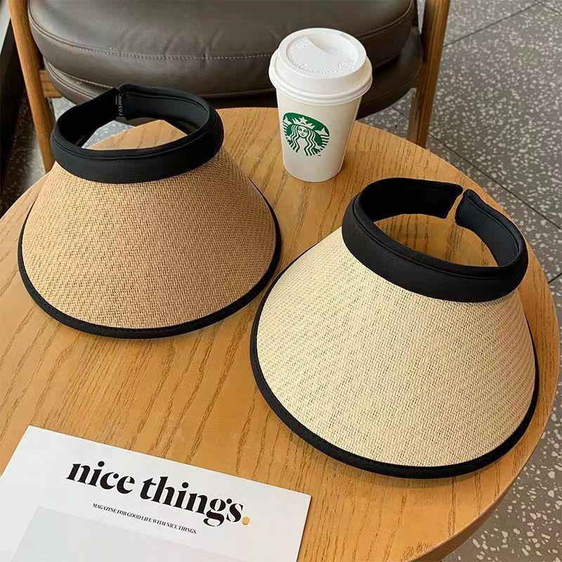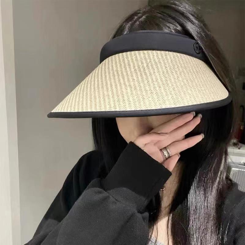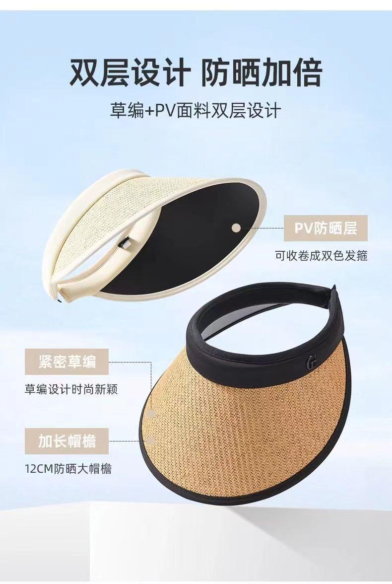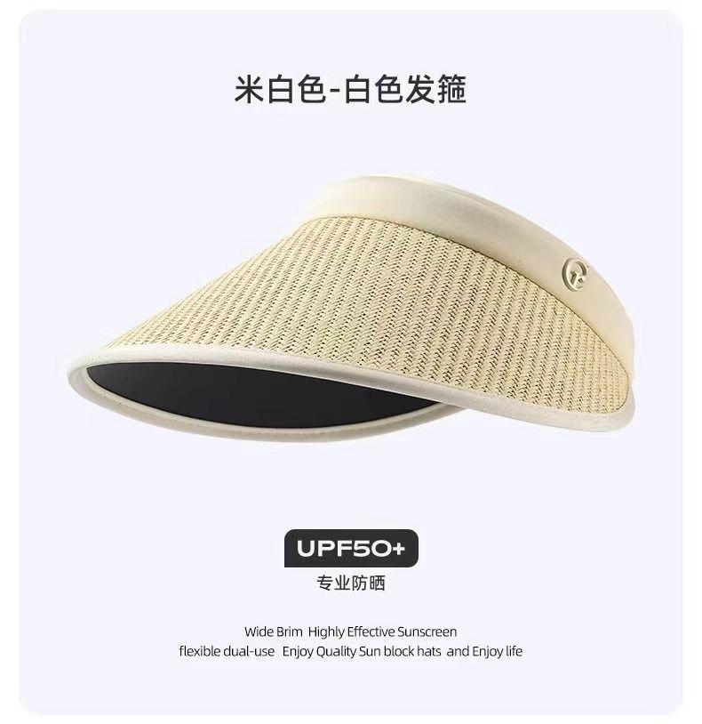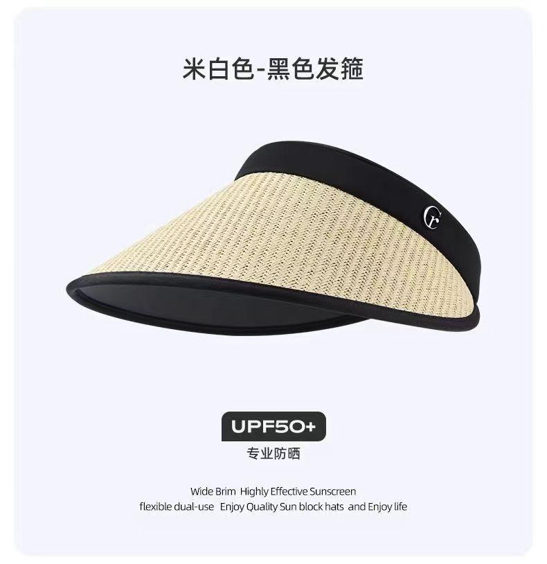 Sombrero de paja de verano UPF50, de vinilo, con protección UV, sombrero de copa vacío, ala grande, sombrero para el sol al aire libre, moda femenina