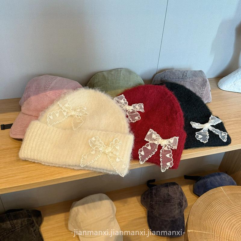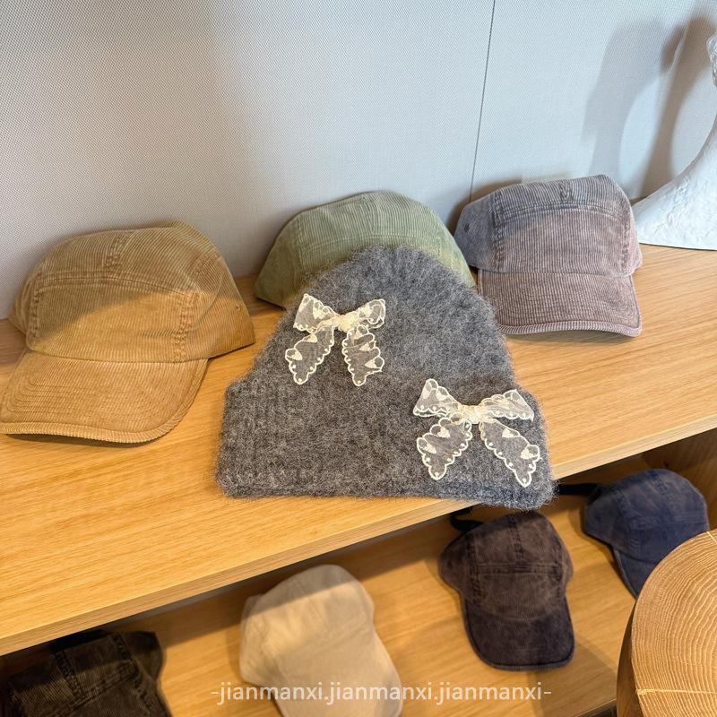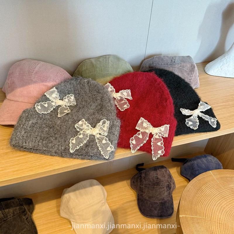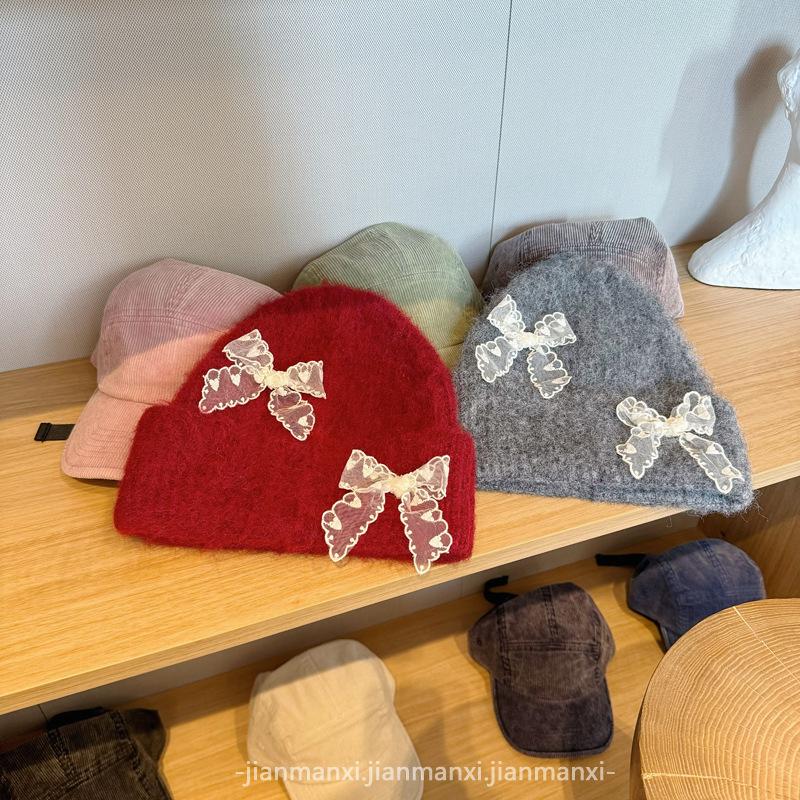 Otoño e invierno 2024, nuevo gorro de lana de punto con lazo dulce, cálido, combina con todo, con gran circunferencia de cabeza y cara, gorro de pintor pequeño