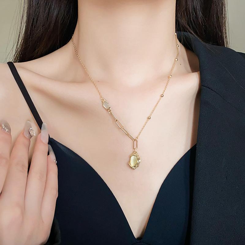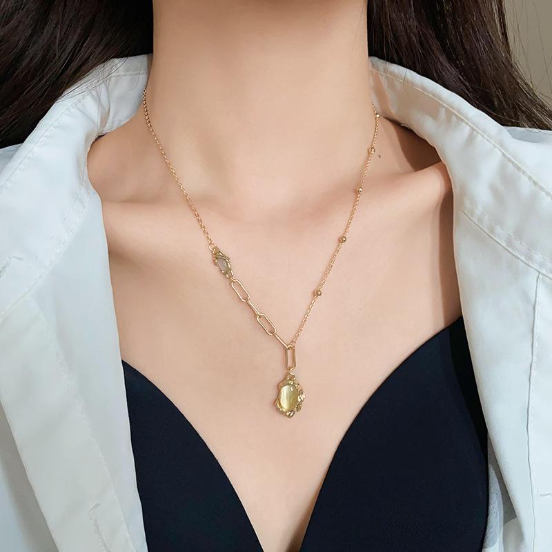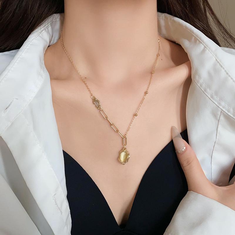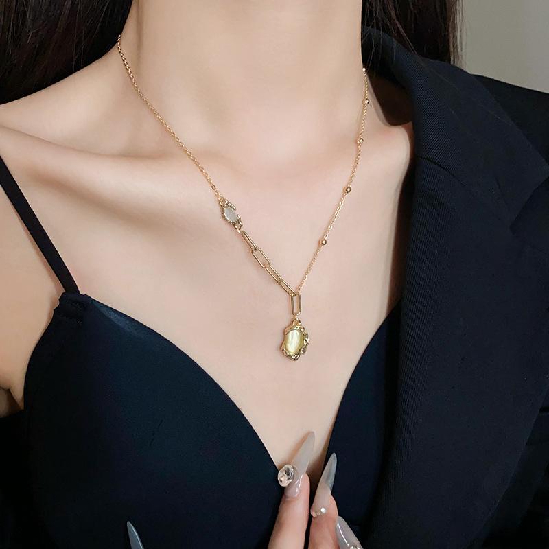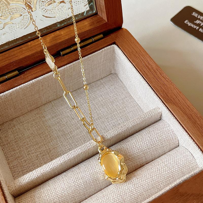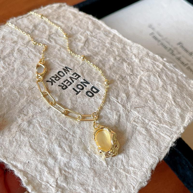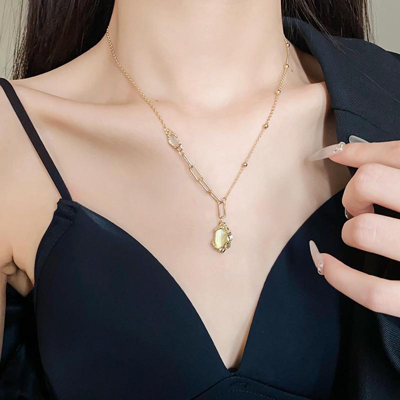 Collar de piedra de ojo de tigre con costuras retro europeas y americanas, diseño irregular de moda, cadena de clavícula ligera, joyería elegante de lujo al por mayor