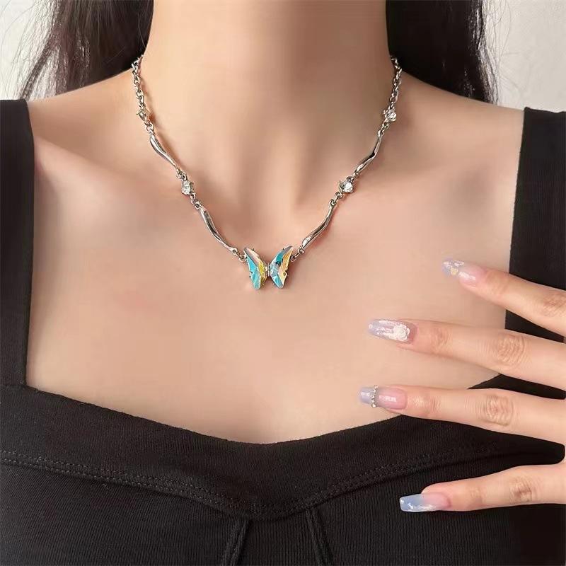 Collar con Colgante de Mariposa Degradada Cadena Clavicular para Mujer Gargantilla Lujo Accesible Nicho Alta Gama 2025 Nuevo Estilo Caliente