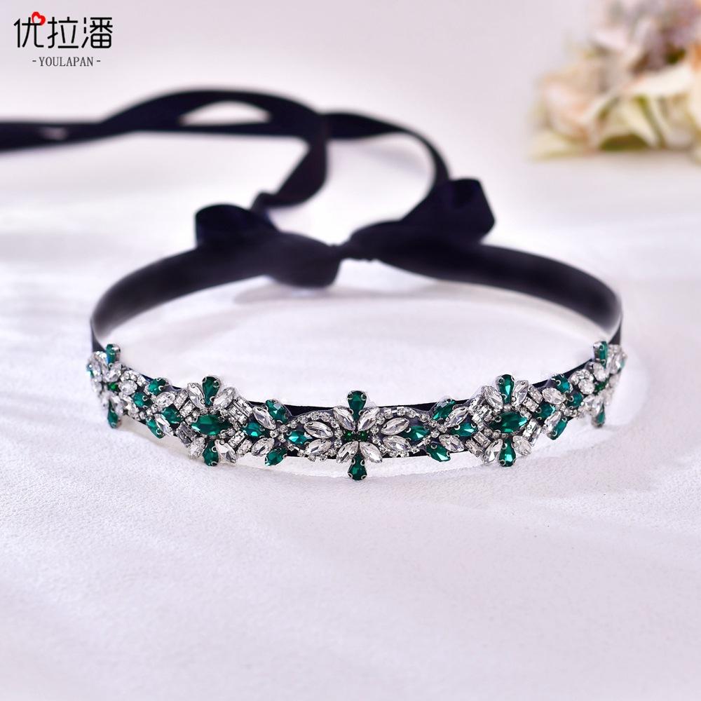 Youlapan S186 Agujero Verde Transfronterizo Venta Caliente Lujo Cinturón Nupcial Esmeralda Diamante Boda Banquete Vestido Accesorios