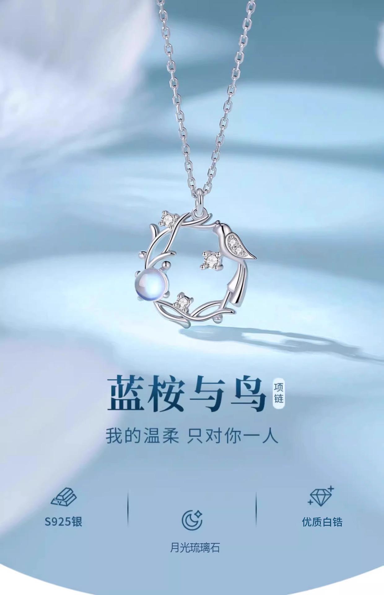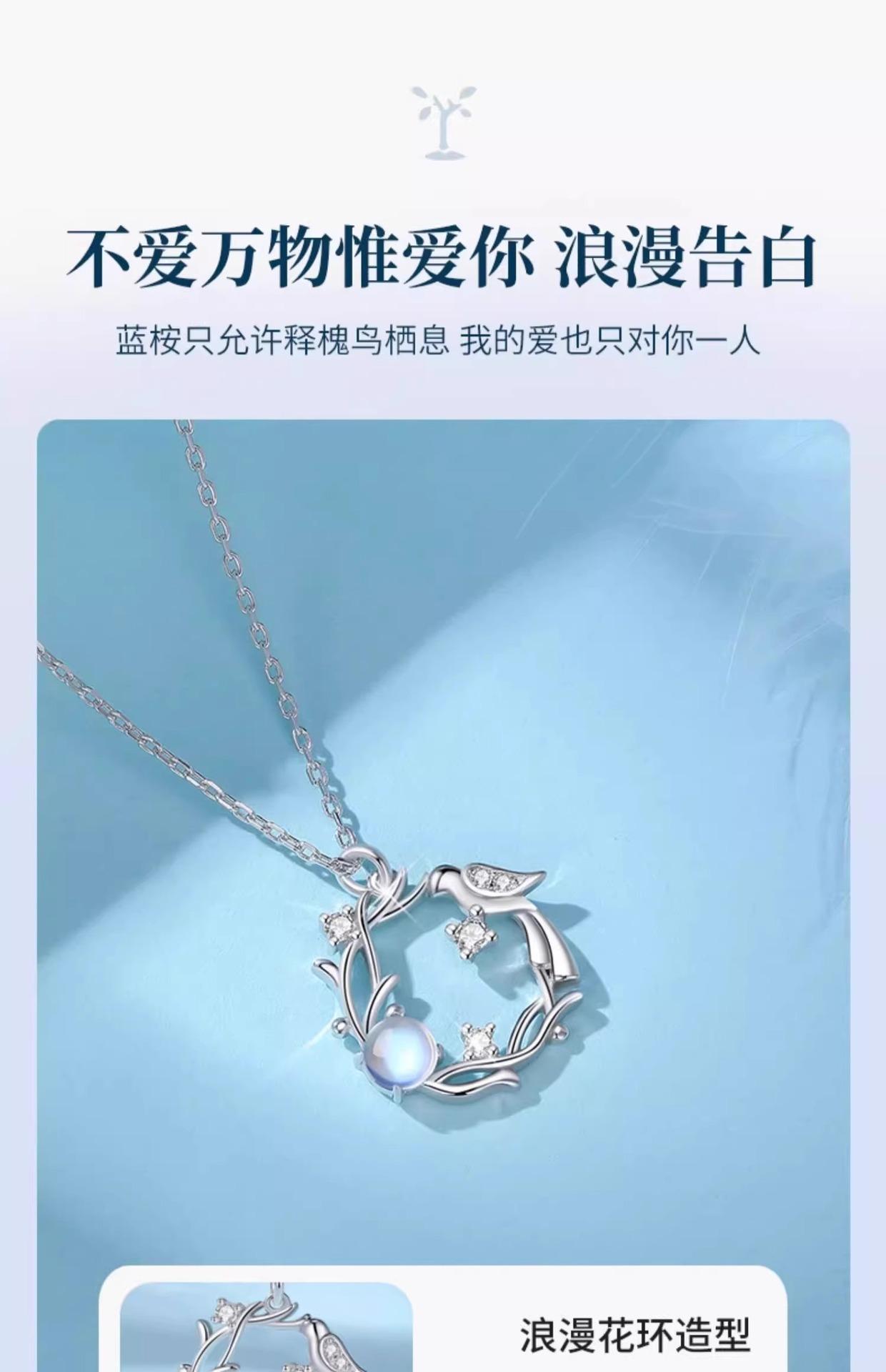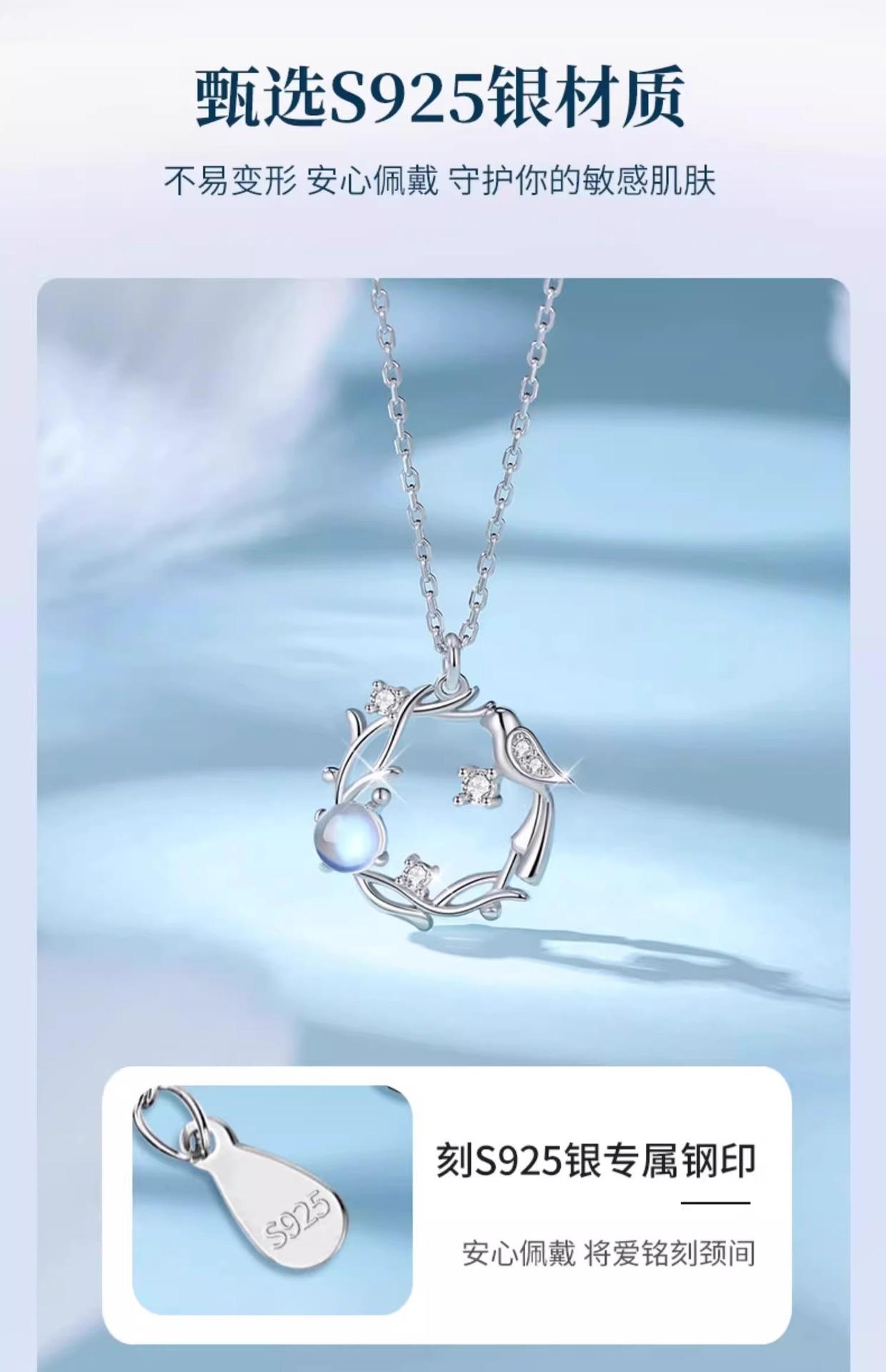 Collar de plata de ley S925 con eucalipto y pájaro, joyería para mujer, cadena de clavícula de lujo ligera con nicho, colgante de alta calidad para regalo de novia.