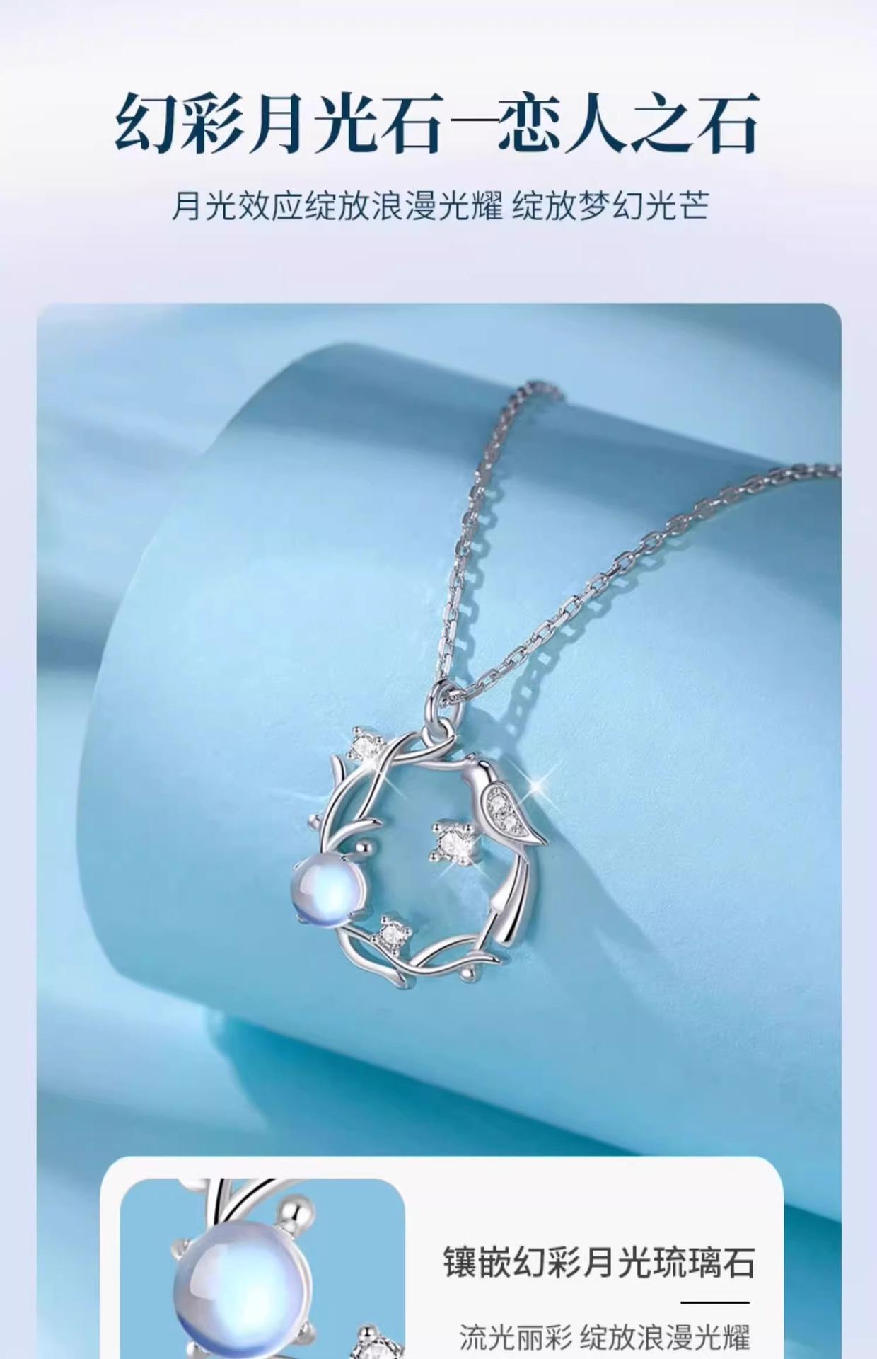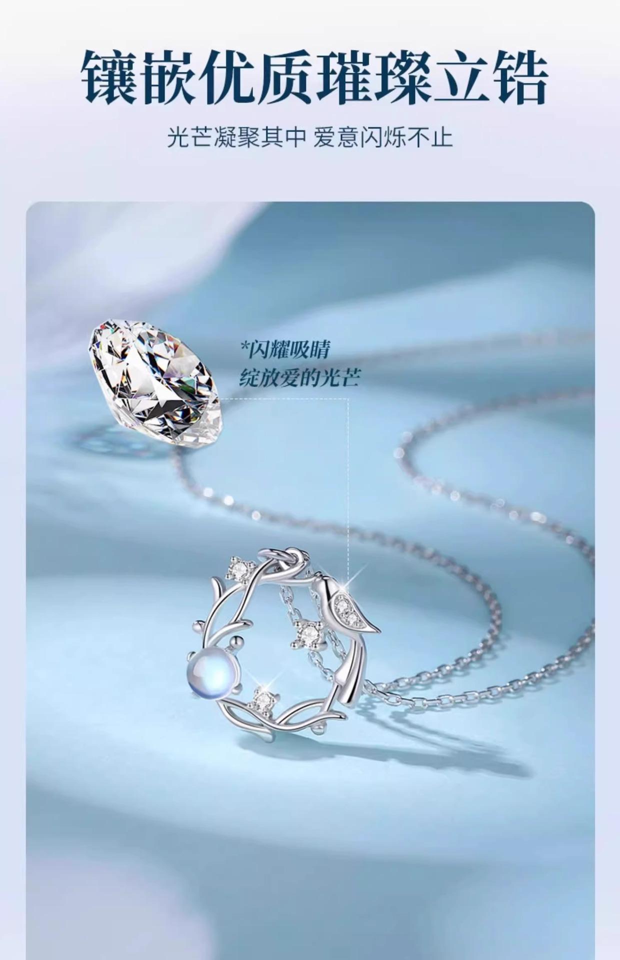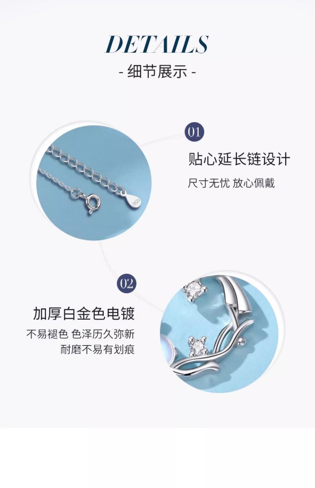 Collar de plata de ley S925 con eucalipto y pájaro, joyería para mujer, cadena de clavícula de lujo ligera con nicho, colgante de alta calidad para regalo de novia.