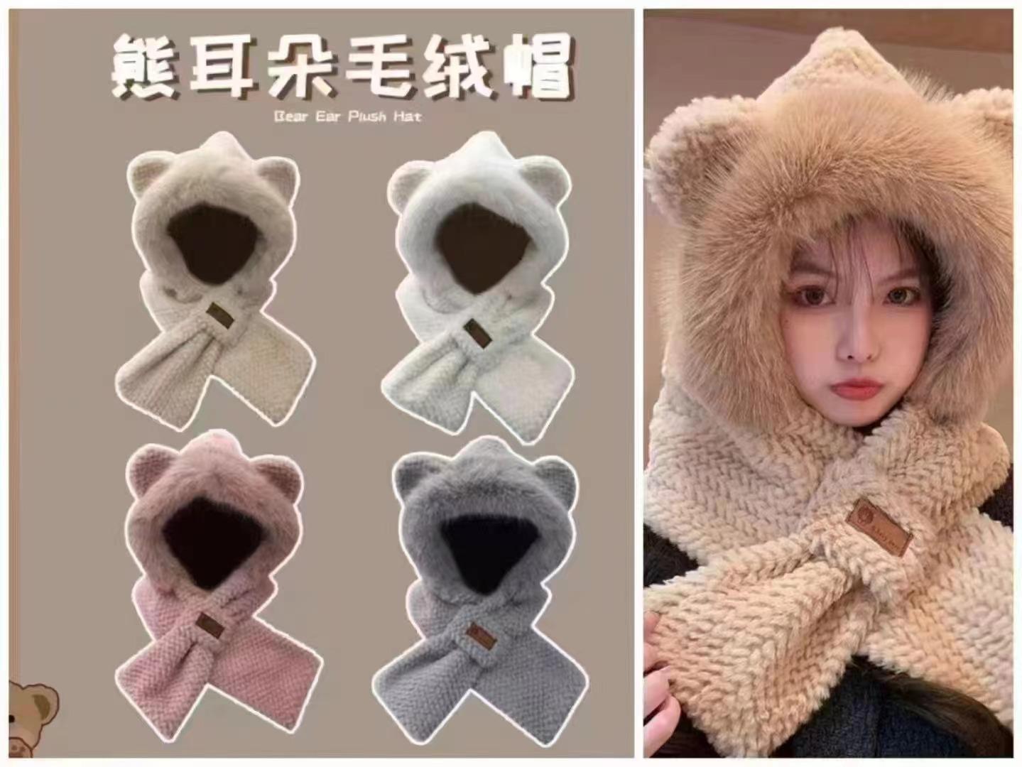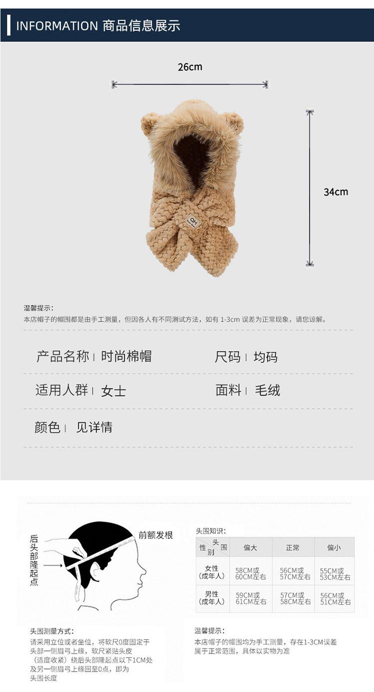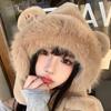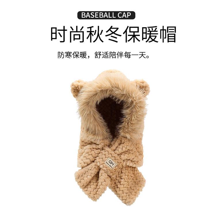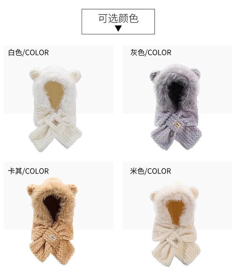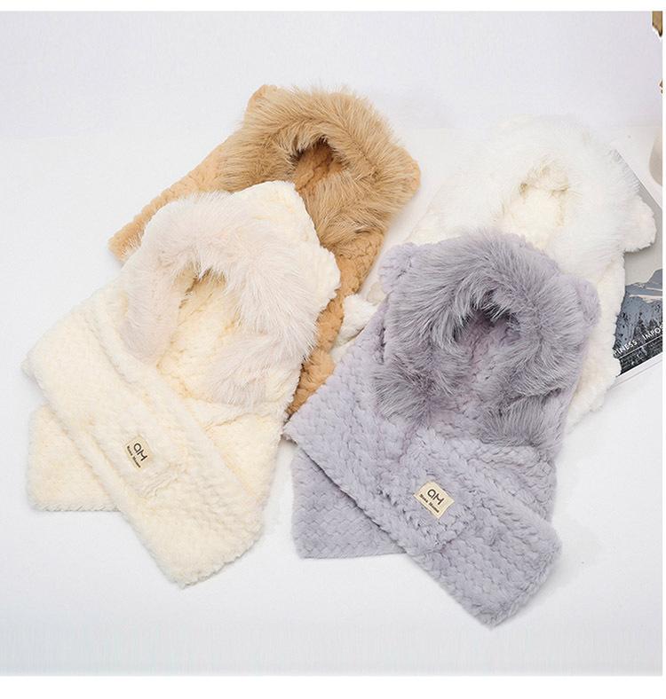 Bufanda Gruesa Cálida con Forro Polar Juego de Dos Piezas a Prueba de Frío Gorro de Felpa con Orejas de Zorro Pequeño Bufanda de Invierno para Mujer