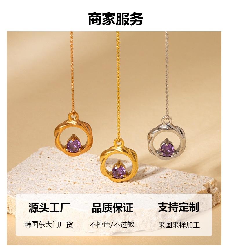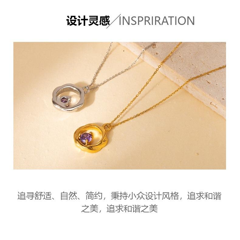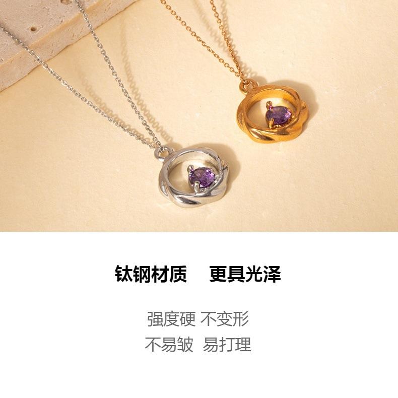 Nuevo Collar Sencillo de Circón Púrpura de Acero de Titanio Versátil Nicho Moda Joyería para Mujer Acero Inoxidable Colgante que No se Desvanece