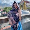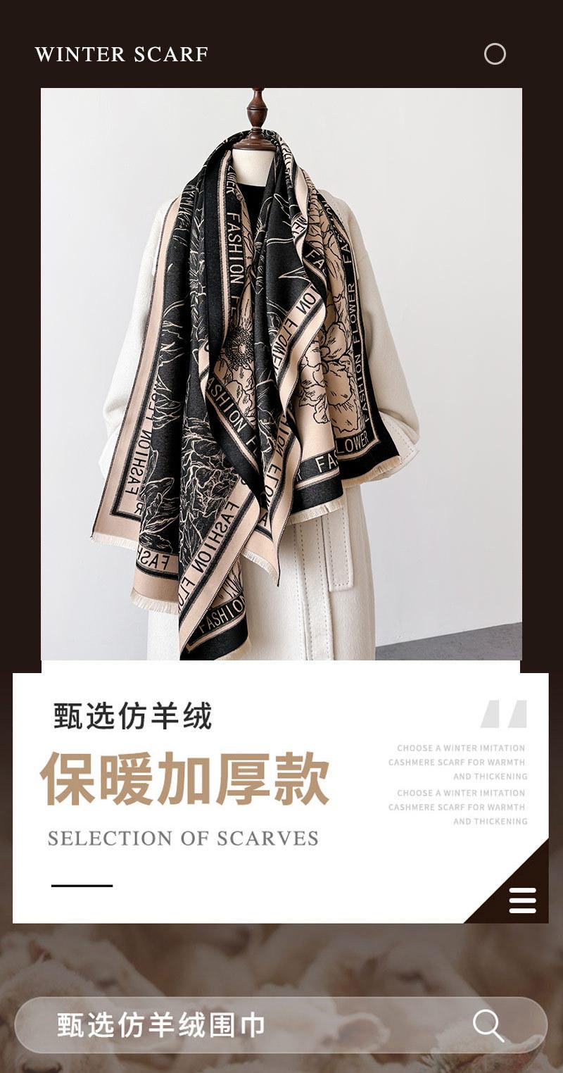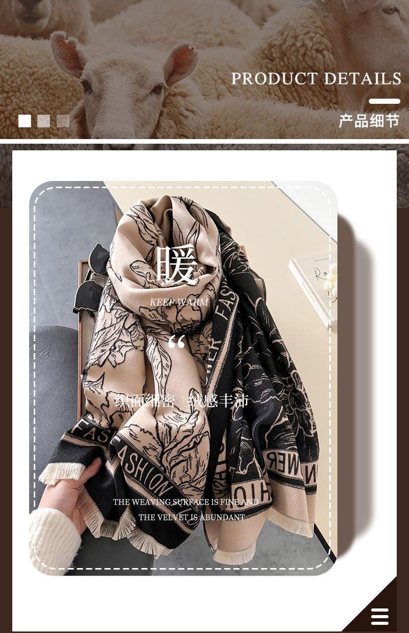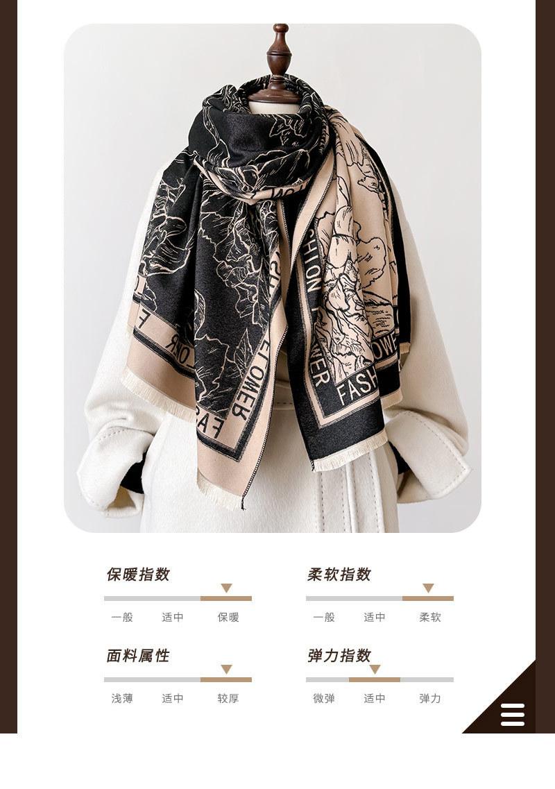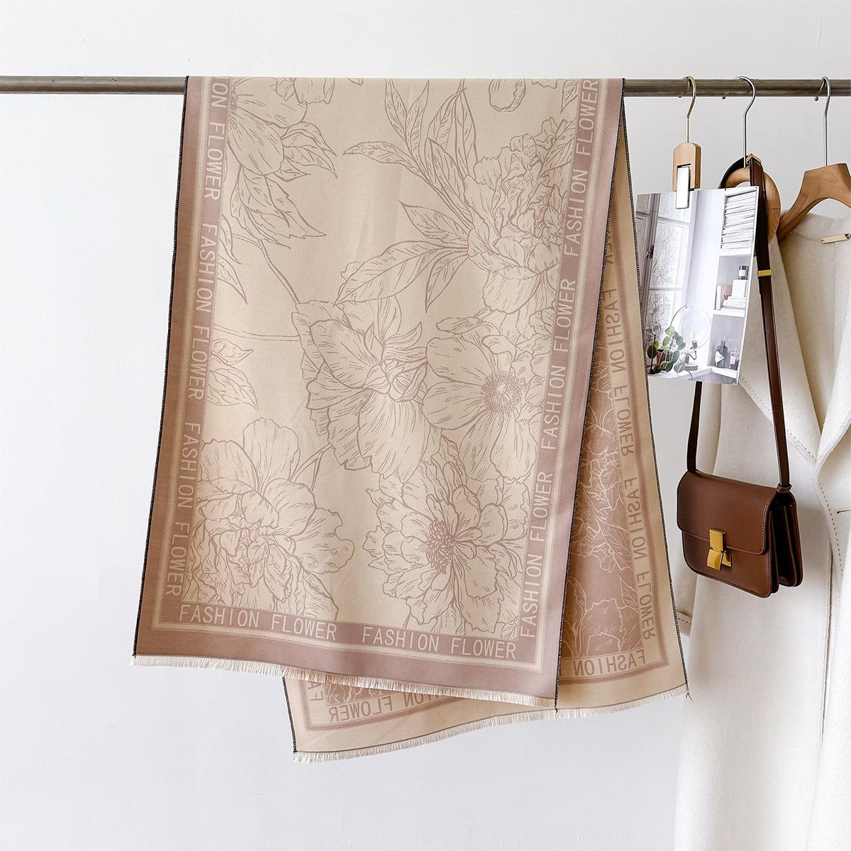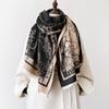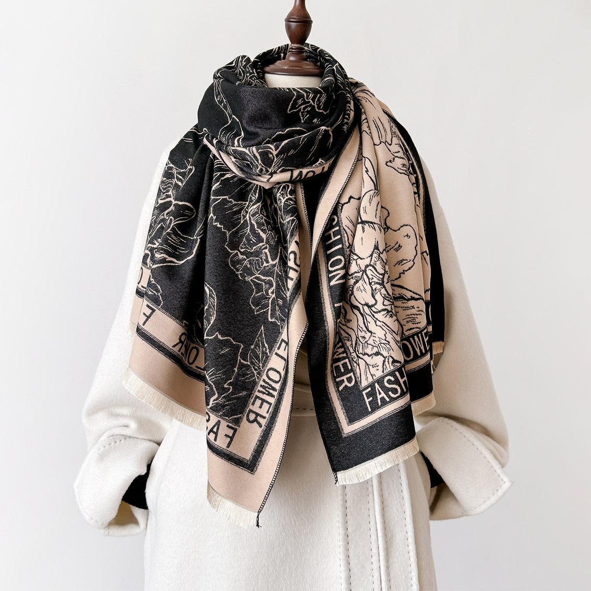 Bufanda de cachemira de doble cara cálida y combinable con todo, estilo étnico, con estampado vintage de flores y letras, para otoño e invierno, para mujer.