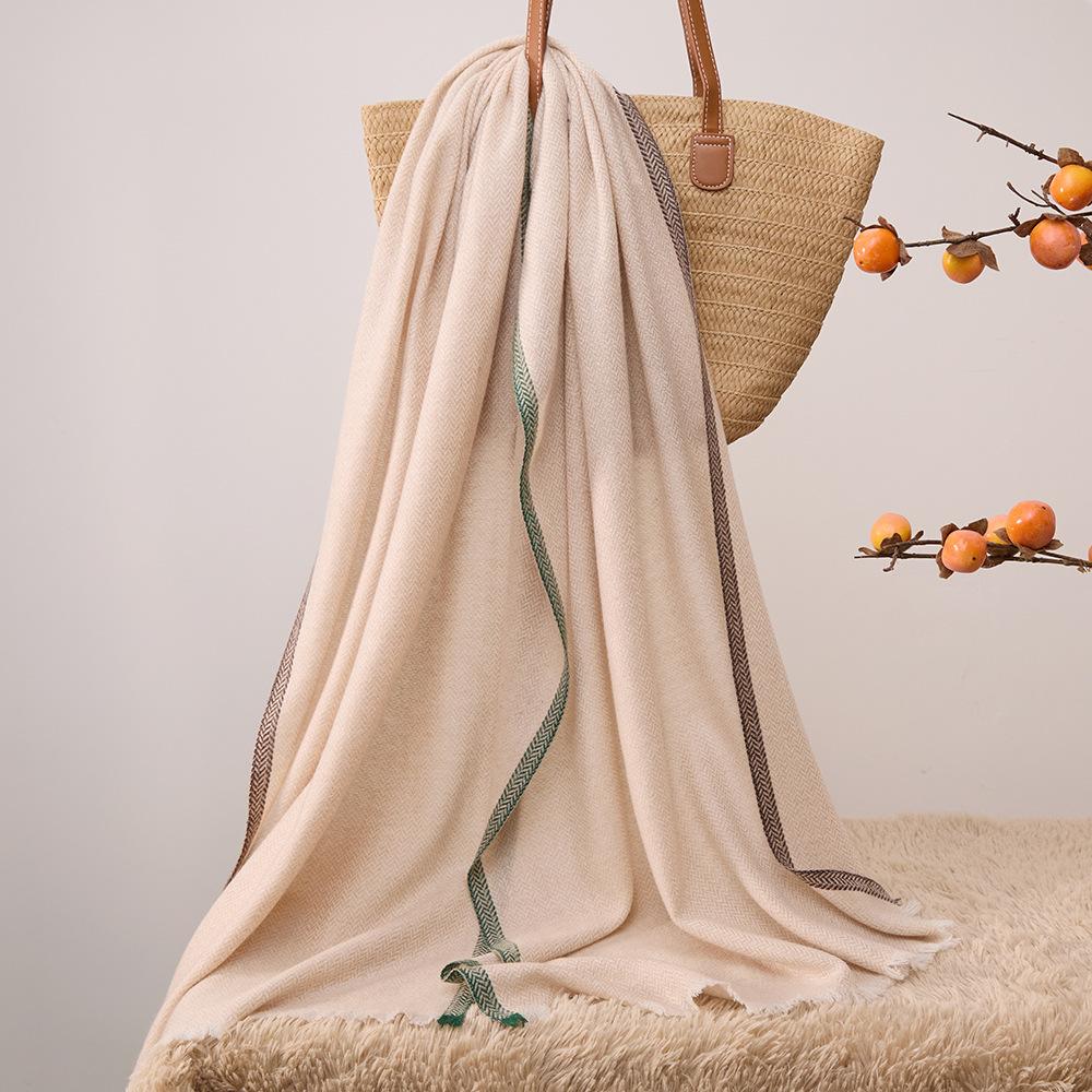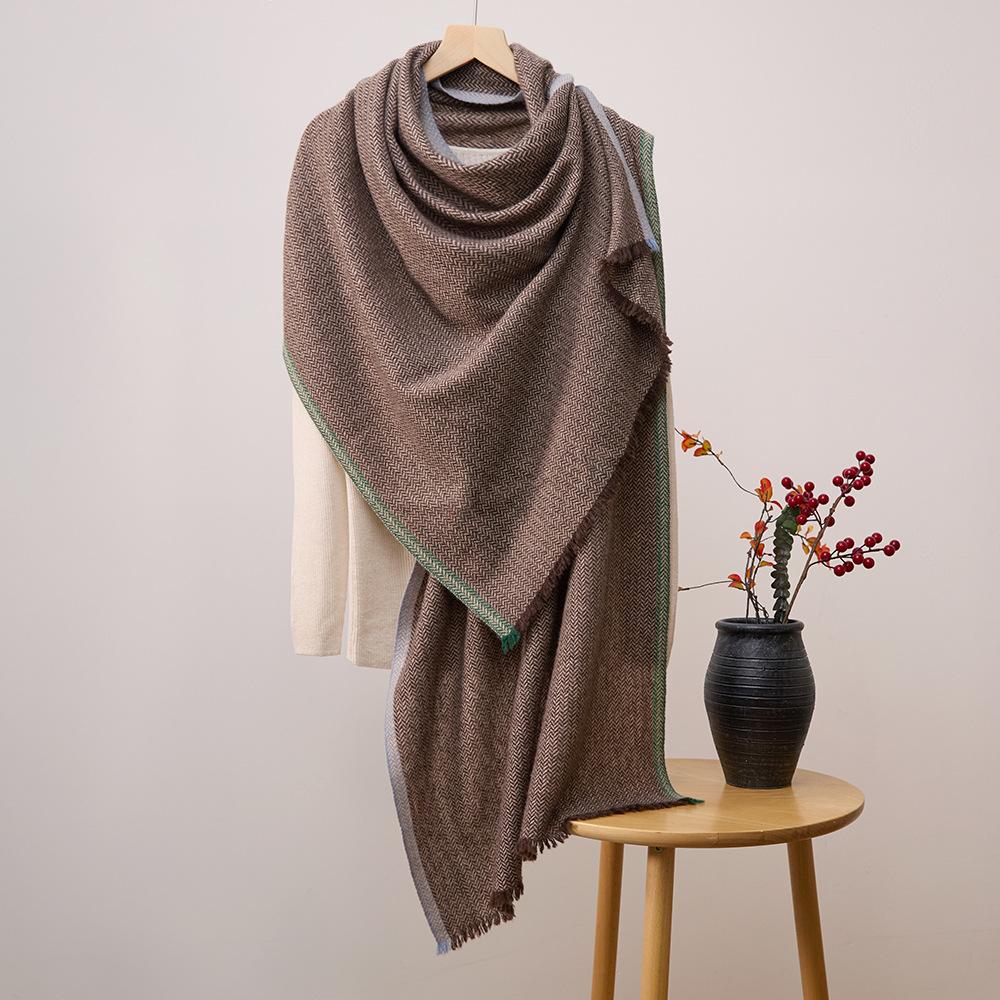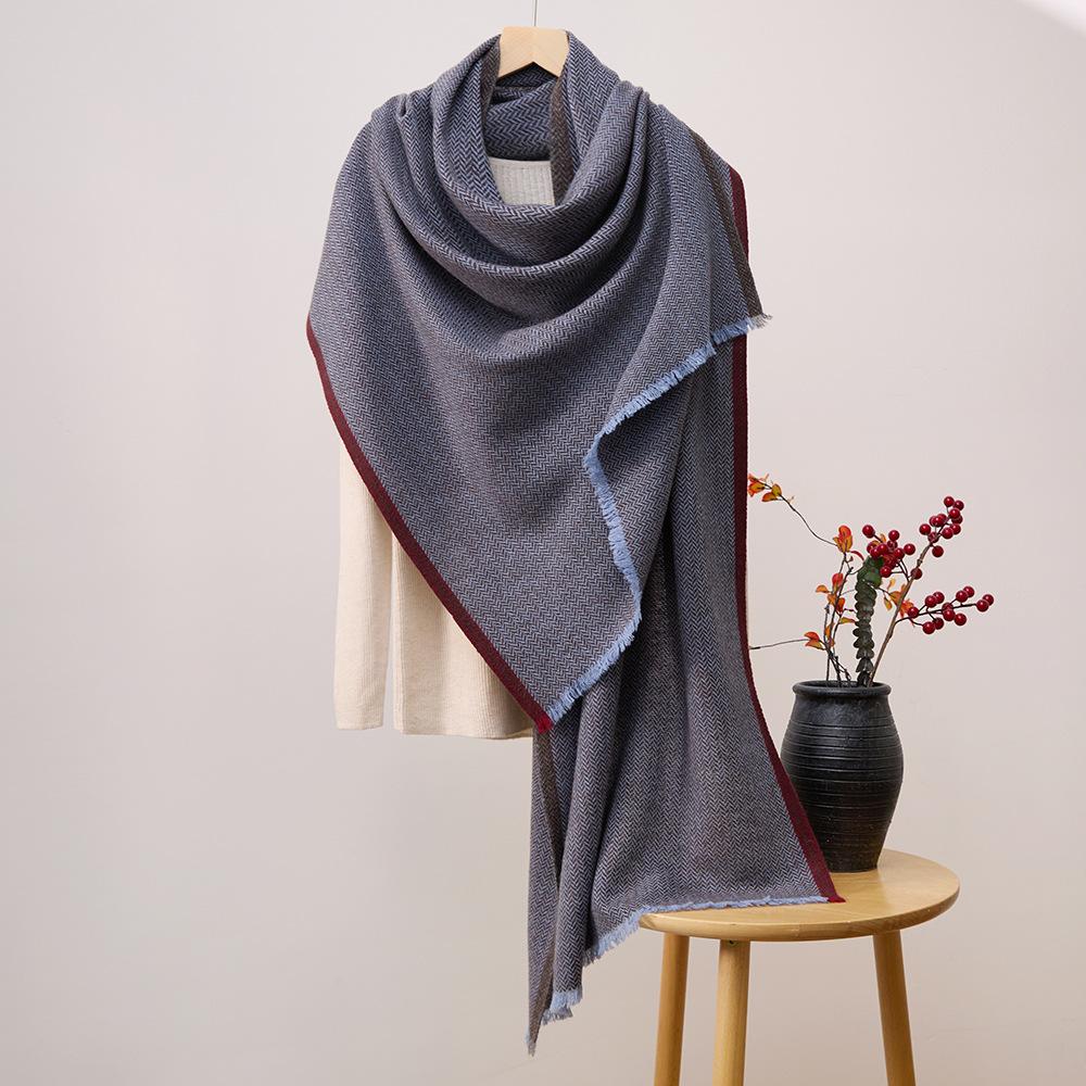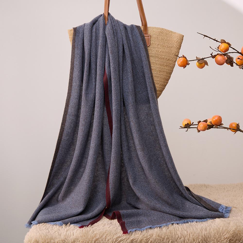 Venta al por mayor, nueva bufanda de cachemir con borde de color y estampado de espiga de otoño e invierno de Mongolia Interior, cálida bufanda de cachemir para hombres y mujeres.