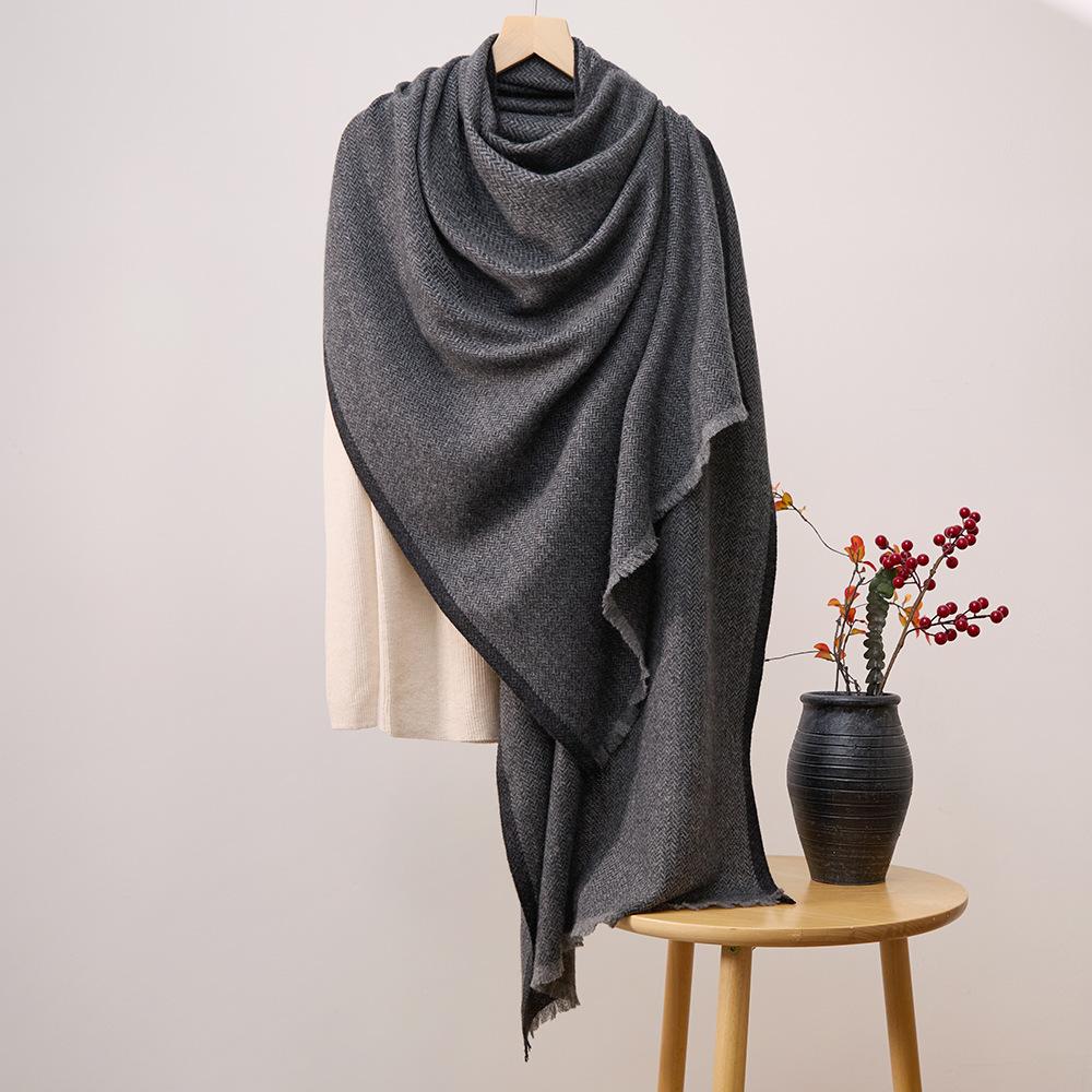 Bufanda de Espiga de Cachemira Pura con Bordes de Diferente Color