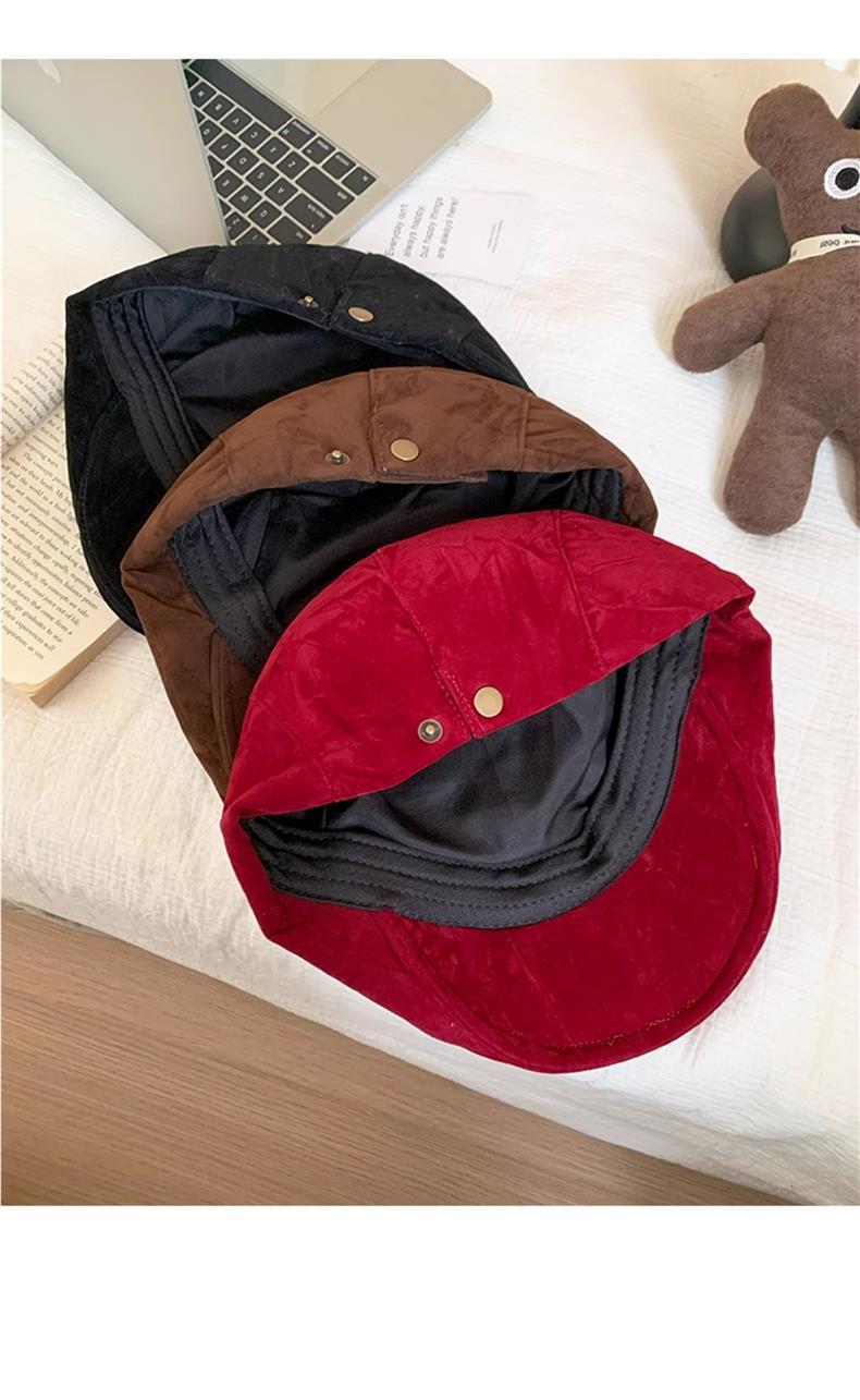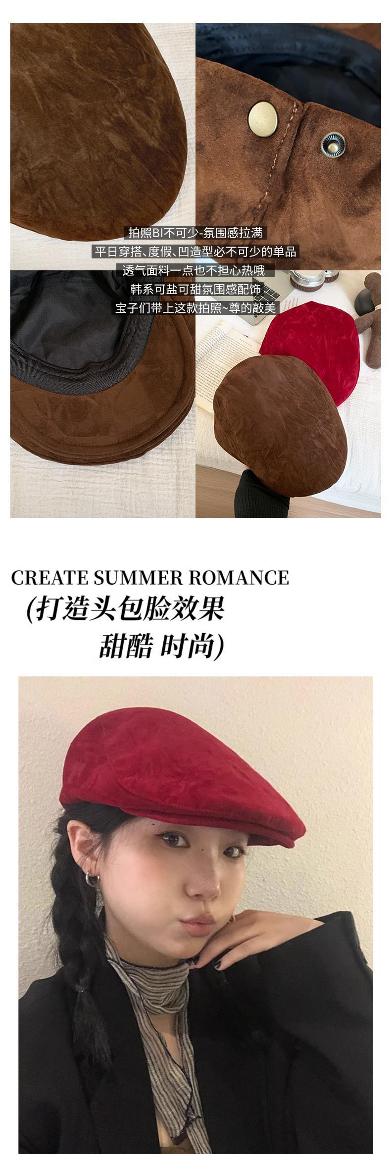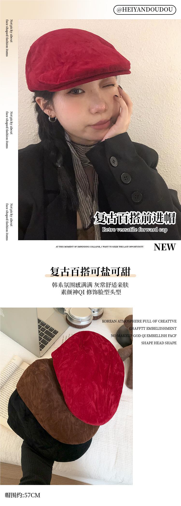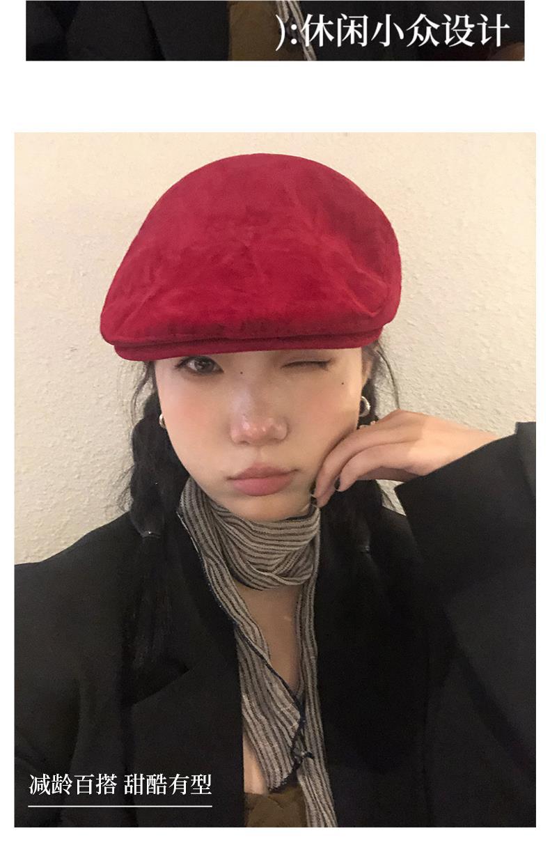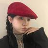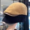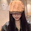 Boina pequeña estilo americano vintage de gamuza con diseño de cara cuadrada para mujer, estilo otoño e invierno, estilo Y2K.