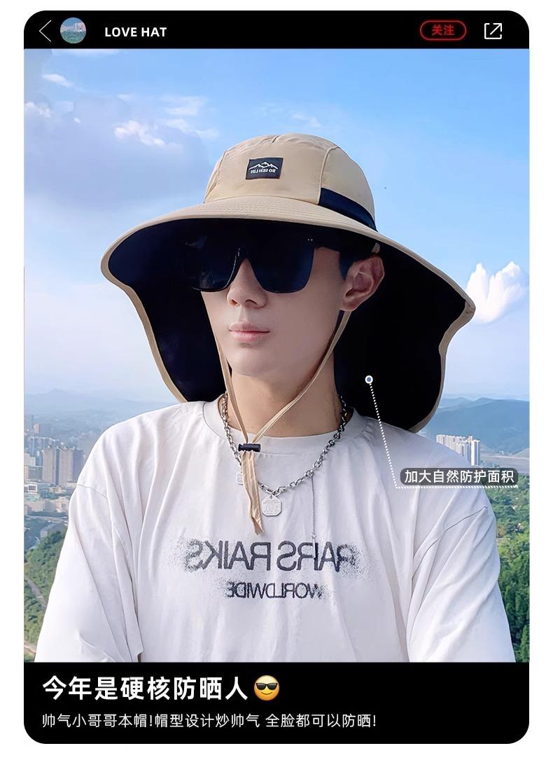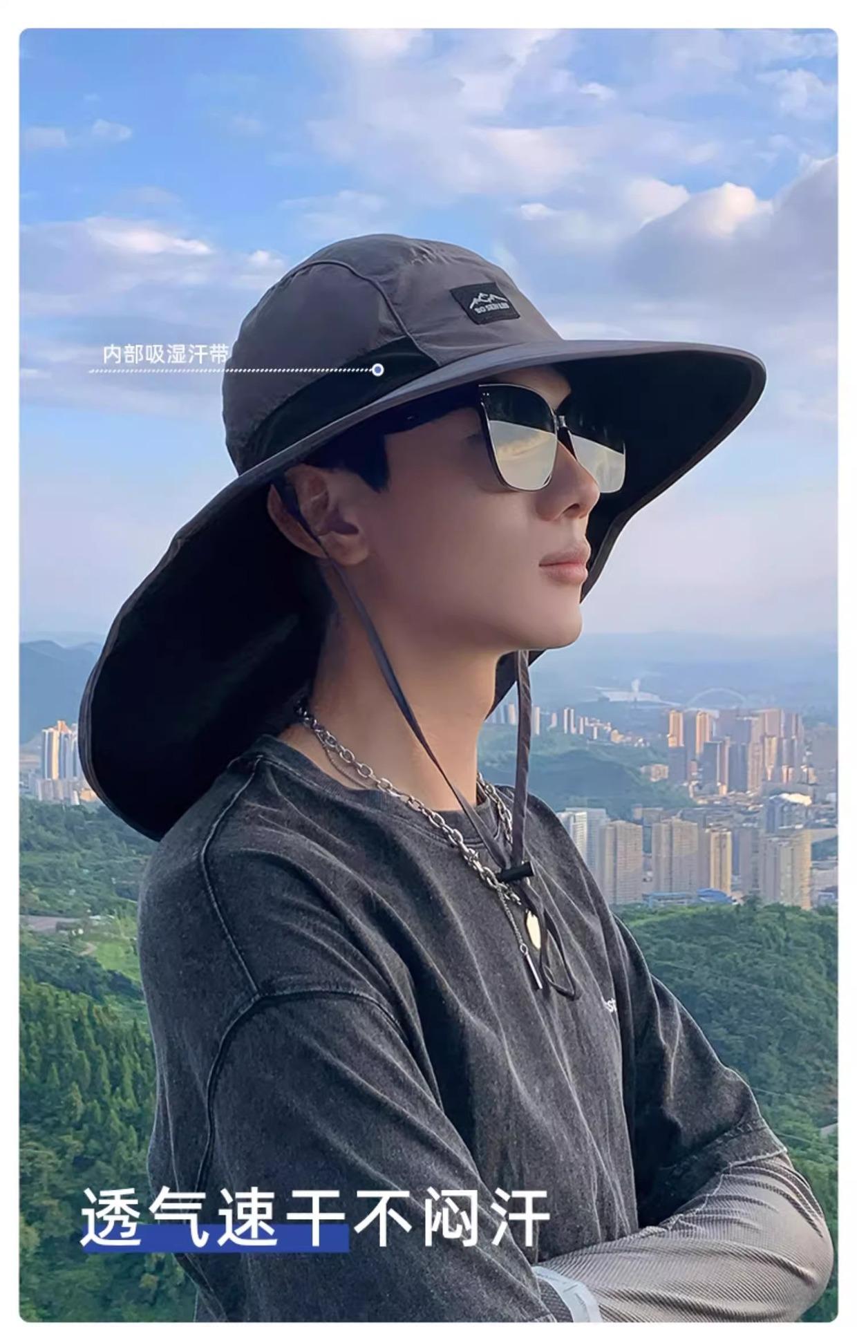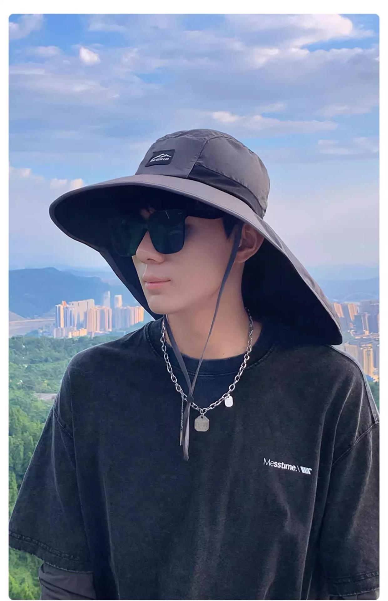 Sombrero de verano para hombre, protector solar, de ala ancha, para exteriores, montañismo, protección UV, para pesca y pescador.