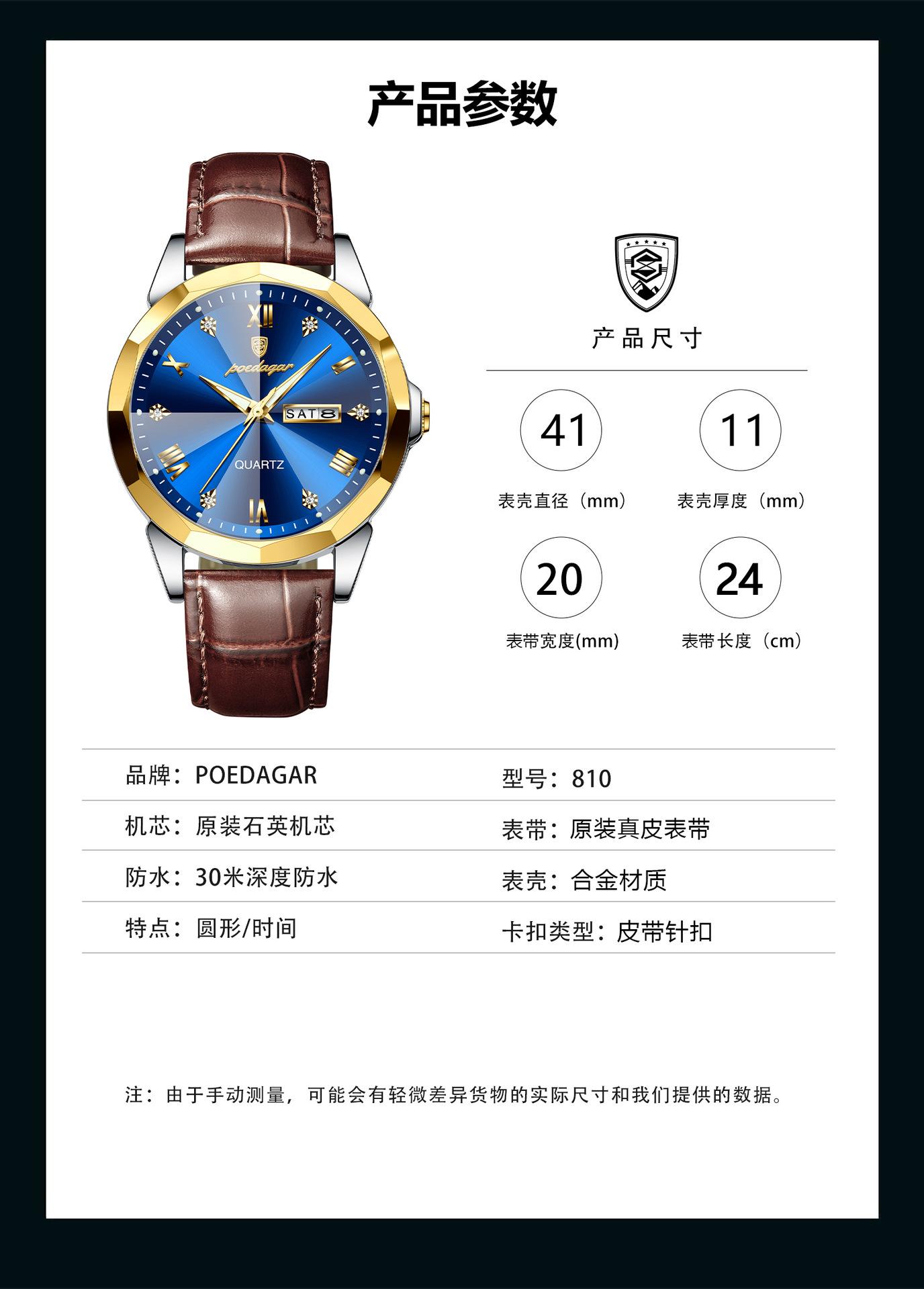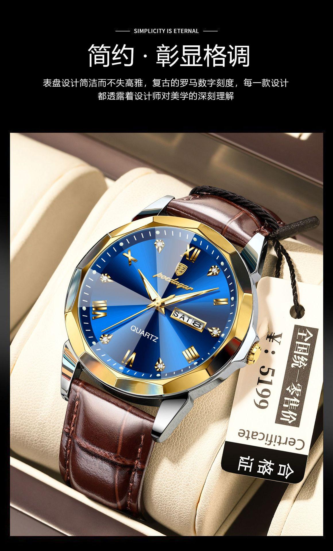 Reloj de hombre con correa de marca suiza, resistente al agua, luminoso, de cuarzo, de moda, con explosiones de comercio exterior en vivo, una generación de cabello