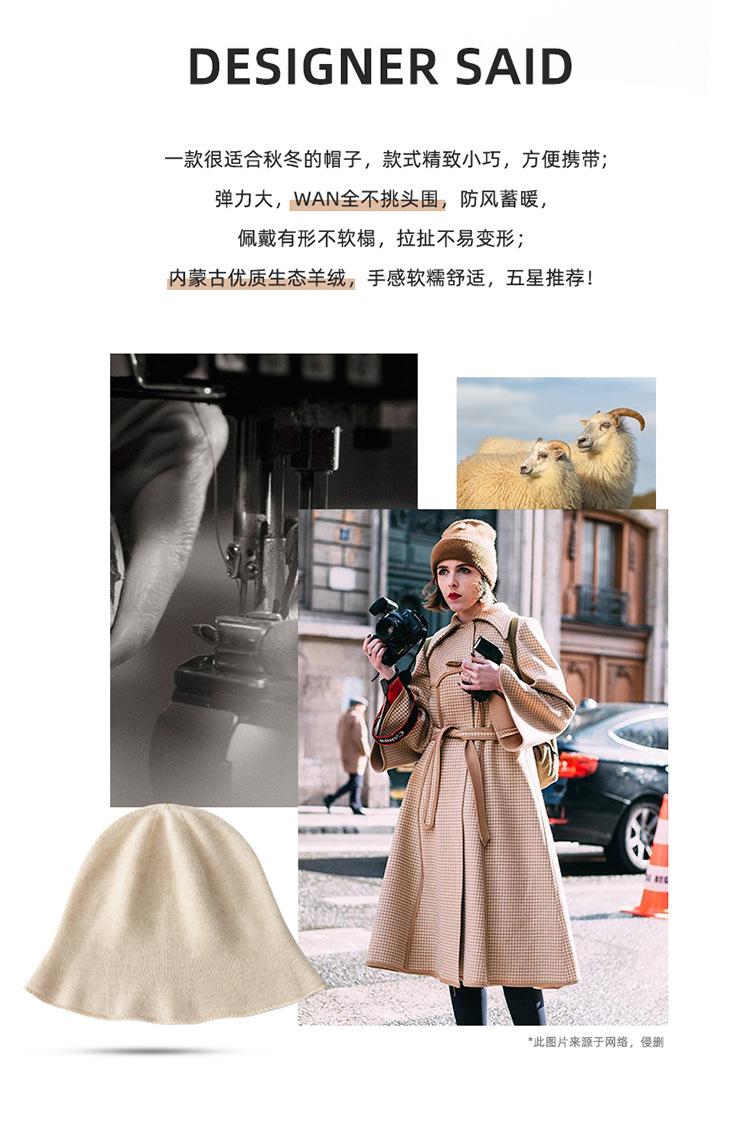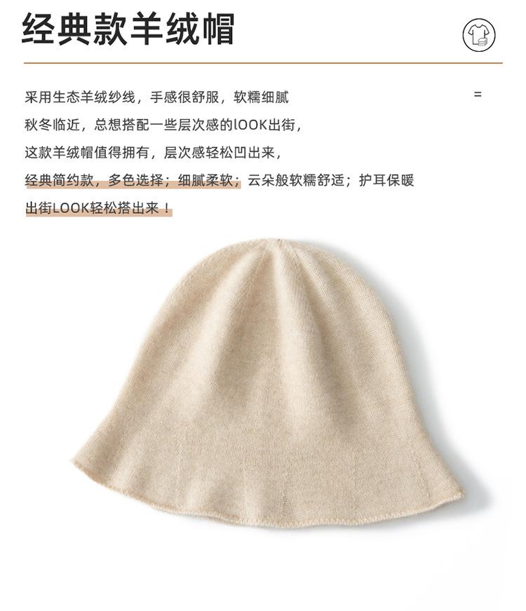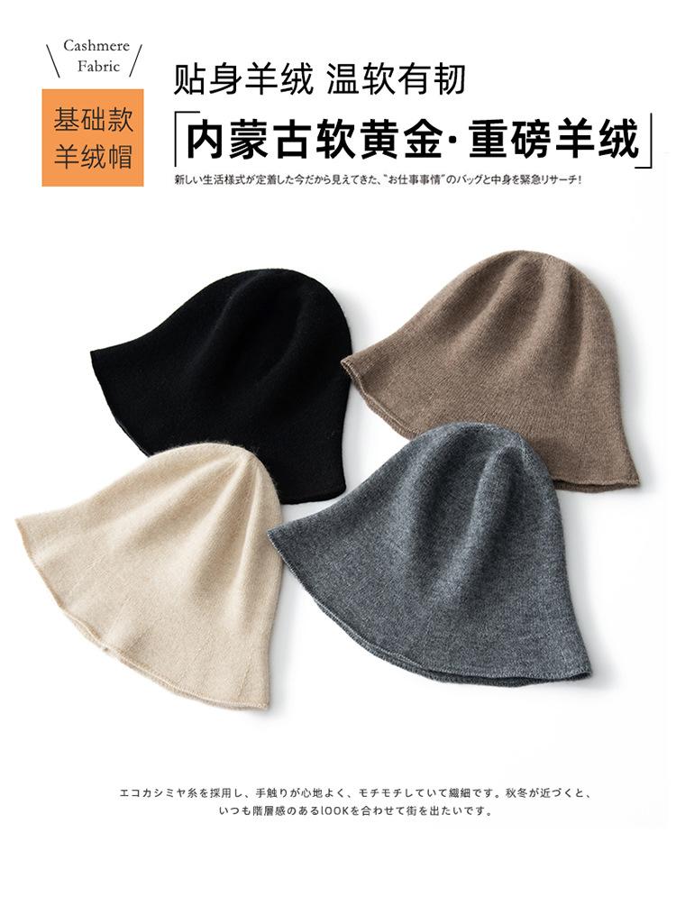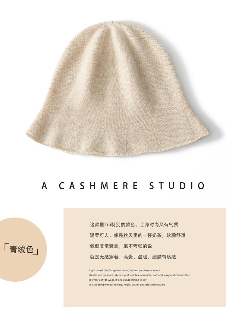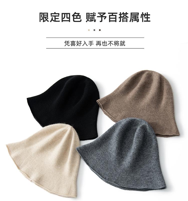 Gorro de Punto de Cachemira Pura Estilo Coreano Combinable Sombrero de Pescador Sombrero de Cubo para Mujer Otoño e Invierno Cálido Moda