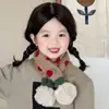 Bufanda de lana cálida para bebé coreana, de otoño e invierno, bonita, de doble bola, resistente al viento, con cuello cruzado de punto para niños y niñas
