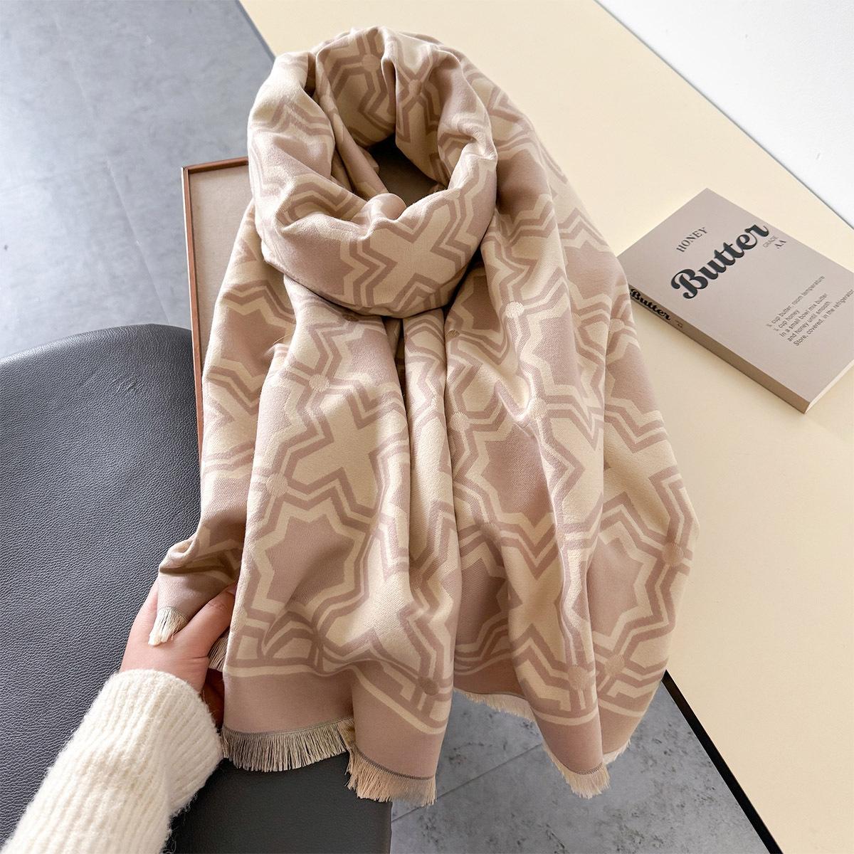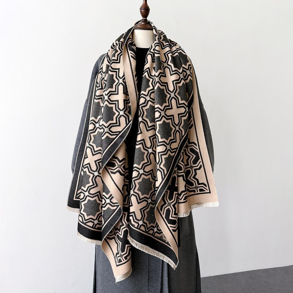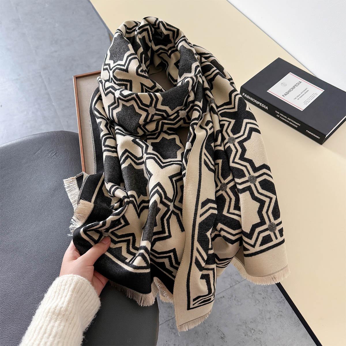Poncho chal para mujer, estilo coreano, otoño e invierno, bufanda geométrica a rayas que combina con todo, abrigo de cachemira sintética de longitud media para invierno.