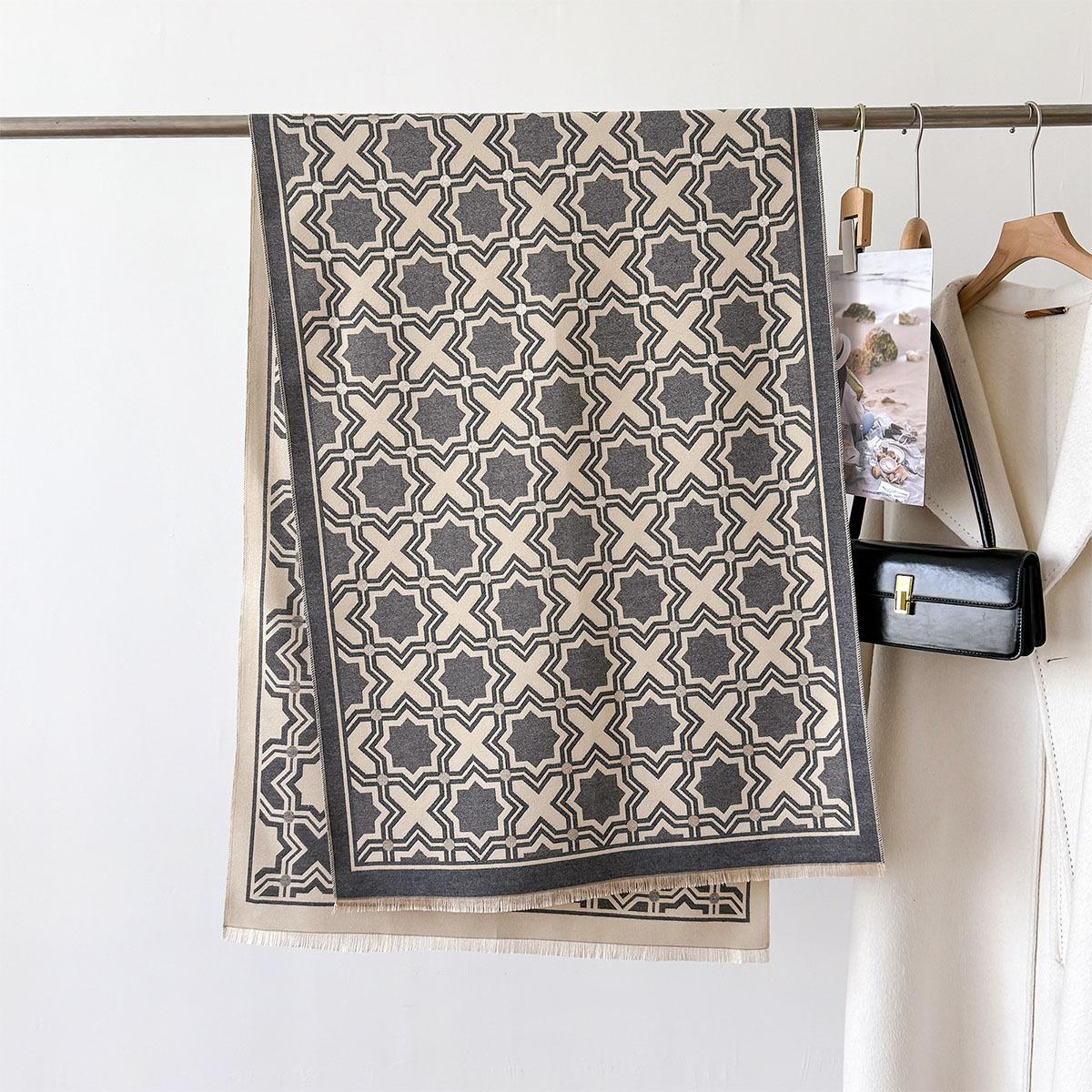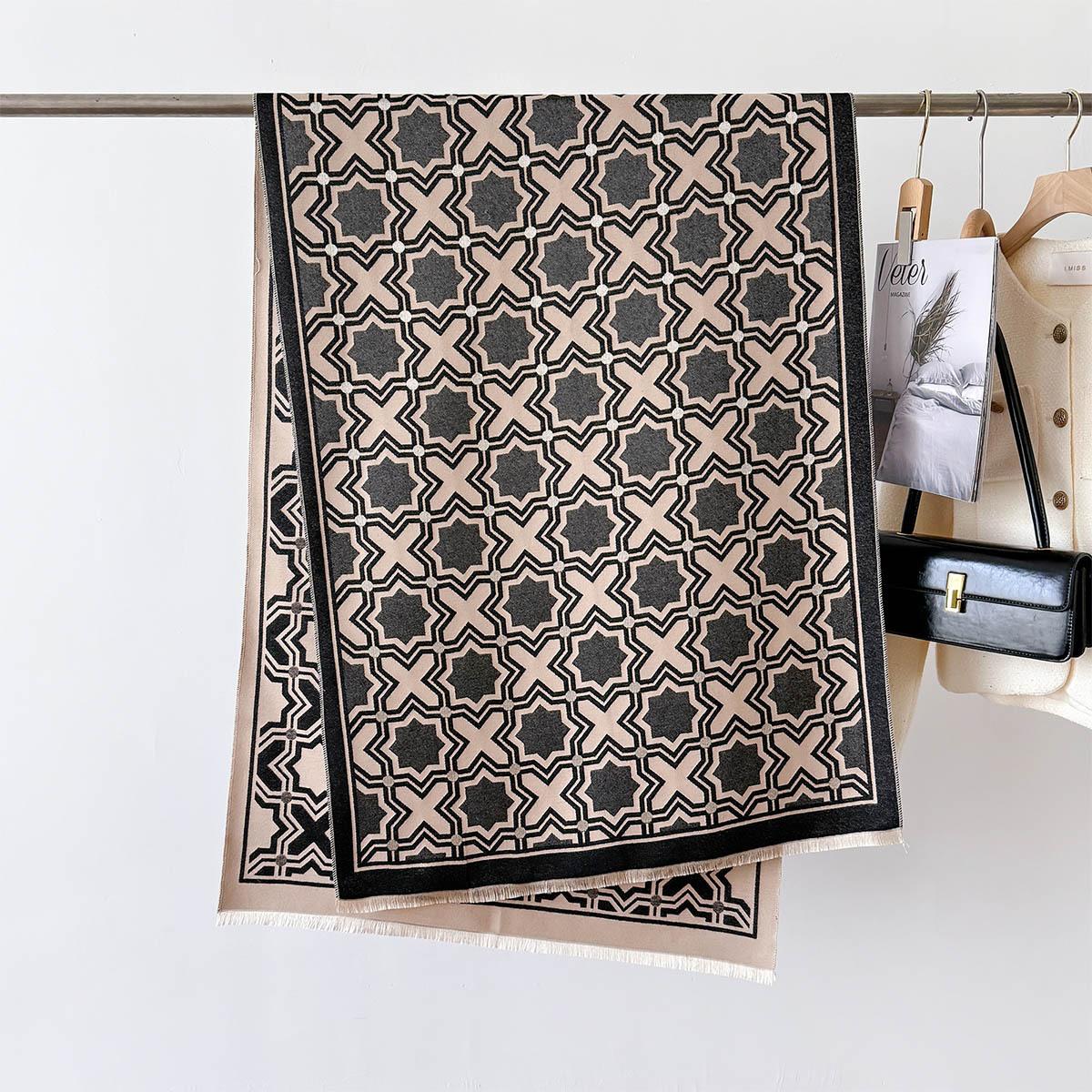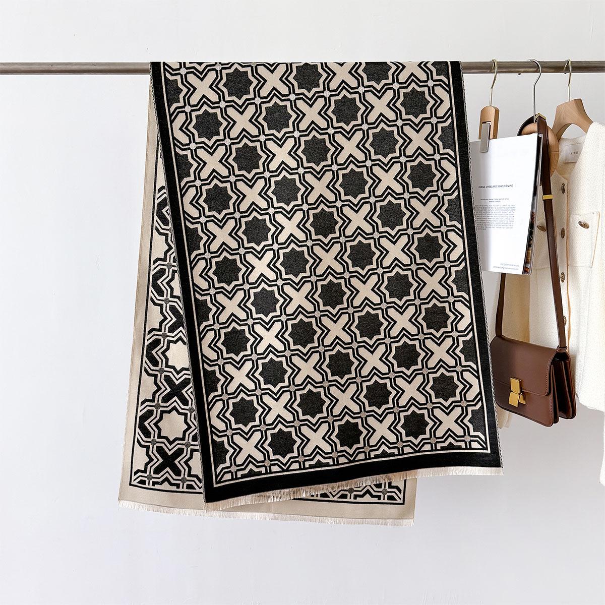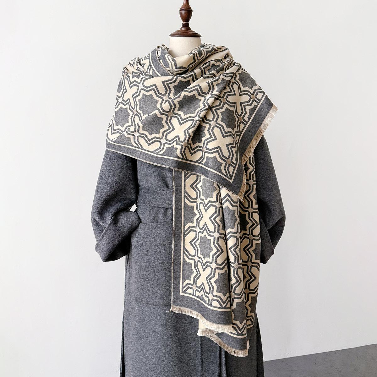 Poncho chal para mujer, estilo coreano, otoño e invierno, bufanda geométrica a rayas que combina con todo, abrigo de cachemira sintética de longitud media para invierno.