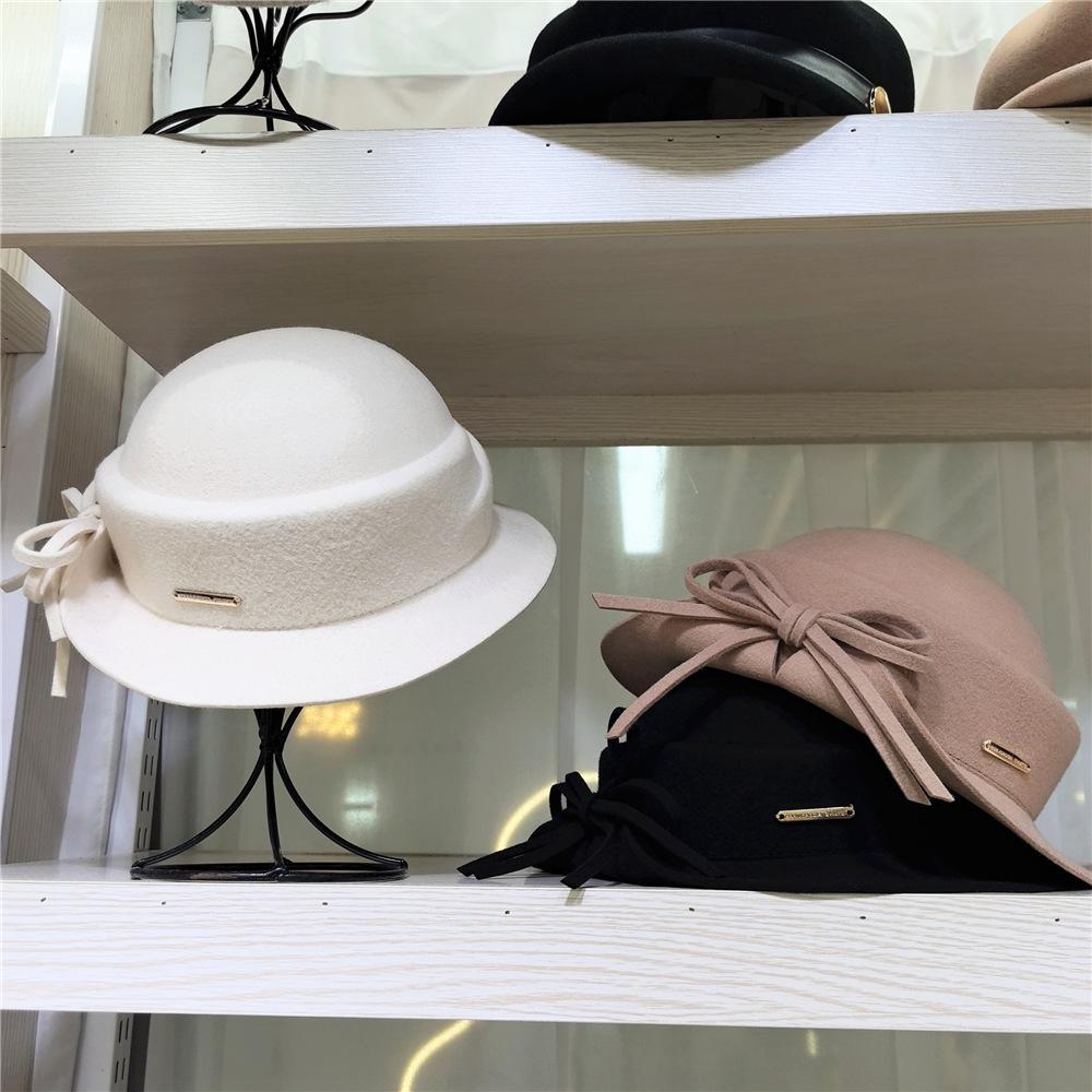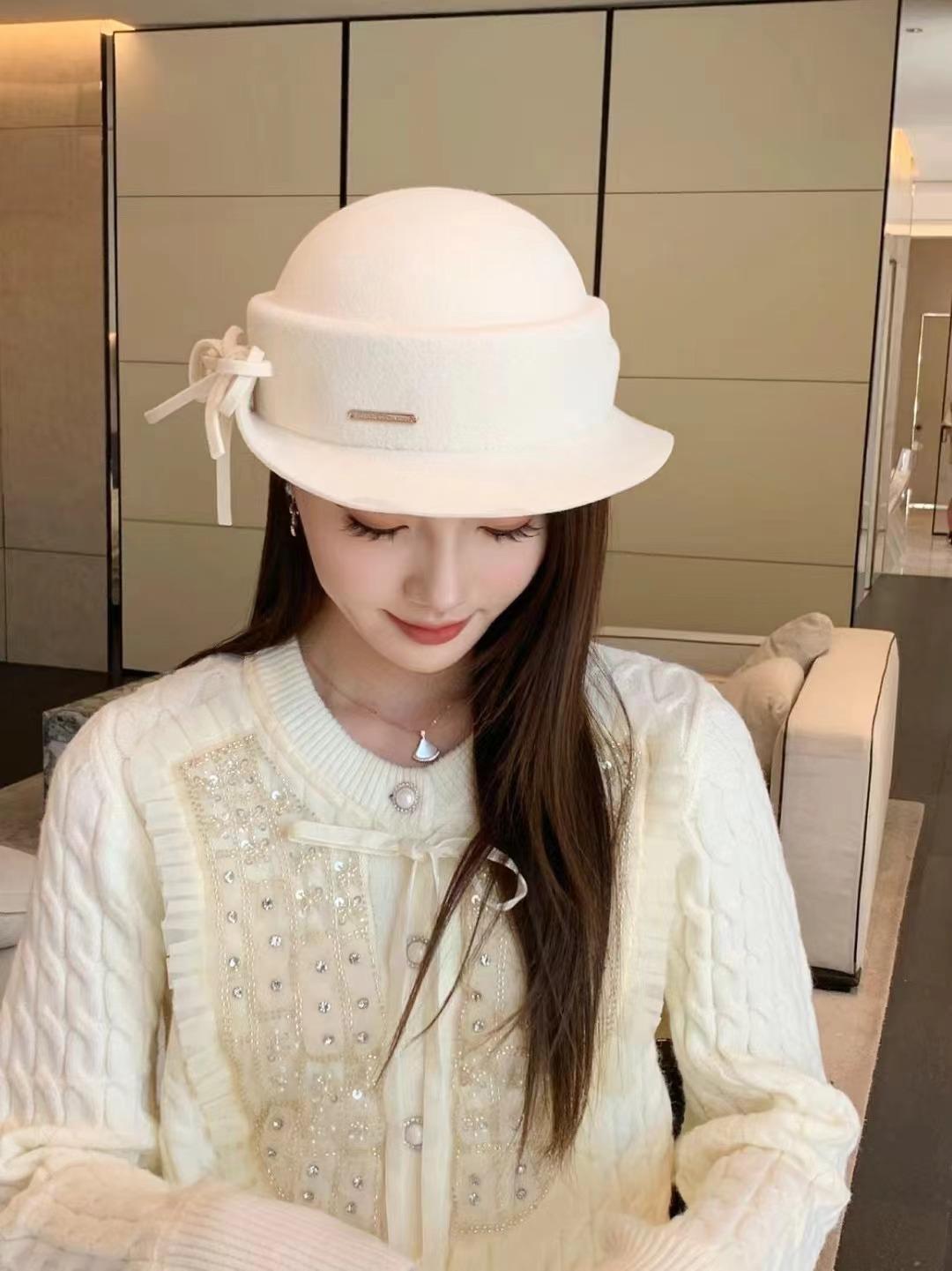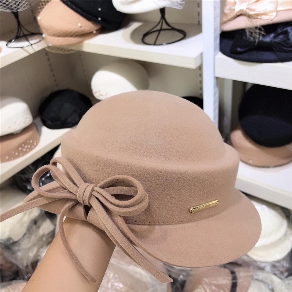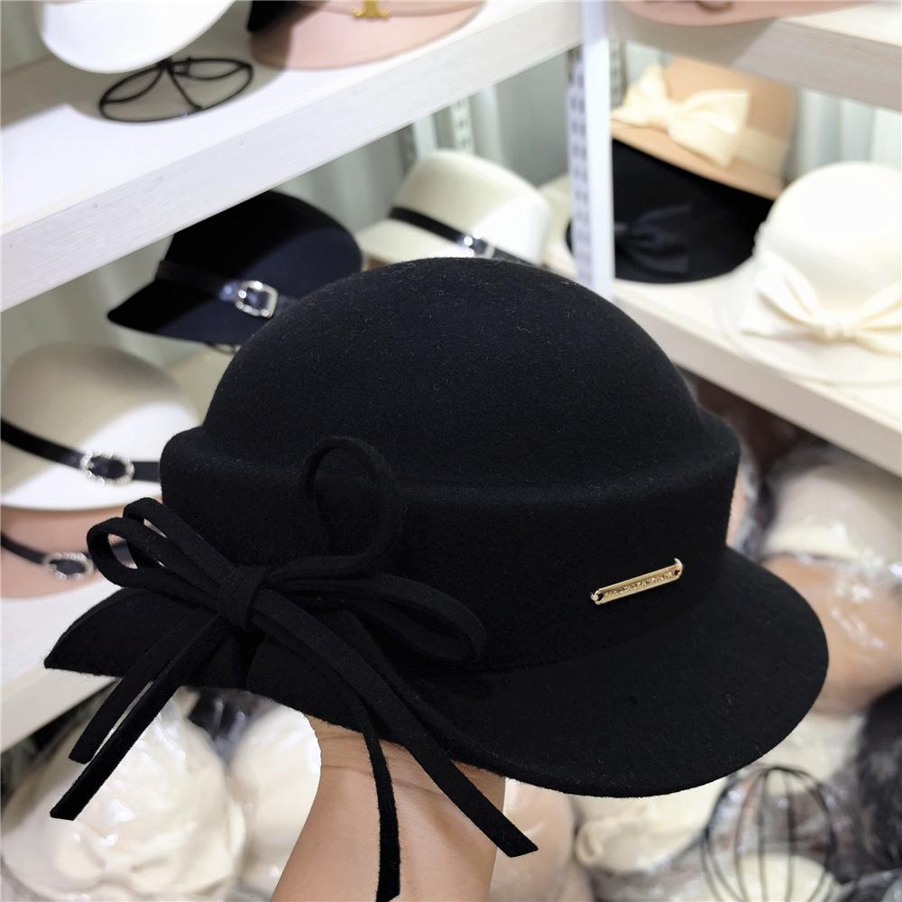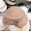 Estilo Francés Nuevo Otoño e Invierno Sombrero Cubeta de Lana Estilo Británico Decoración de Lazo Elegante para Mujer Combinable Estilo Occidental Sombrero de Copa Pequeño