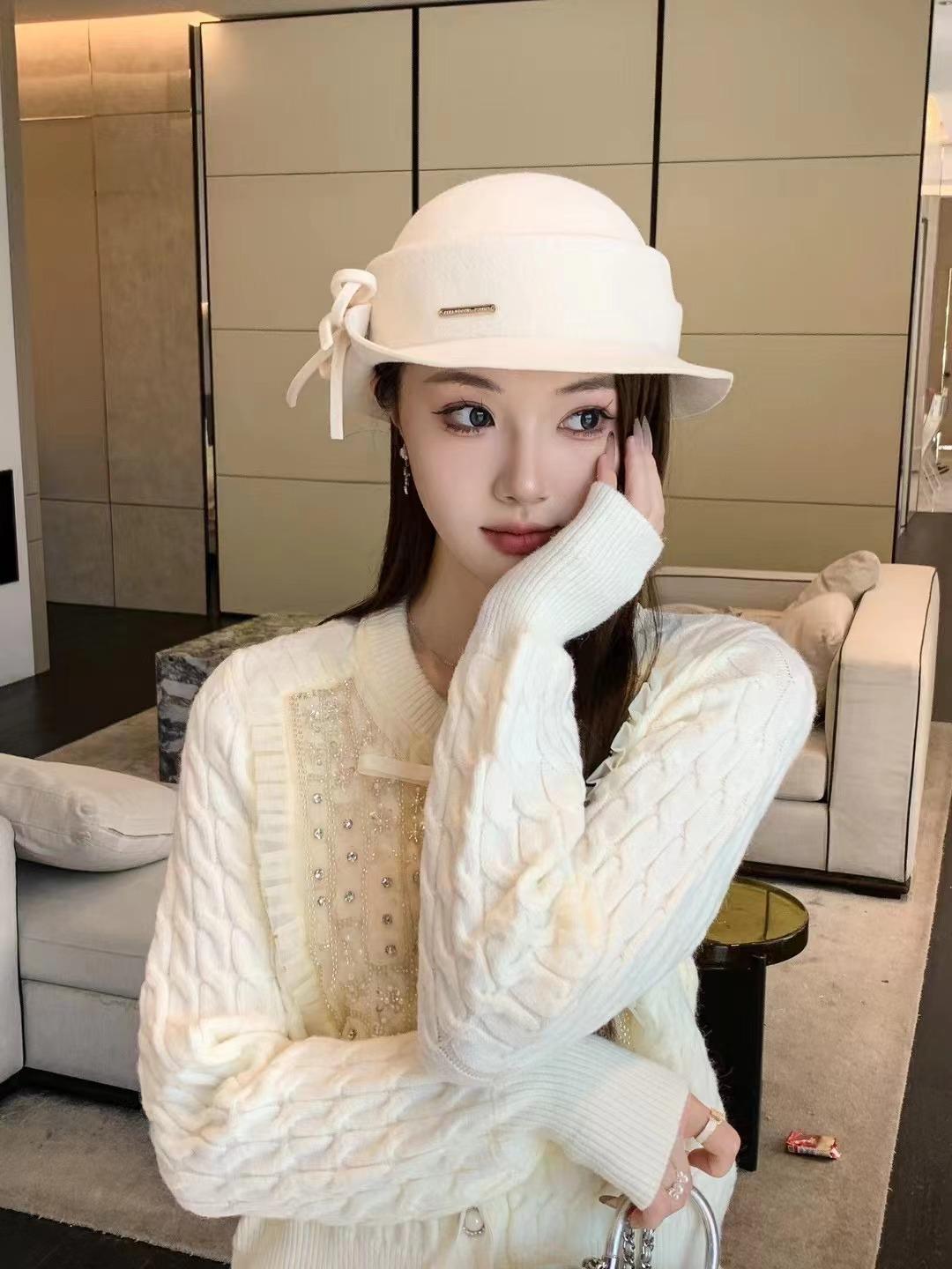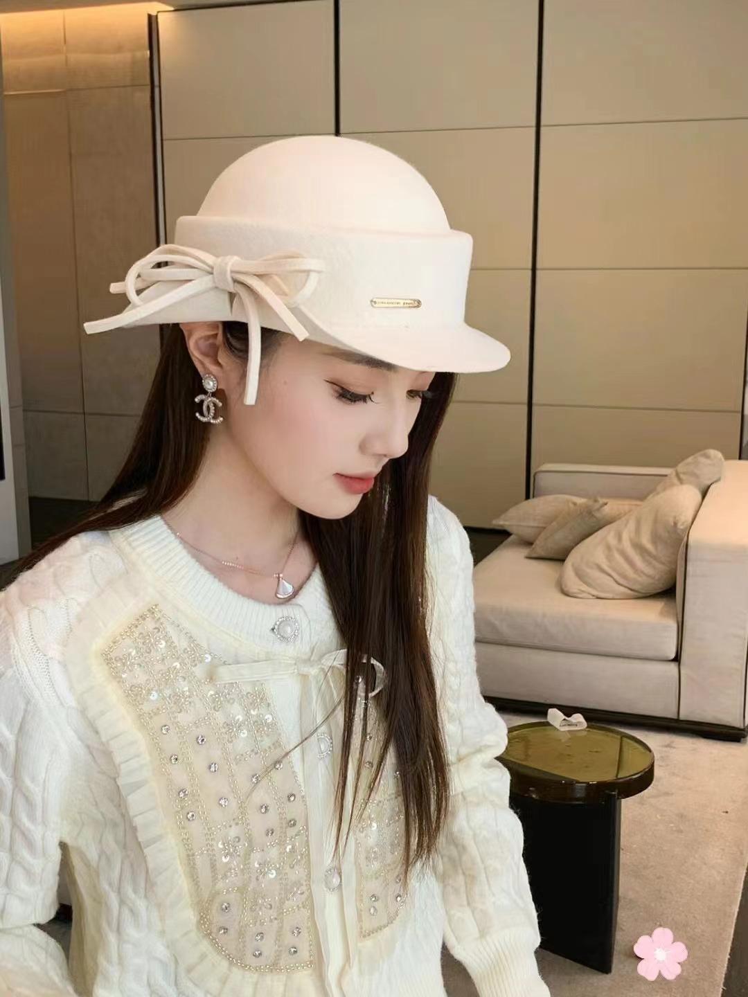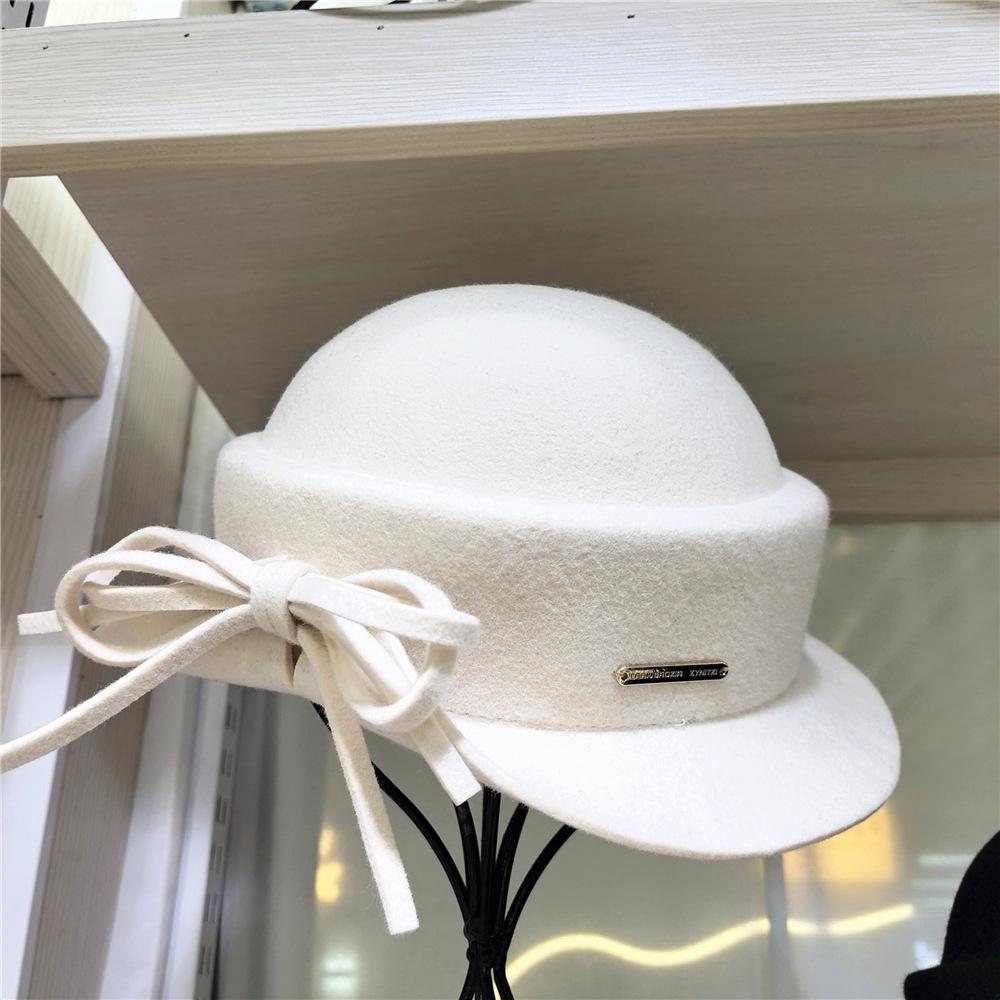 Estilo Francés Nuevo Otoño e Invierno Sombrero Cubeta de Lana Estilo Británico Decoración de Lazo Elegante para Mujer Combinable Estilo Occidental Sombrero de Copa Pequeño