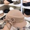 Sombrero de cubo de lana estilo francés otoño e invierno decoración de lazo estilo británico elegante para damas combinable sombrero pequeño elegante