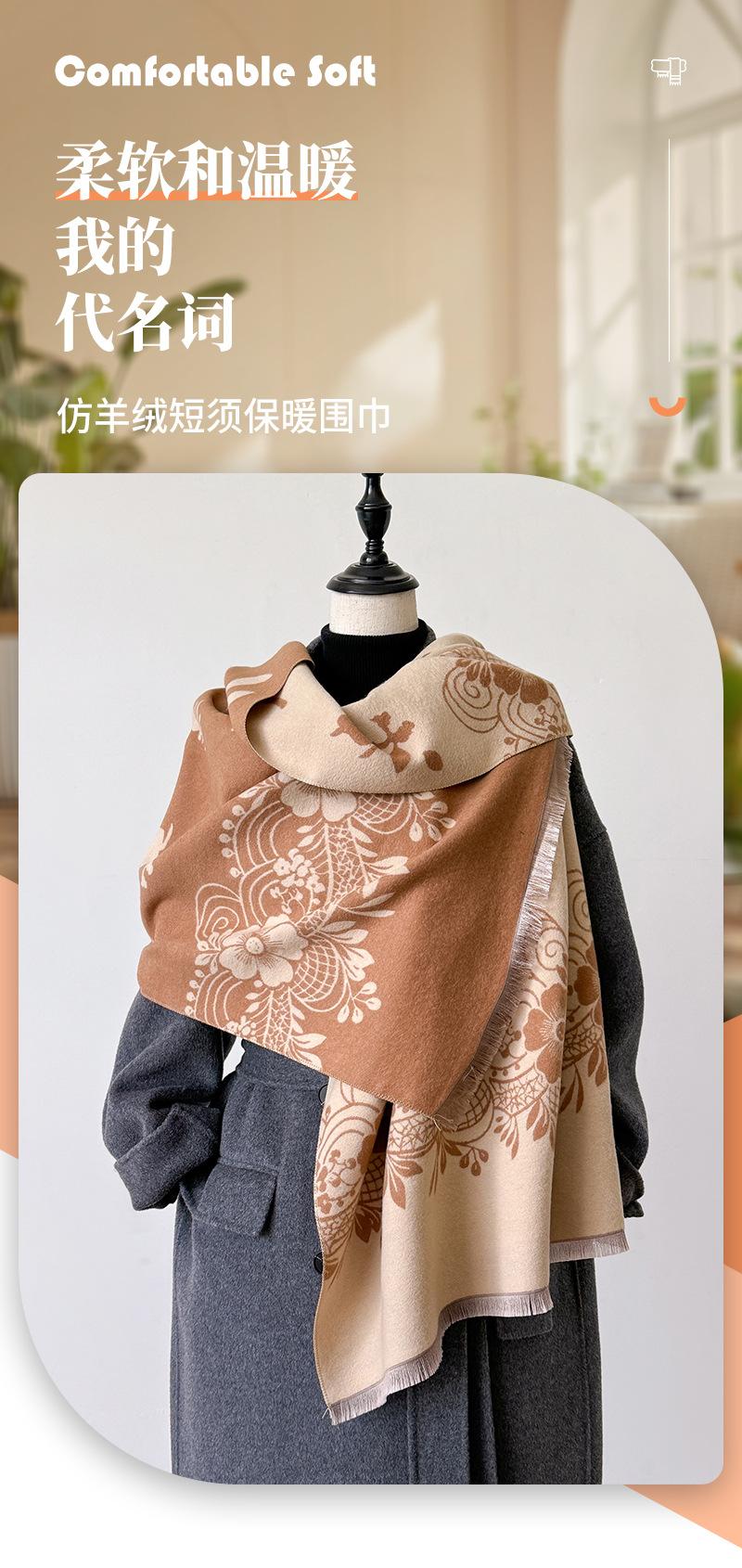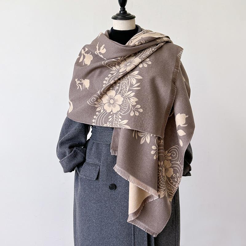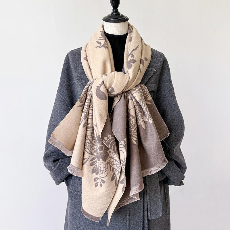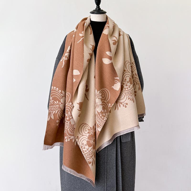 Bufanda cálida de doble cara con estampado texturizado de cachemira y flores de vid para hombre y mujer, otoño e invierno de 2024