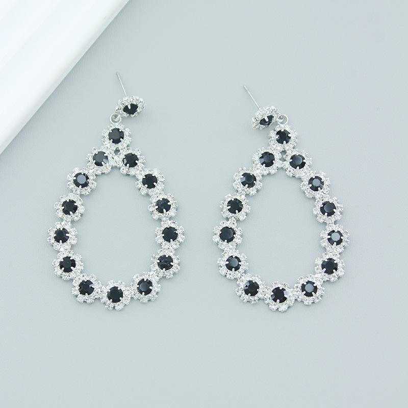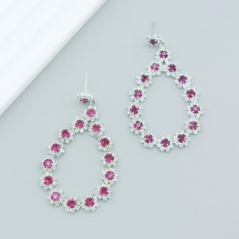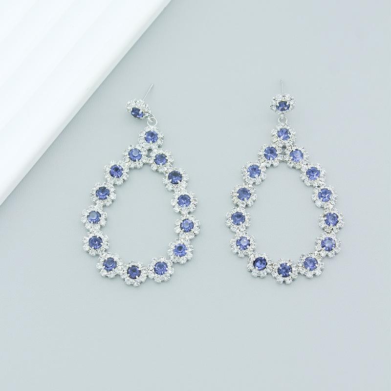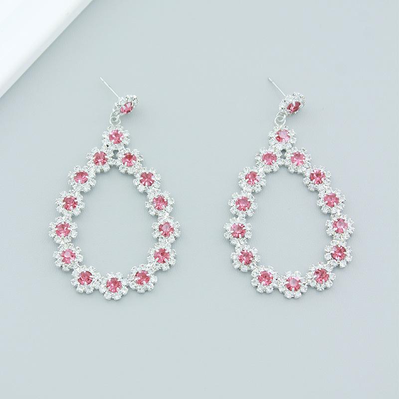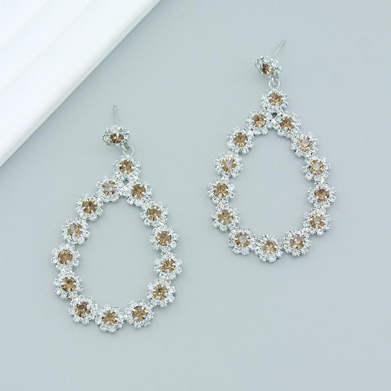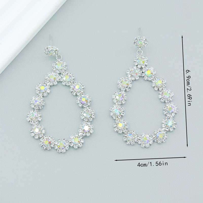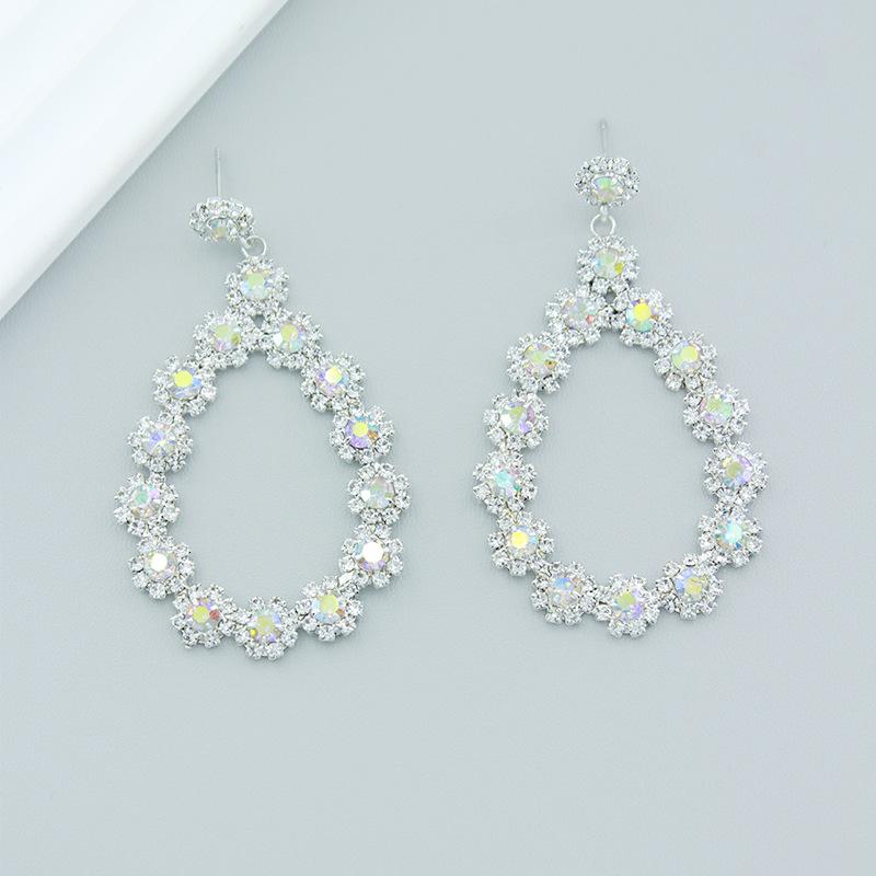 Pendientes elegantes de moda transfronteriza europea y americana con forma de gota de diamantes de imitación de colores, pendientes de diamantes completos exquisitos para mujer