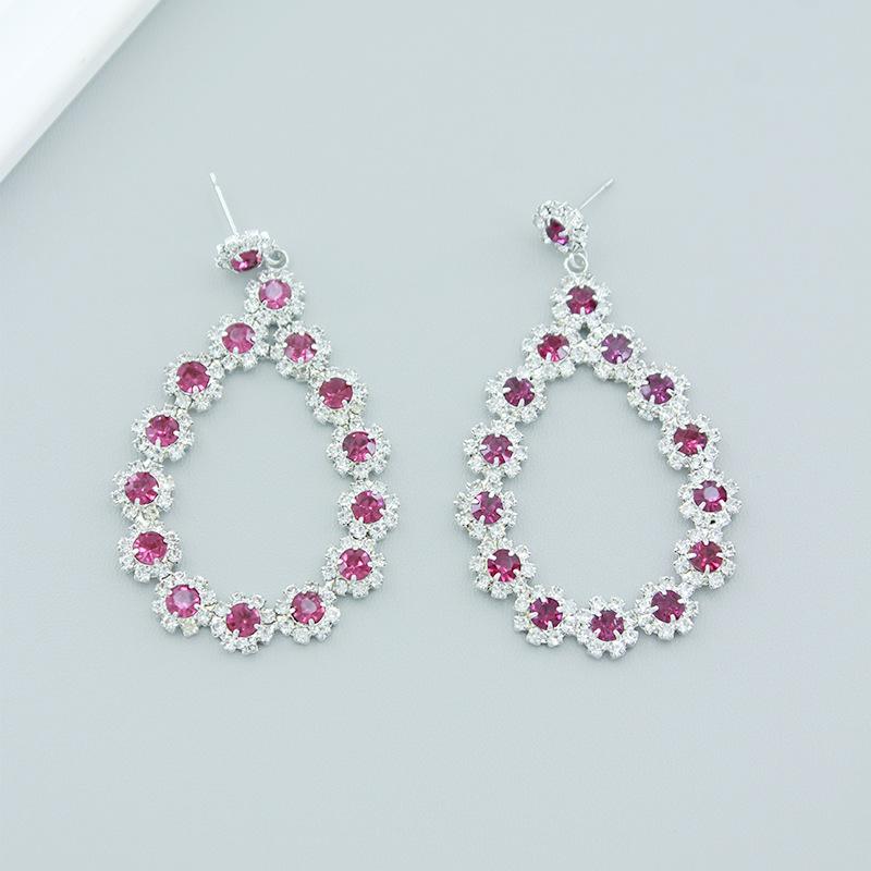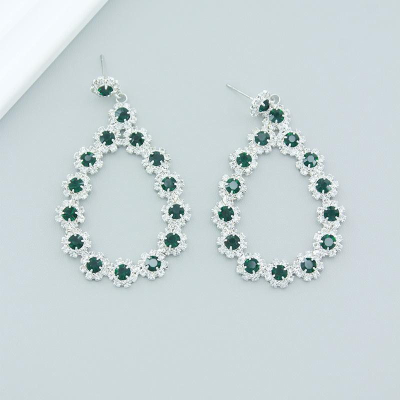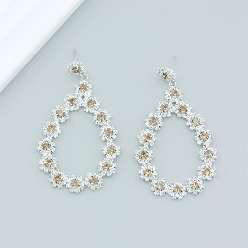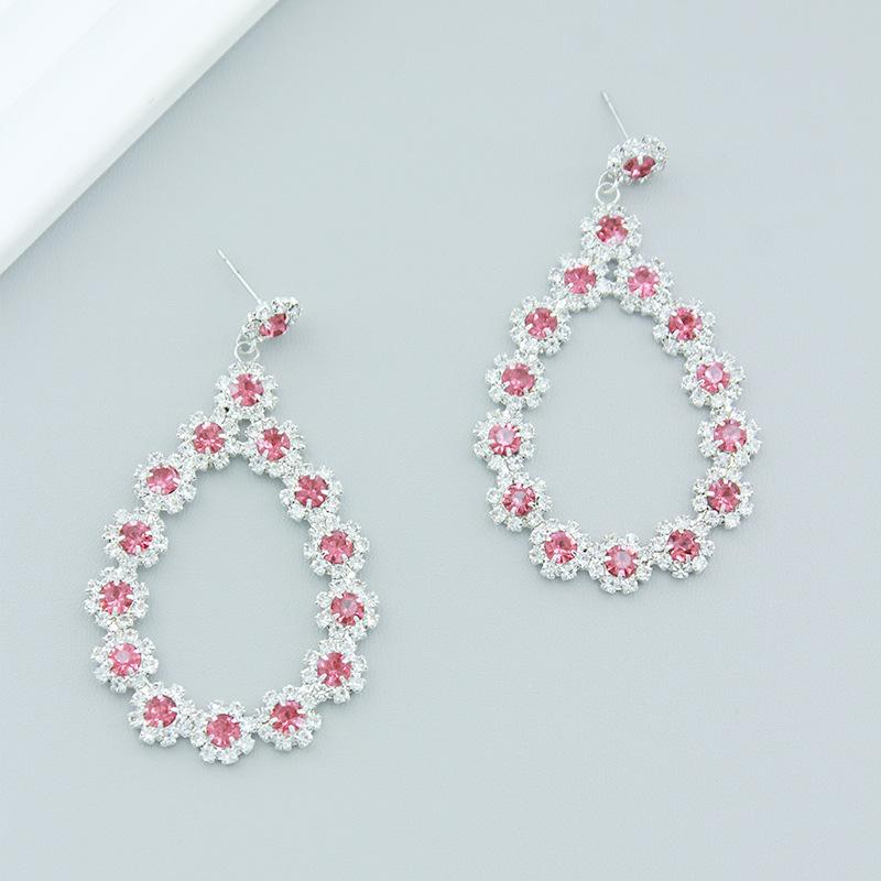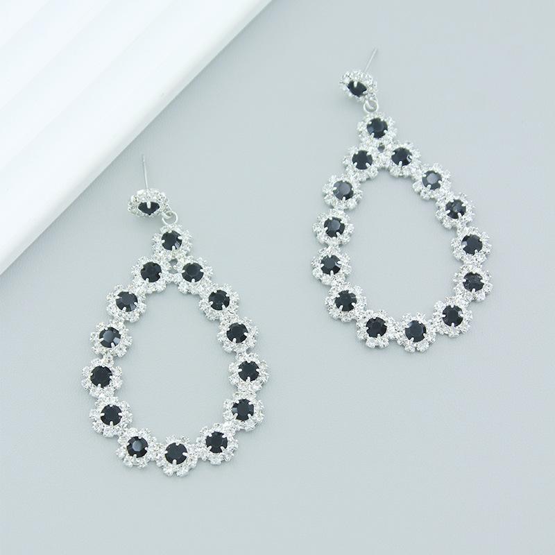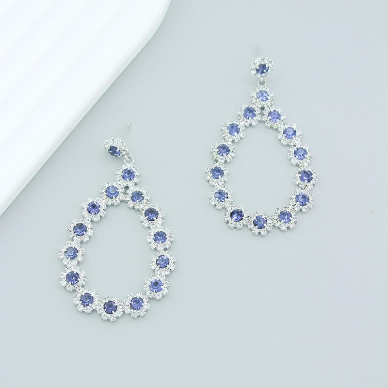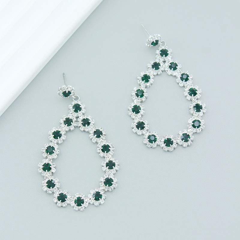 Pendientes elegantes de moda transfronteriza europea y americana con forma de gota de diamantes de imitación de colores, pendientes de diamantes completos exquisitos para mujer