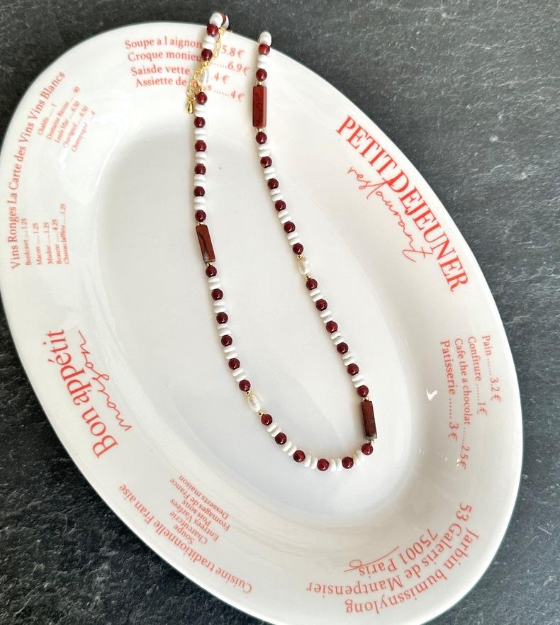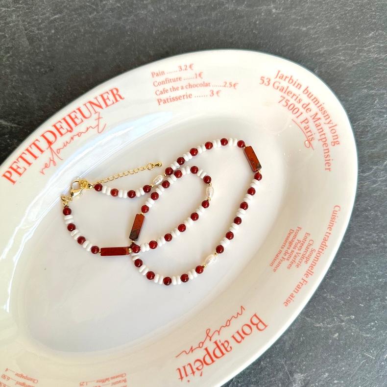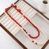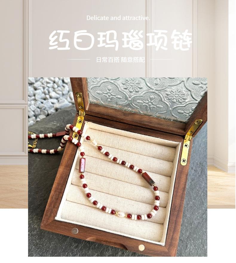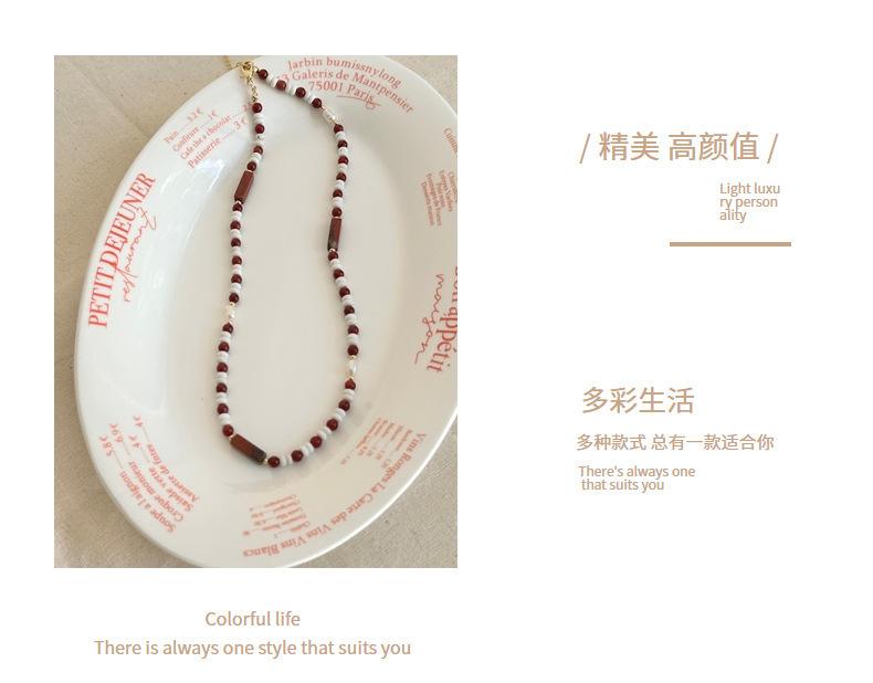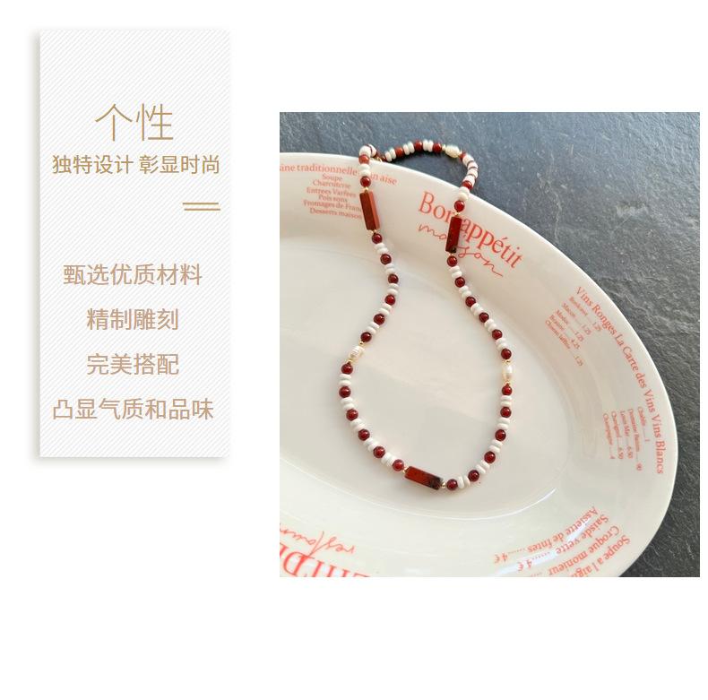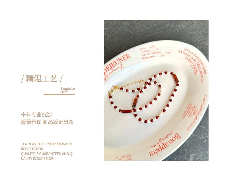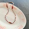 Collar de cuentas redondas pequeñas de ágata roja, nicho de perlas naturales, collar de cuentas de alta calidad, cadena de piedra cuadrada de estilo étnico chino.