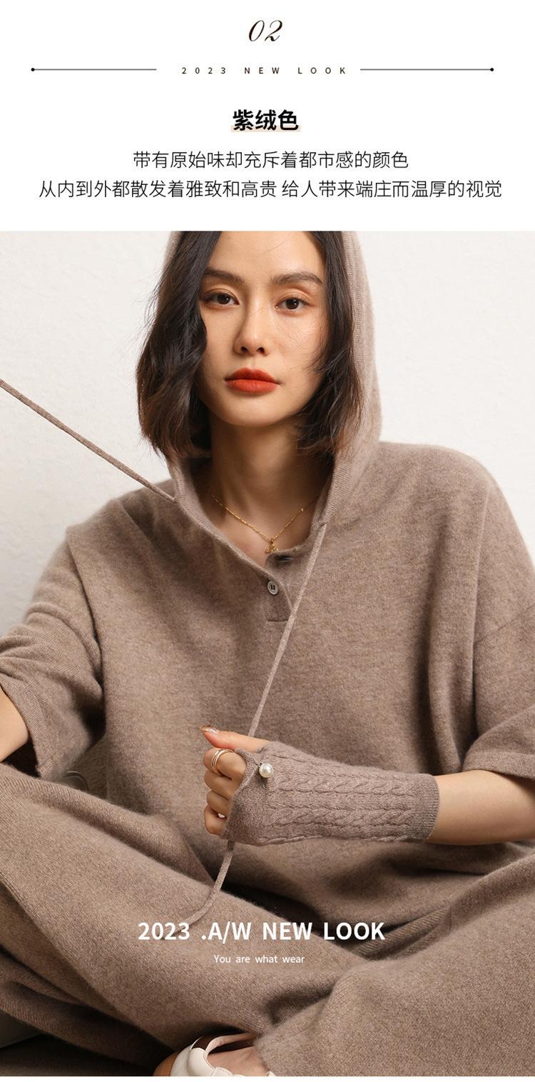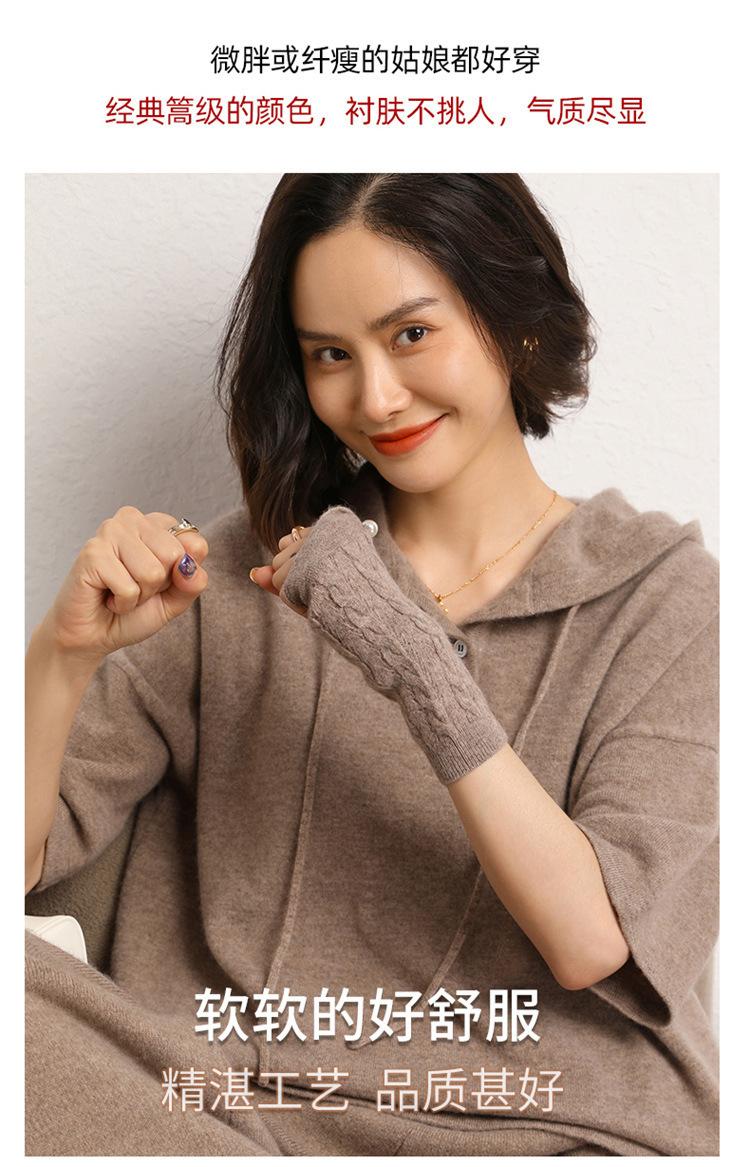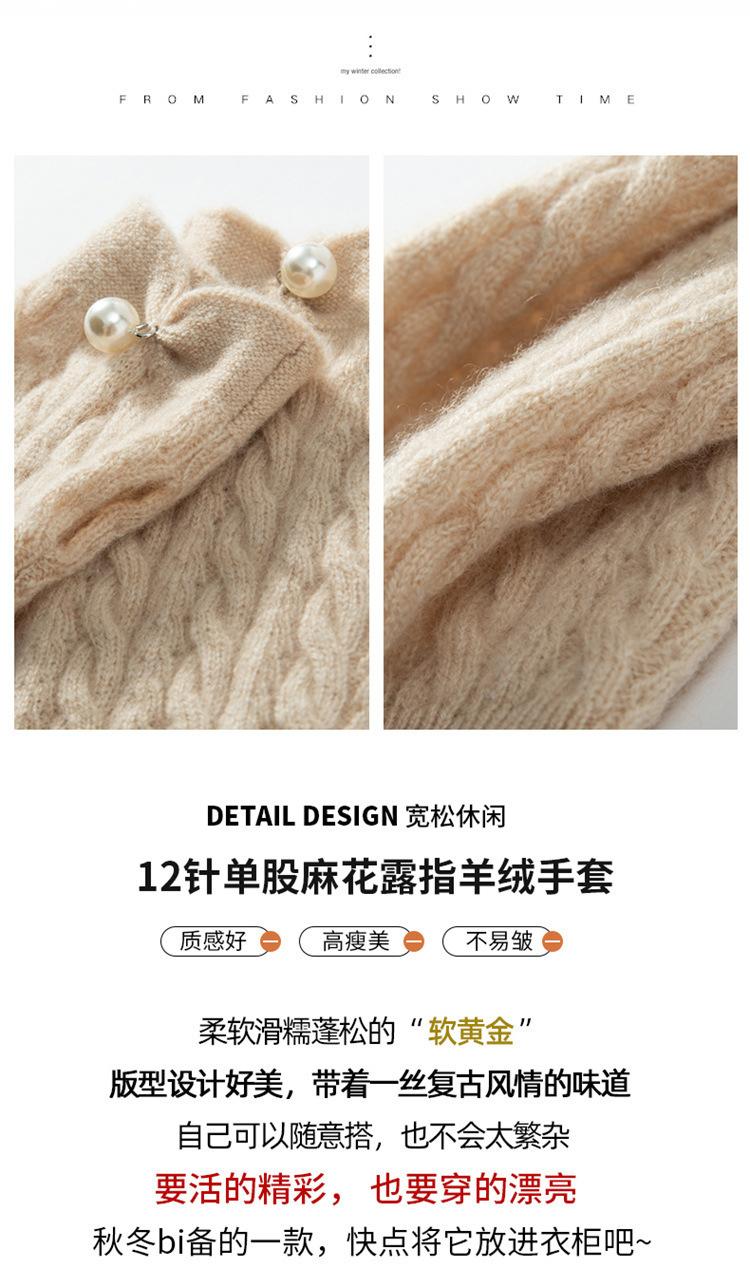 Cachemira Otoño e Invierno Nuevo Guantes de Punto sin Dedos Cálidos y Engrosados para Mujer Lana Trenzada Retro Aguja Gruesa Puntero Calado