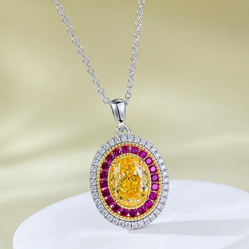Collar nuevo europeo y americano de joyería Mujing, plata 925, pequeño libro rojo, collar de clavícula con diseño de nicho de 7*9 diamantes amarillos del mismo estilo para mujer