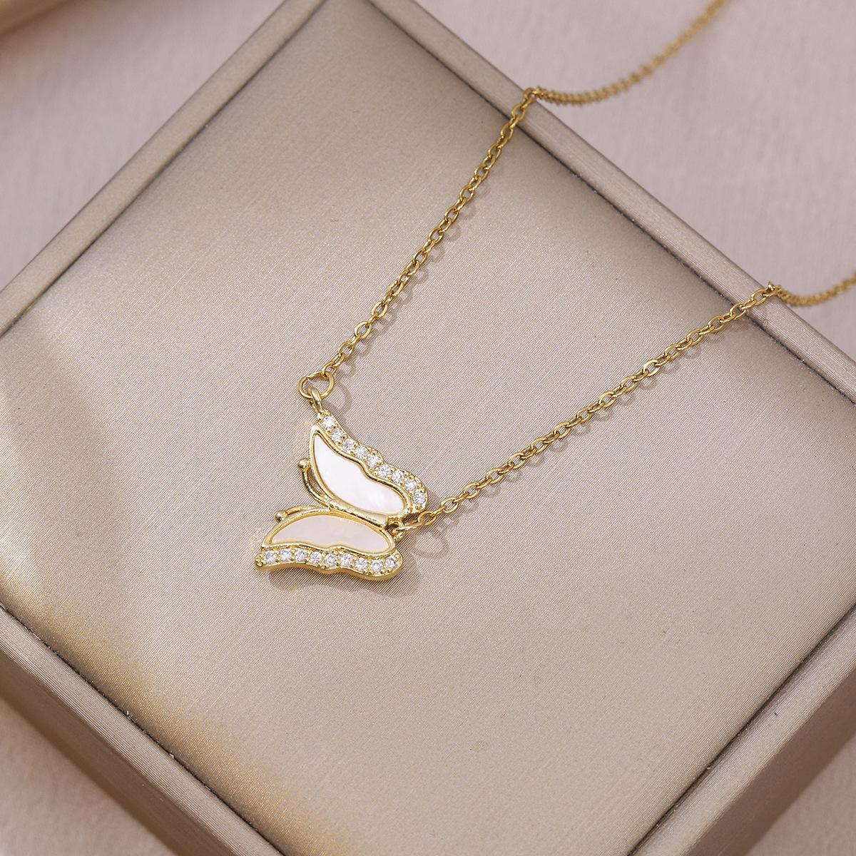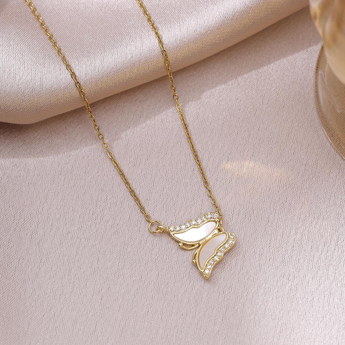 Collar con diseño de mariposa, circonitas y diamantes, estilo japonés-coreano, nuevo collar sencillo con diseño de nicho.