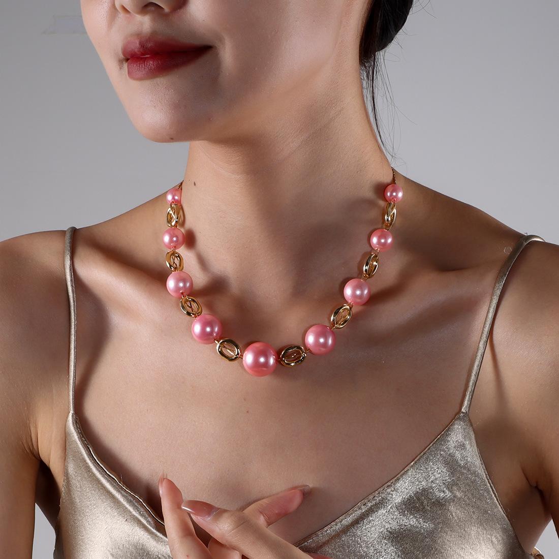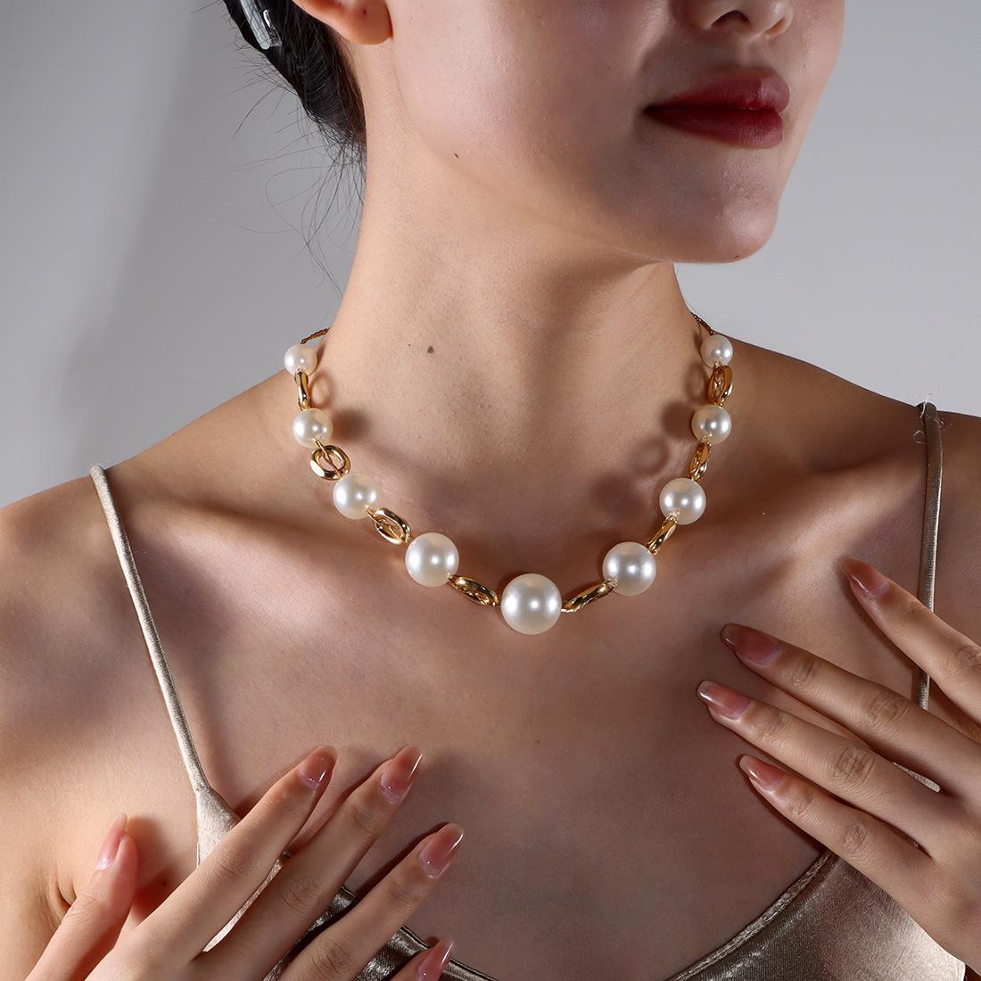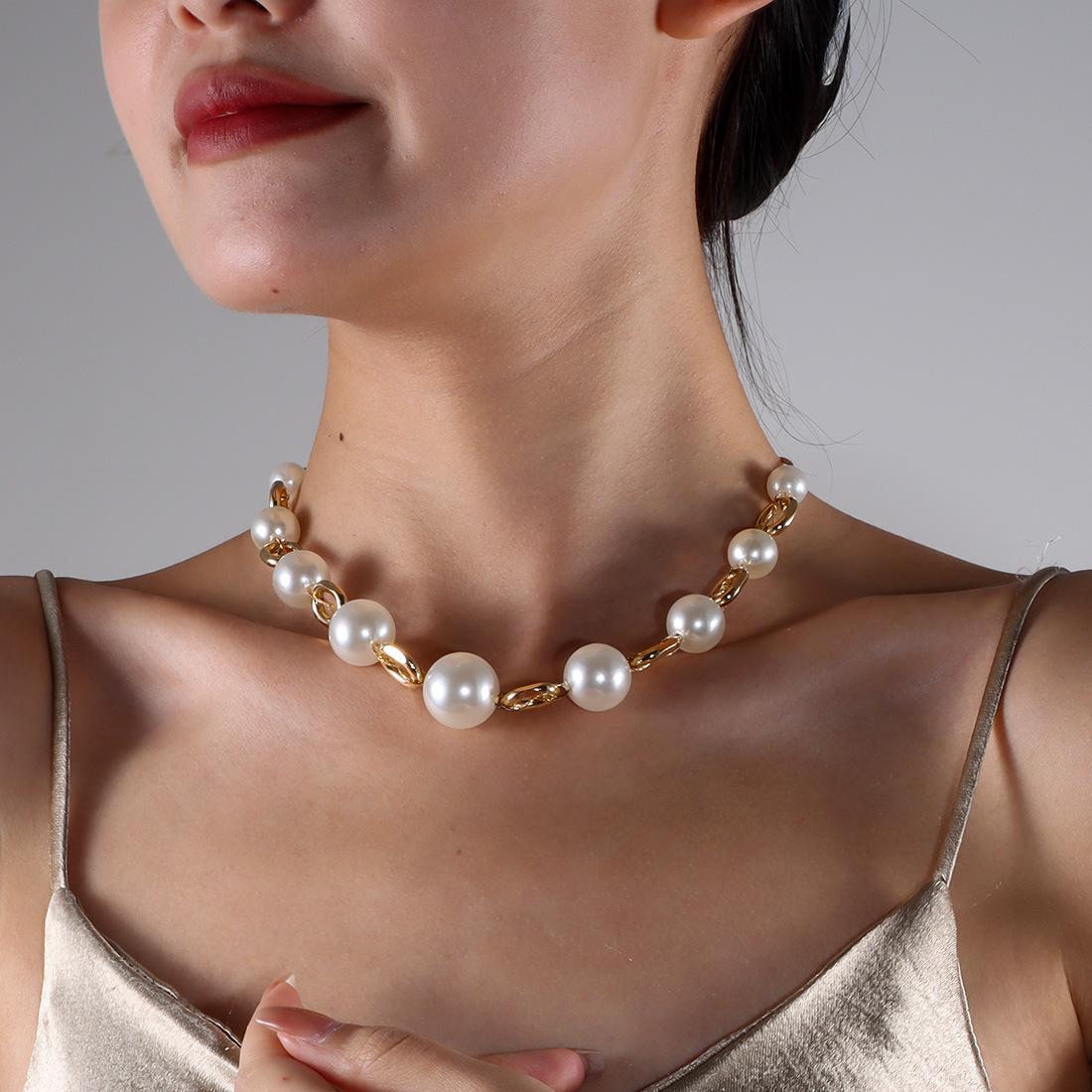 Collar de perlas elegante y versátil de estilo europeo y americano con cadena de clavícula retro sencilla NK25840