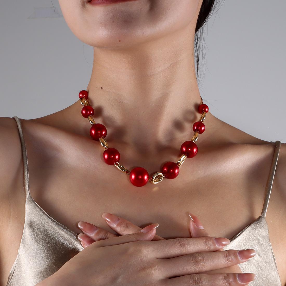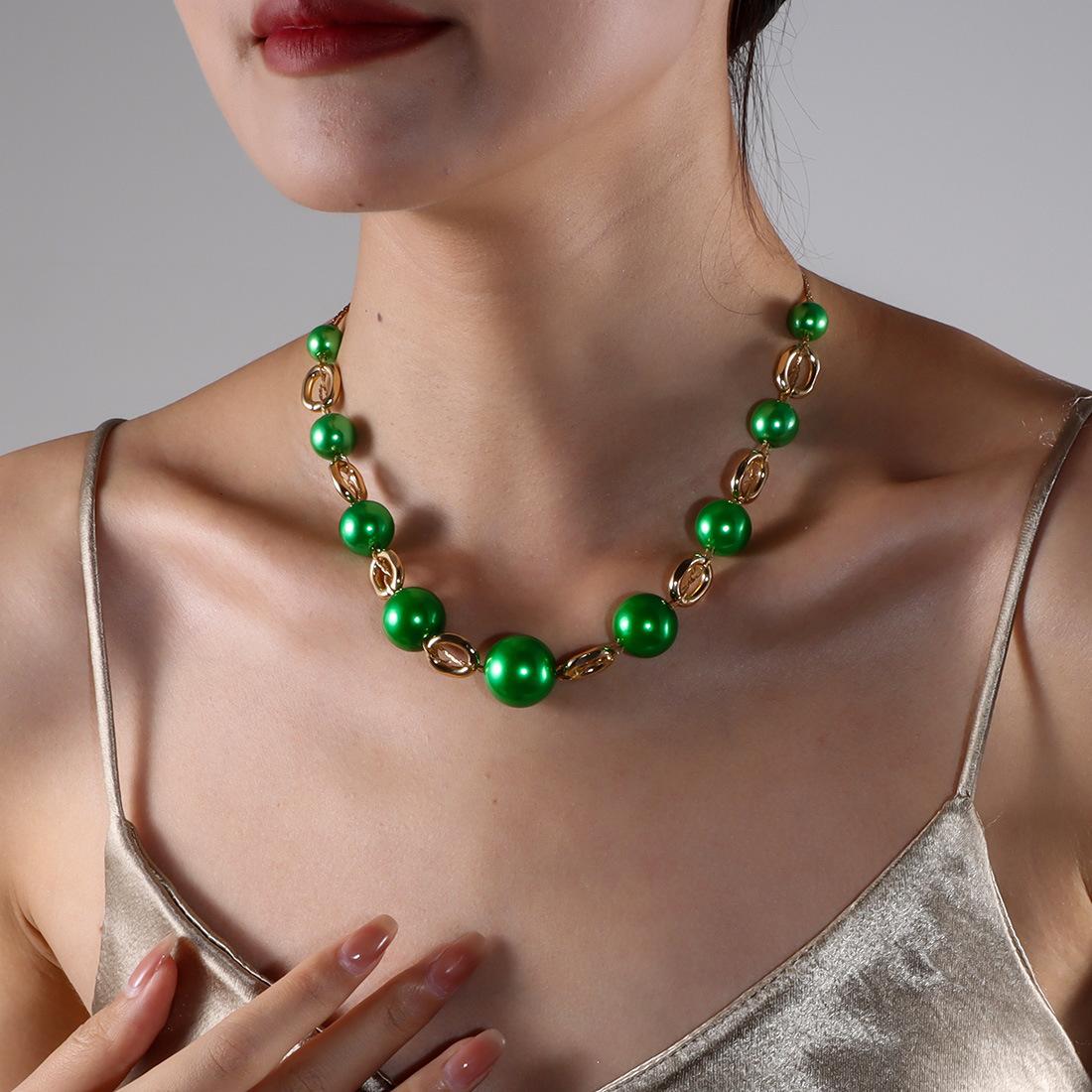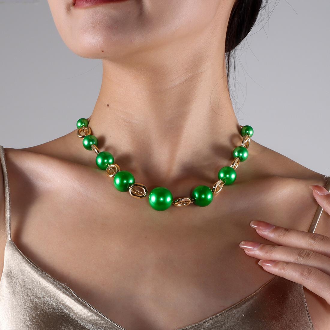 Collar de perlas elegante y versátil de estilo europeo y americano con cadena de clavícula retro sencilla NK25840