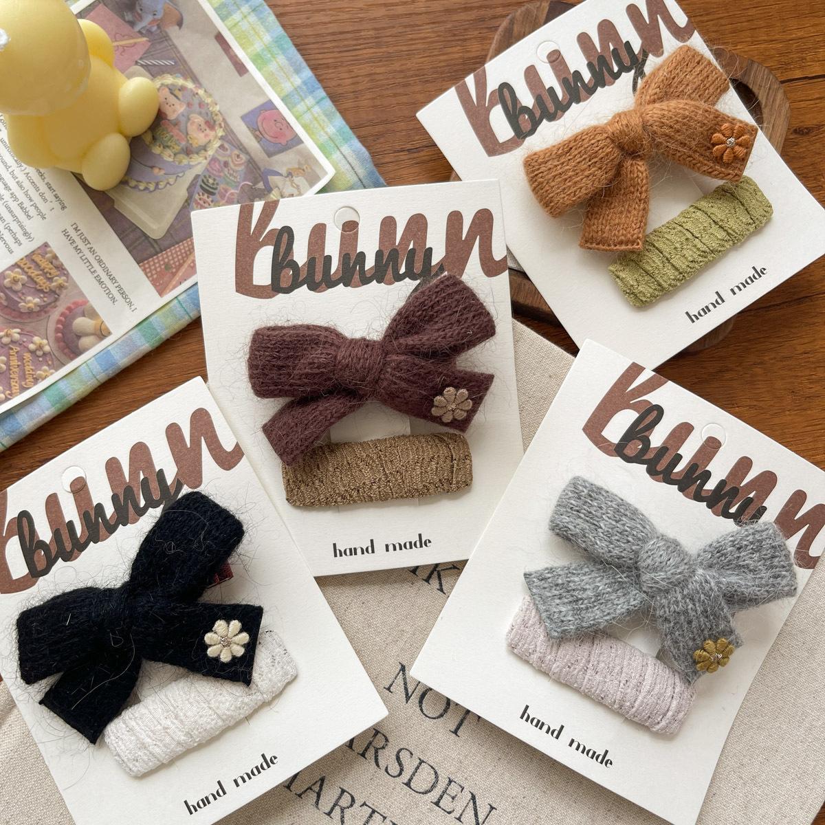 Otoño Nuevo Dulce Crochet Lazo de Lana Horquilla para el Cabello de Niños Linda Flor Bordada Accesorios para el Cabello de Niña Pequeña Horquilla