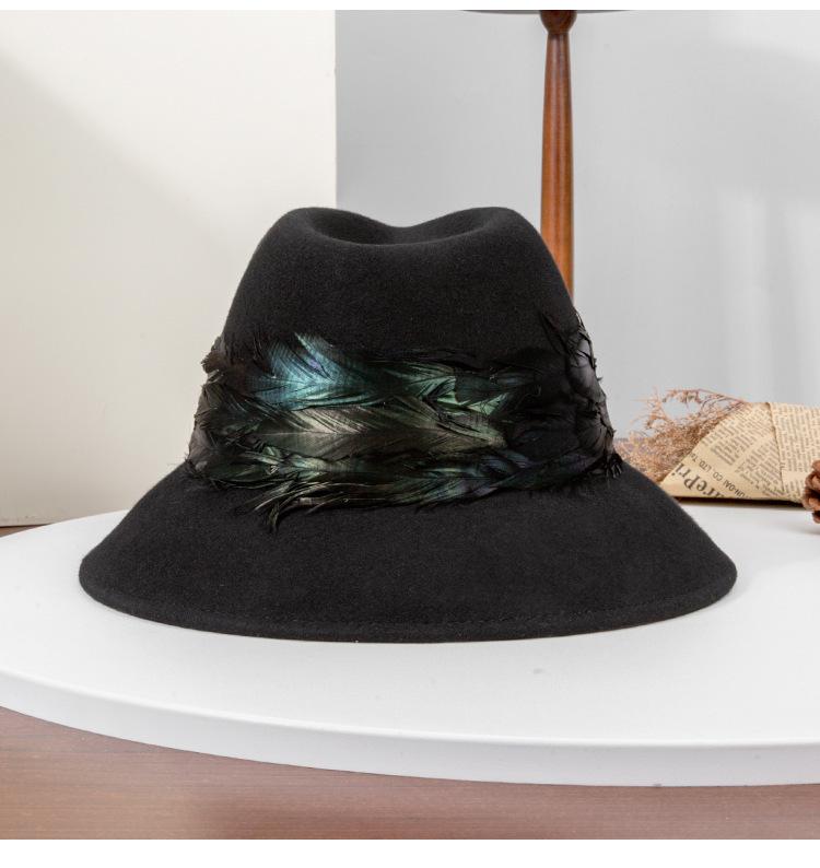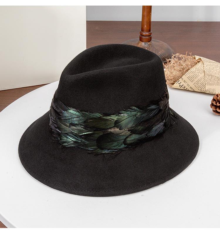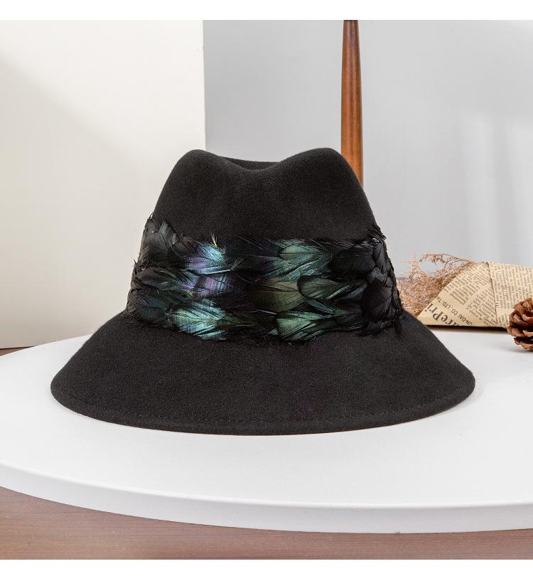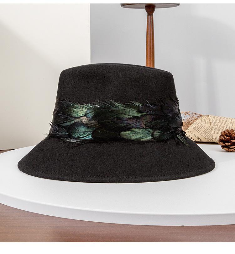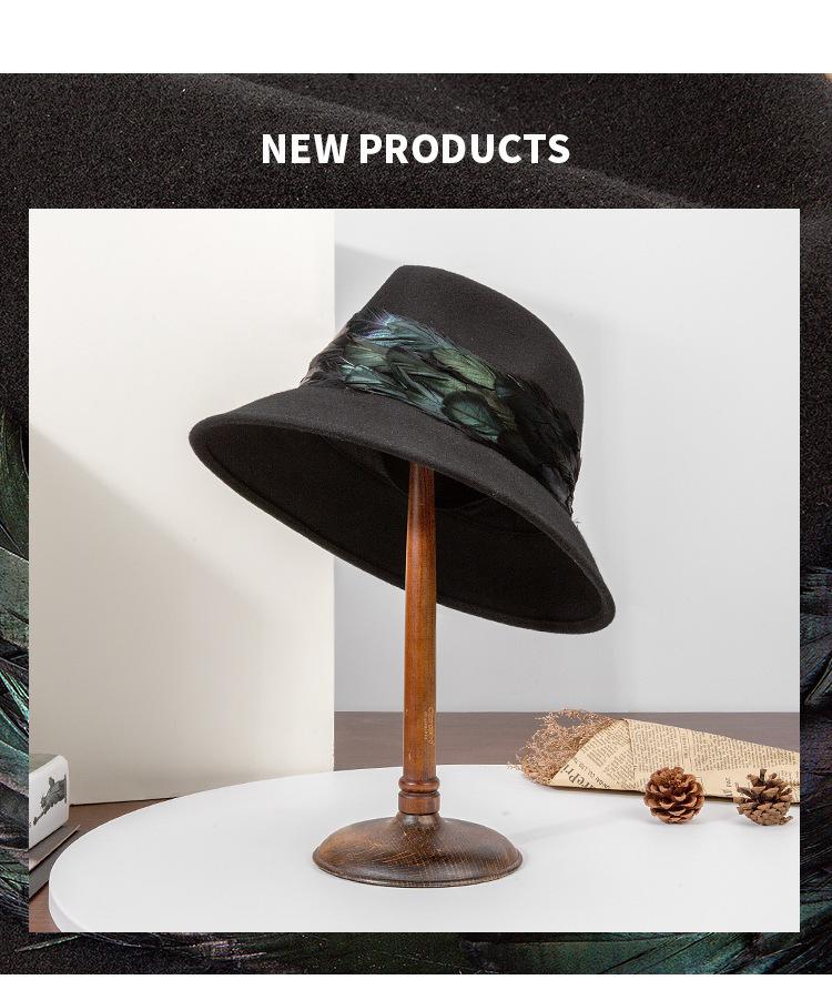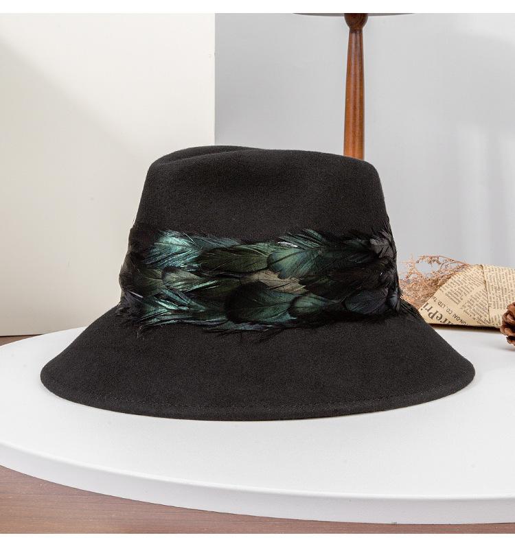2025 Rongmei Otoño e Invierno Nuevo Sombrero de Pescador Decorado con Plumas Sombrero Elegante Retro de Fieltro de Lana Sombrero Elegante para Mujer